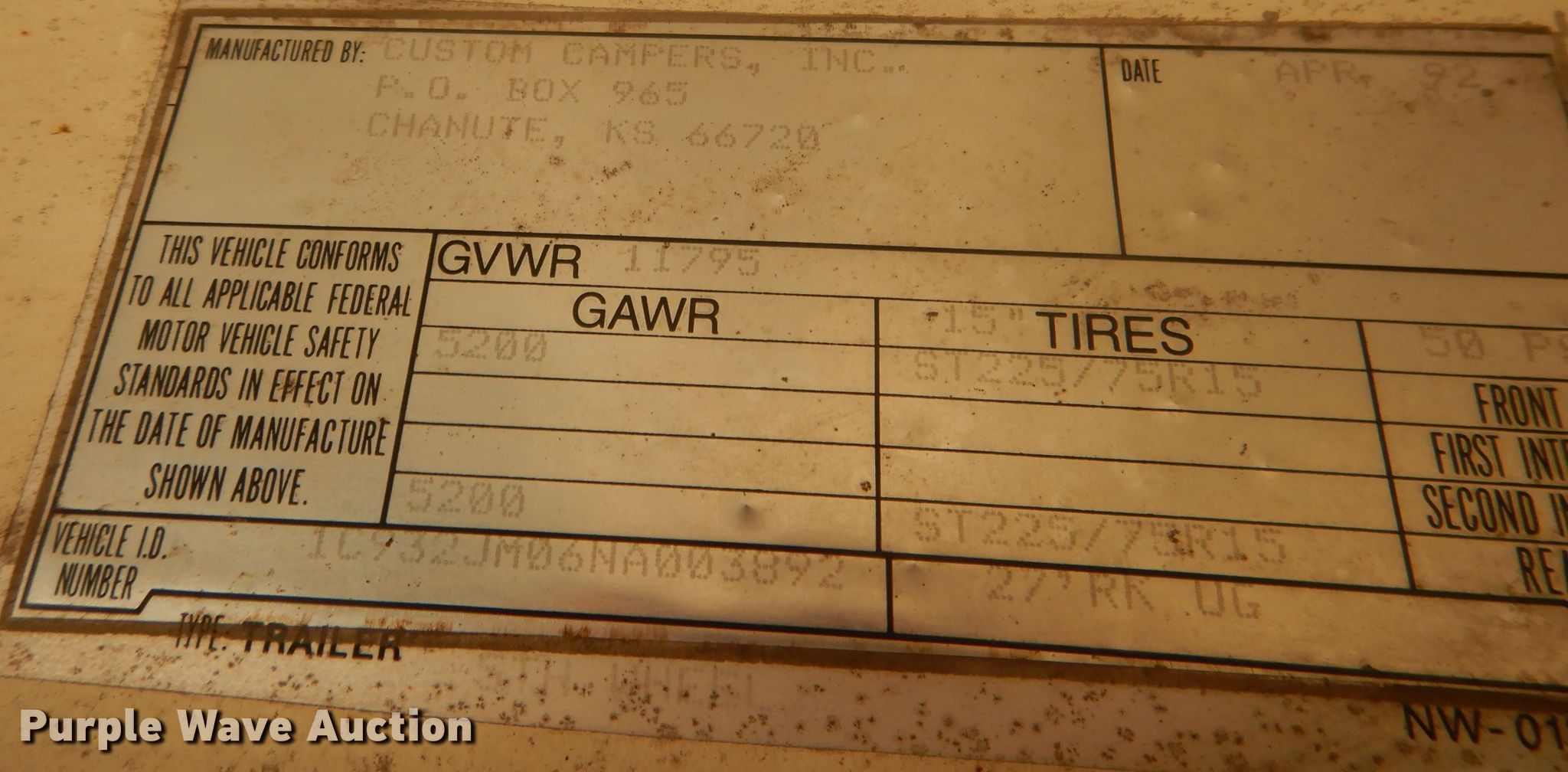 Purple Wave is selling a used RV in Nebraska. This item is a 1992 Custom Campers Hitchhiker II camper with the following: Camper length: 27'