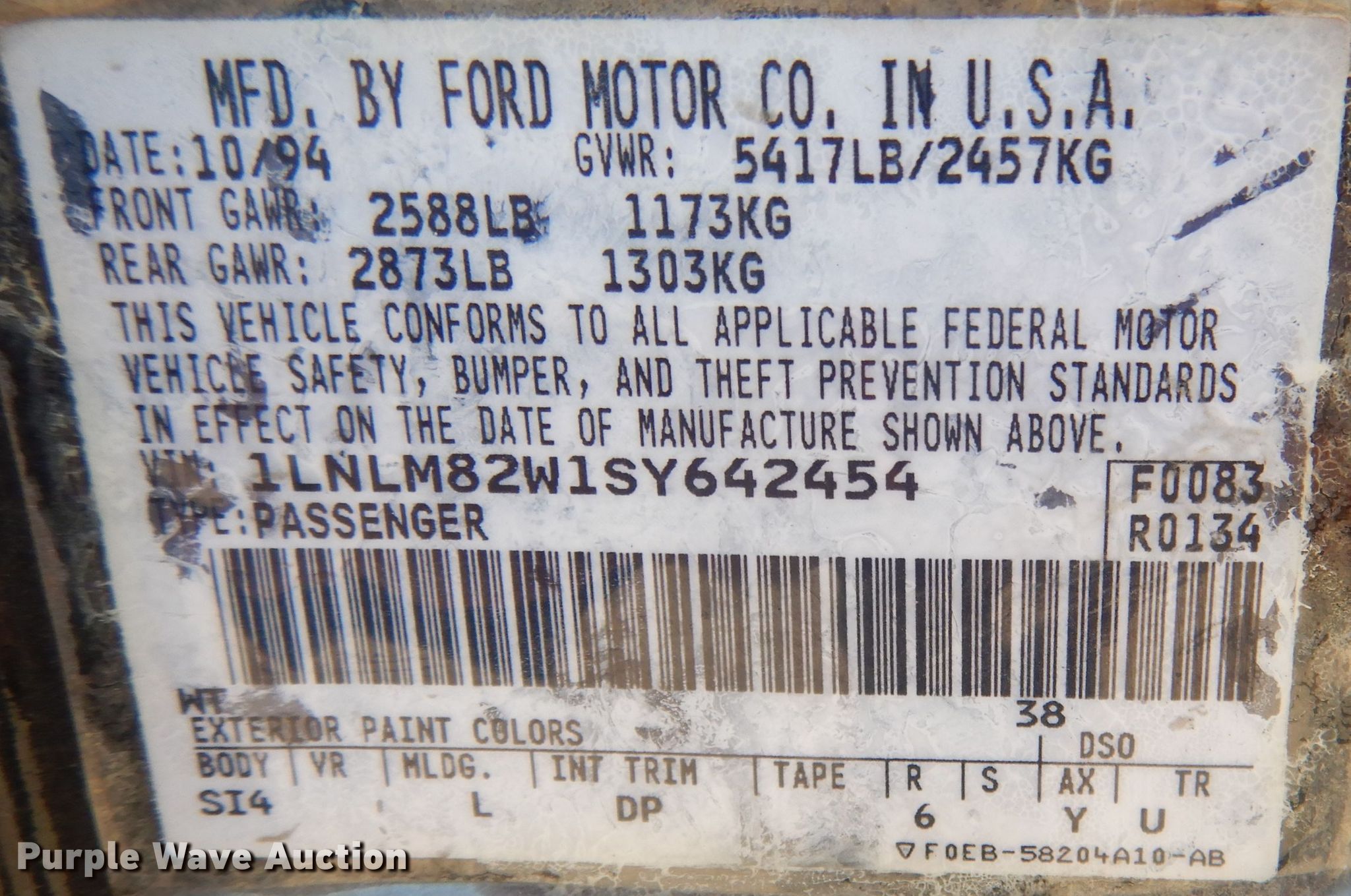 - VIN: 1LNLM82W1SY642454