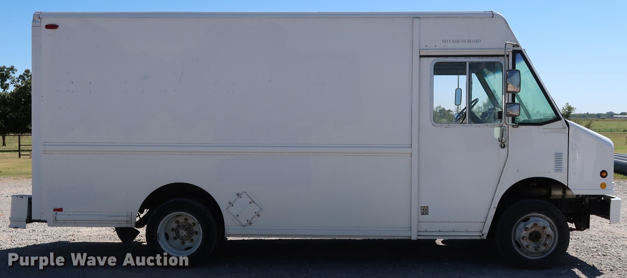1997 Freightliner MT45 delivery truck. Miles: 205,686 on odometer, VIN: 4UZA4FF44VC790846. Engine Cummins ISB, Displacement: 5.9L, Cylinders: 6, Fuel type: Diesel. Transmission Automatic. Chassis Axles: Single, Suspension: Spring, Brakes: Air, GVWR: 16,000 lbs. Interior Heat, Backup camera. Operational Box bed Utilimaster, 14' L x 90" W x 72" H, Floor: Steel. Tires Size: 225/70R19.5. Oklahoma title. Title distribution may be delayed up to 30 days from verification of funds. L&R Auto Brokers, LLC. 14555 W Frisco Dr. Yukon, OK 73099