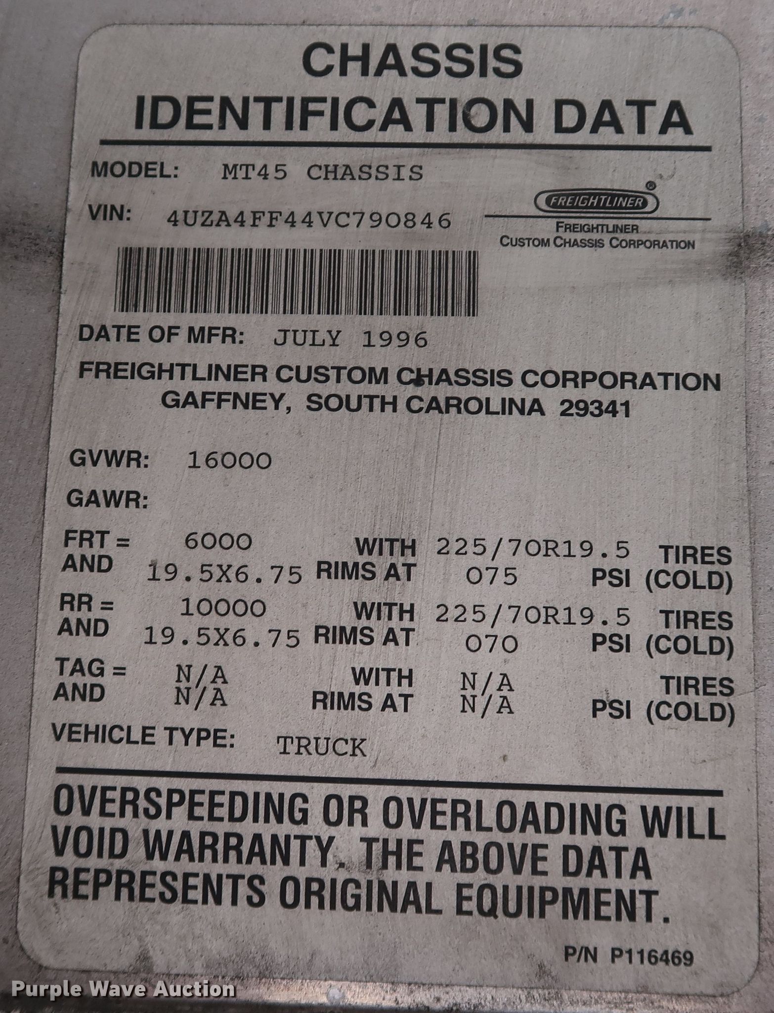 Take a look at this used 1997 Freightliner MT45 delivery truck being sold on October 20th, 2021 in the SOLD! October 20 Vehicles and Equipment Auction made by Freightliner. Take a look at all of the item information below or take a look at similar auctions for Trucks.