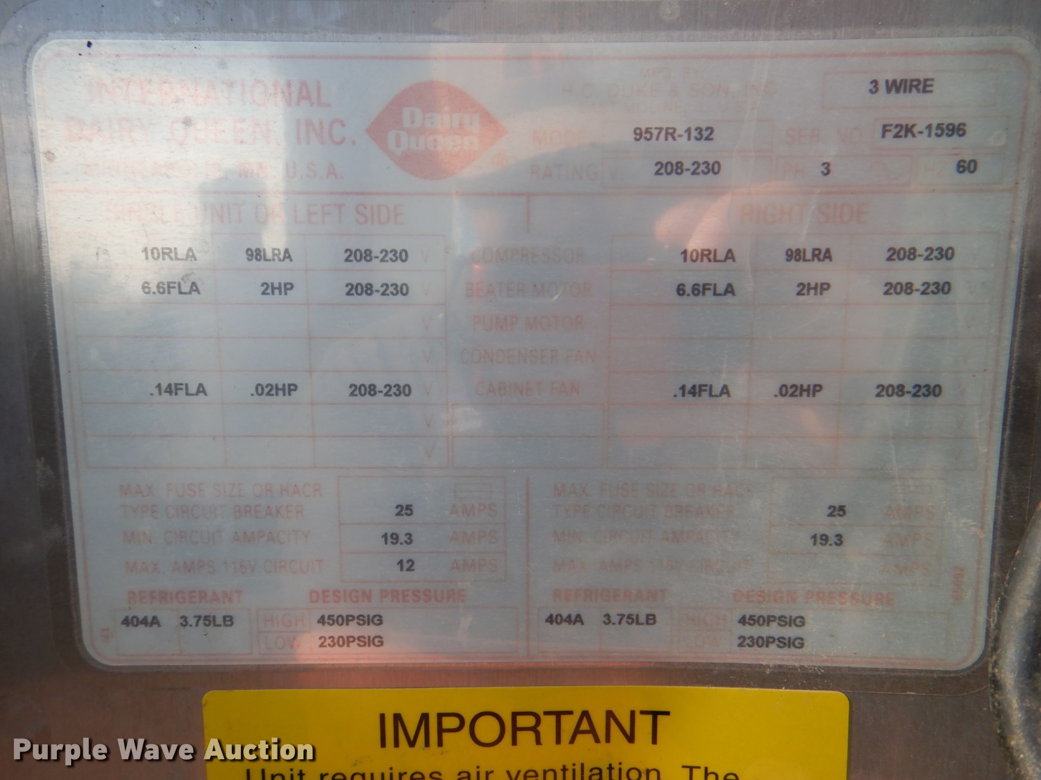 Purple Wave is selling a used Restaurant Equip. in Nebraska. This item is a (2) HC Duke and Sons 957R-132 ice cream machines with the following: Serial: F2K-1596