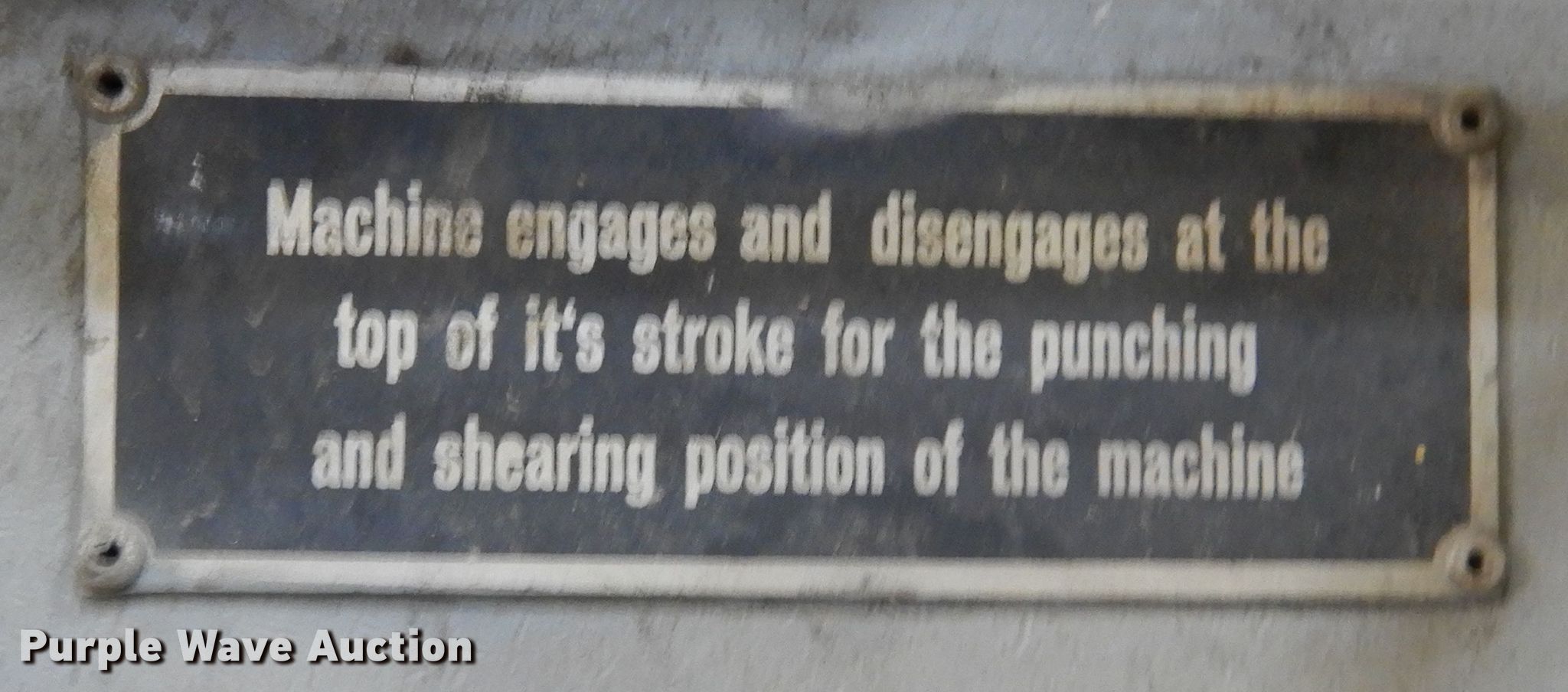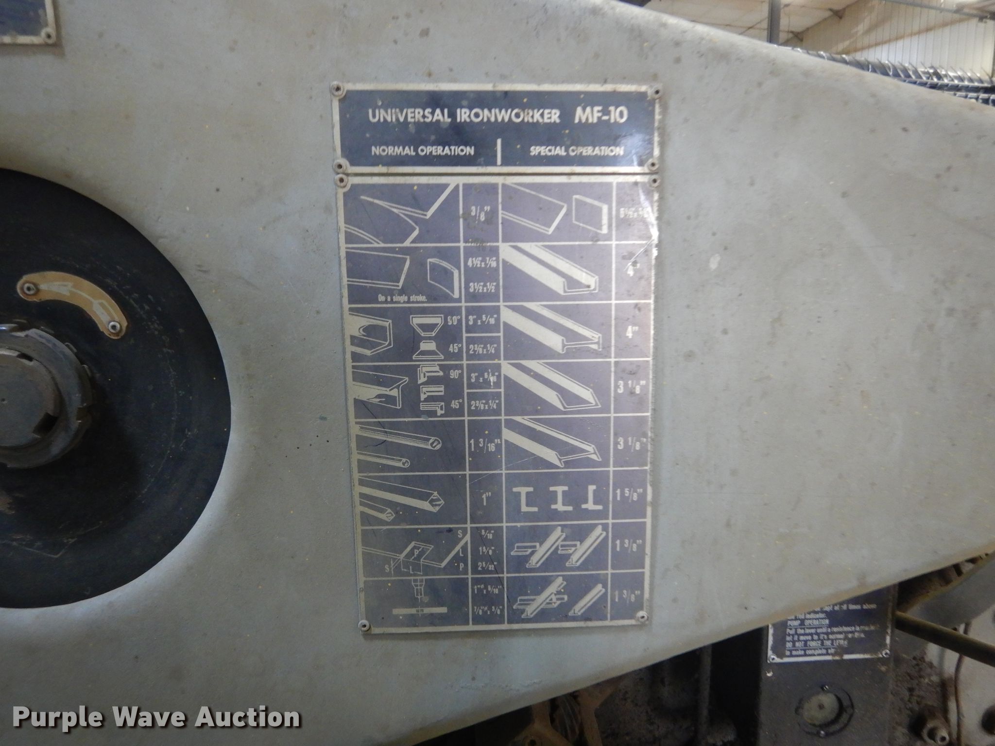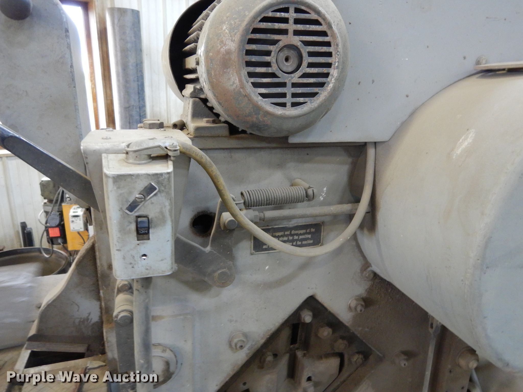 Purple Wave is selling a used Machine Shop Tools and Equip. in South Dakota. This item is a Gairu MR-10 iron worker with the following: 5' L x 24" W x 5' 9" H, 2 HP motor, 1,700 RPM, Three phase, 220 Volt, Punches, Shears