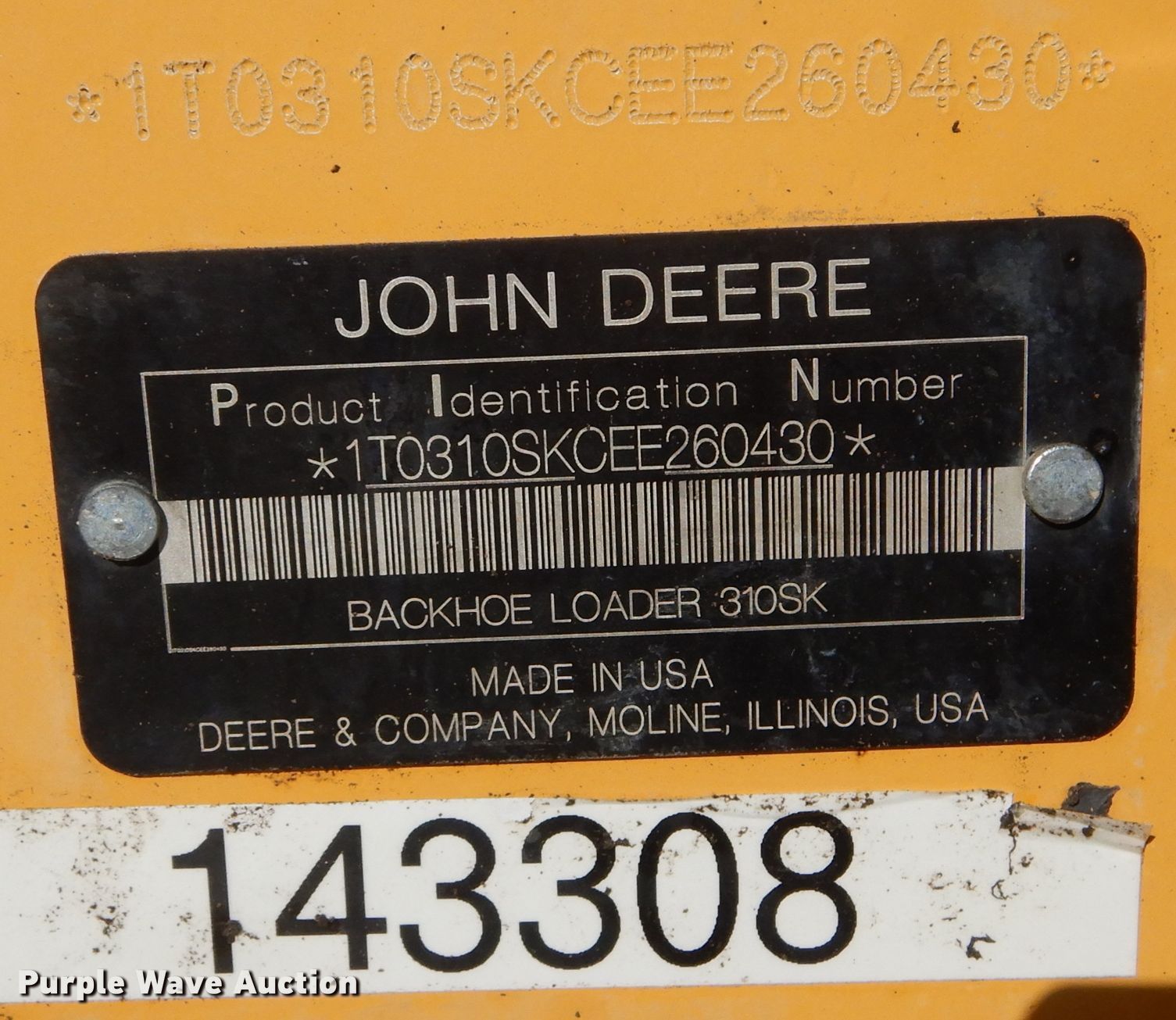 Purple Wave is selling a used Tractor Loader Backhoe in Kansas. This item is a 2014 John Deere 310SK backhoe with the following: 4,298 hours on meter, Serial: 1T0310SKCEE260430