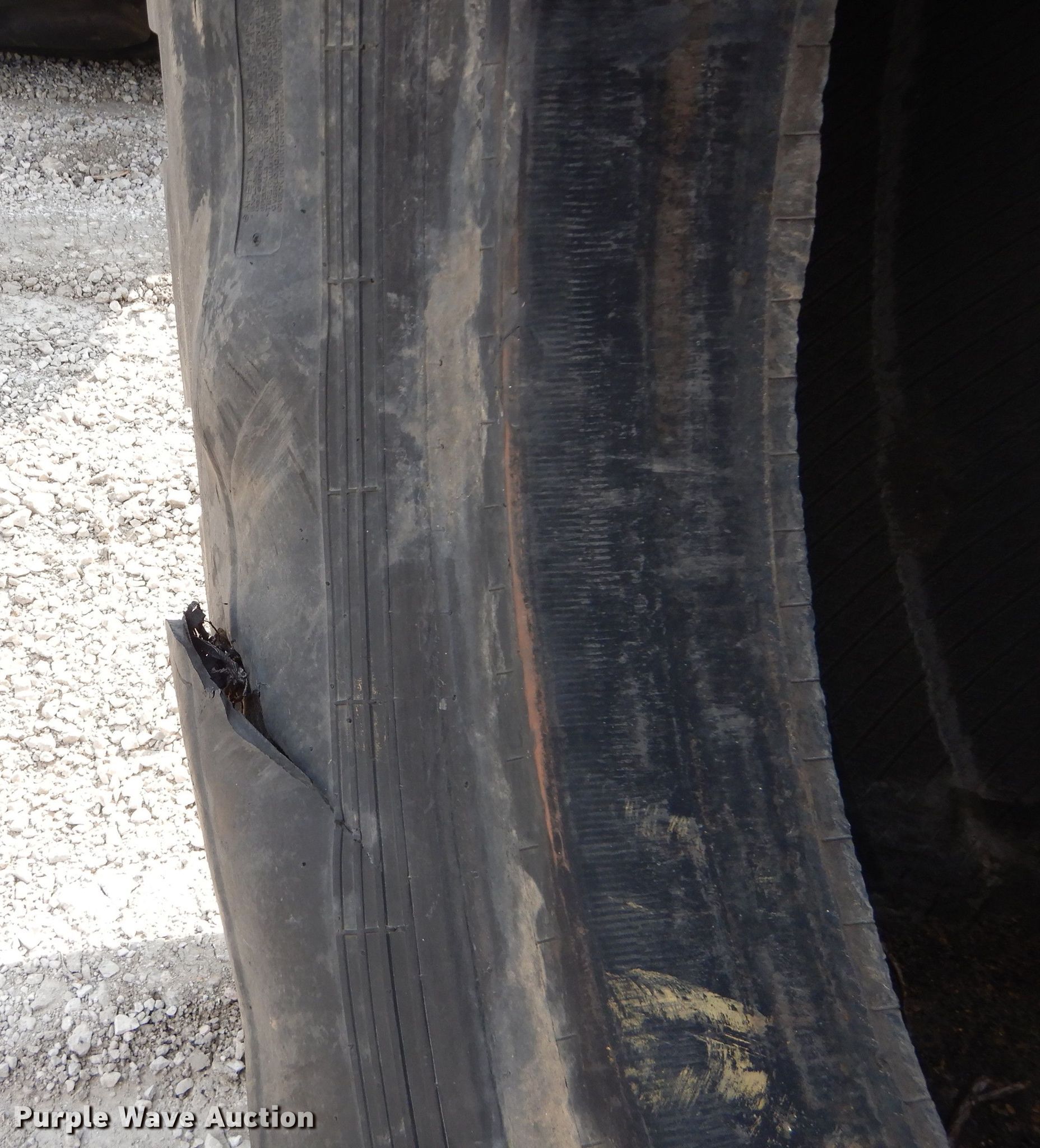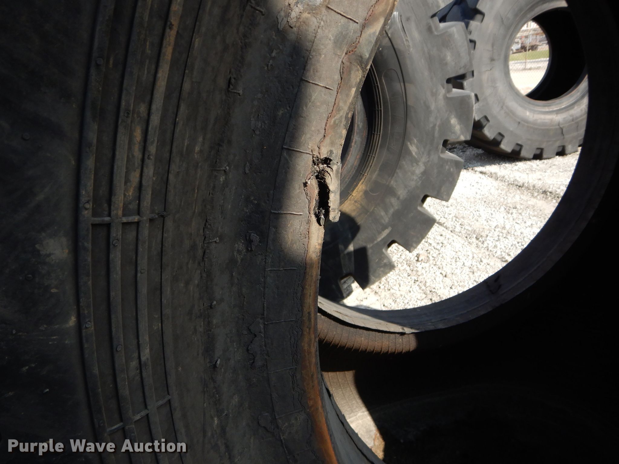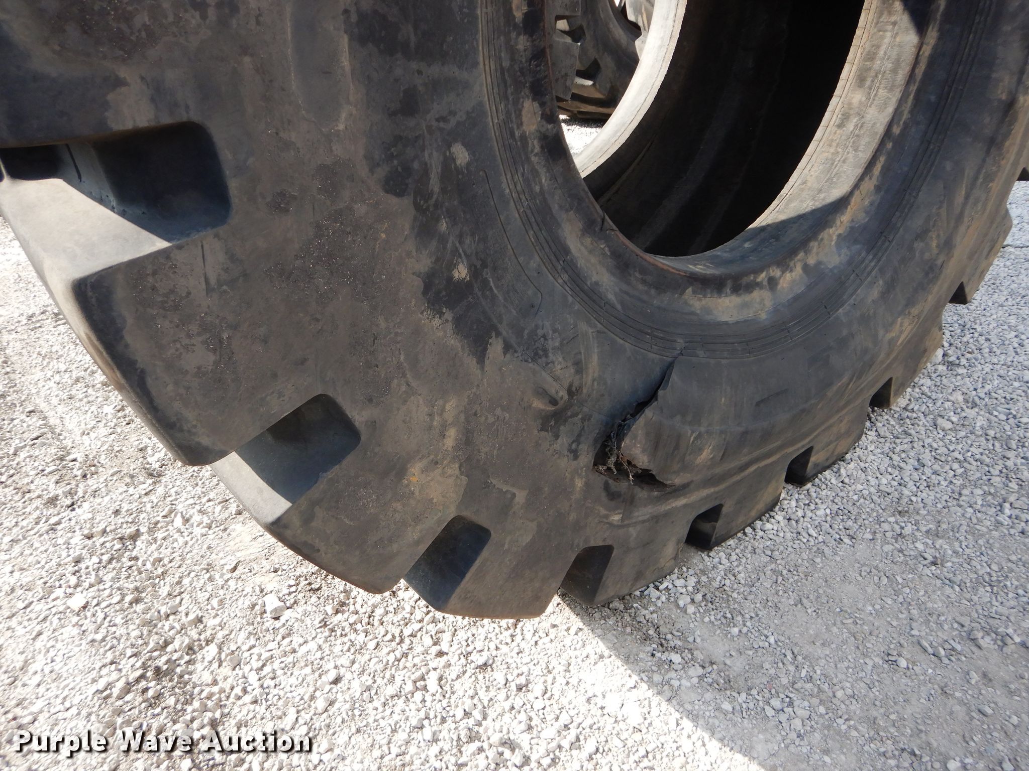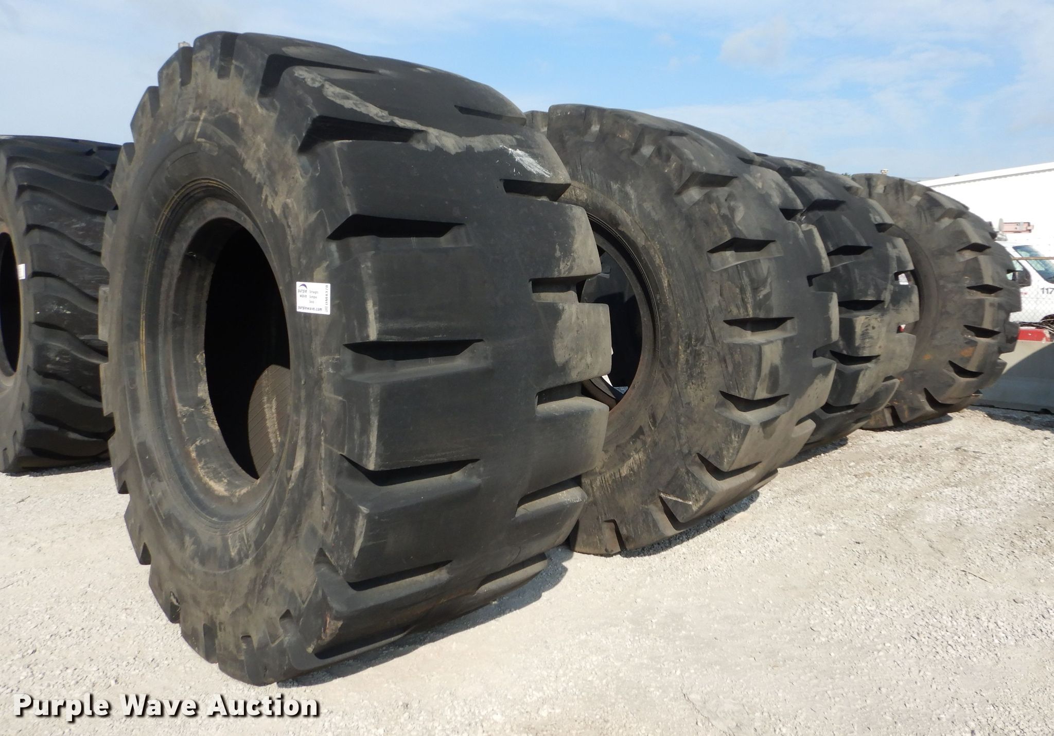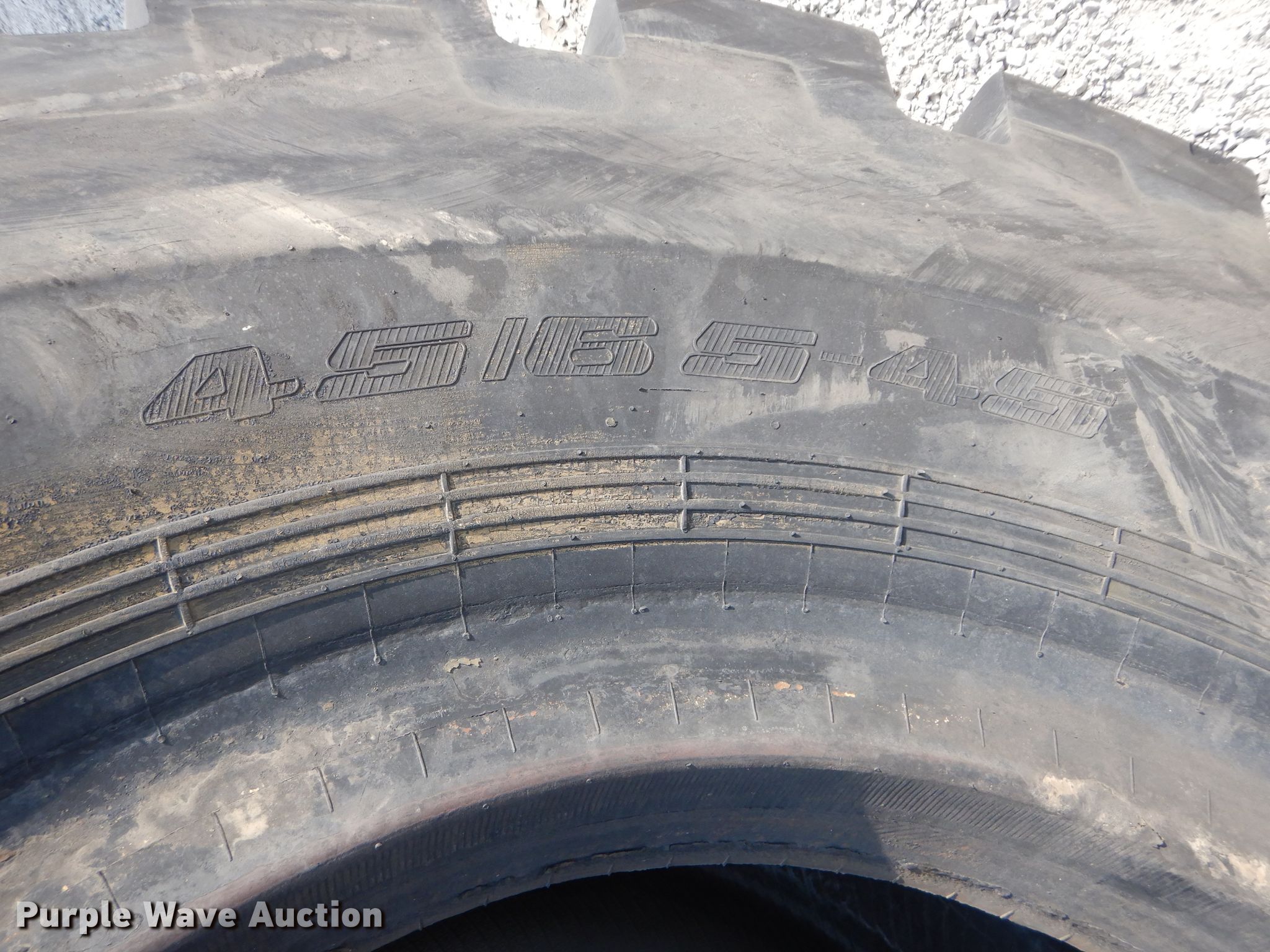 Purple Wave is selling a used Industrial Tires or Tracks in Kansas. This item is a (4) Radar 45/65-45 dozer tires with the following: L5 tread pattern, 58 PR Nylon, 36.00/45 wheel size, Cuts in sidewalls, Unknown operating condition