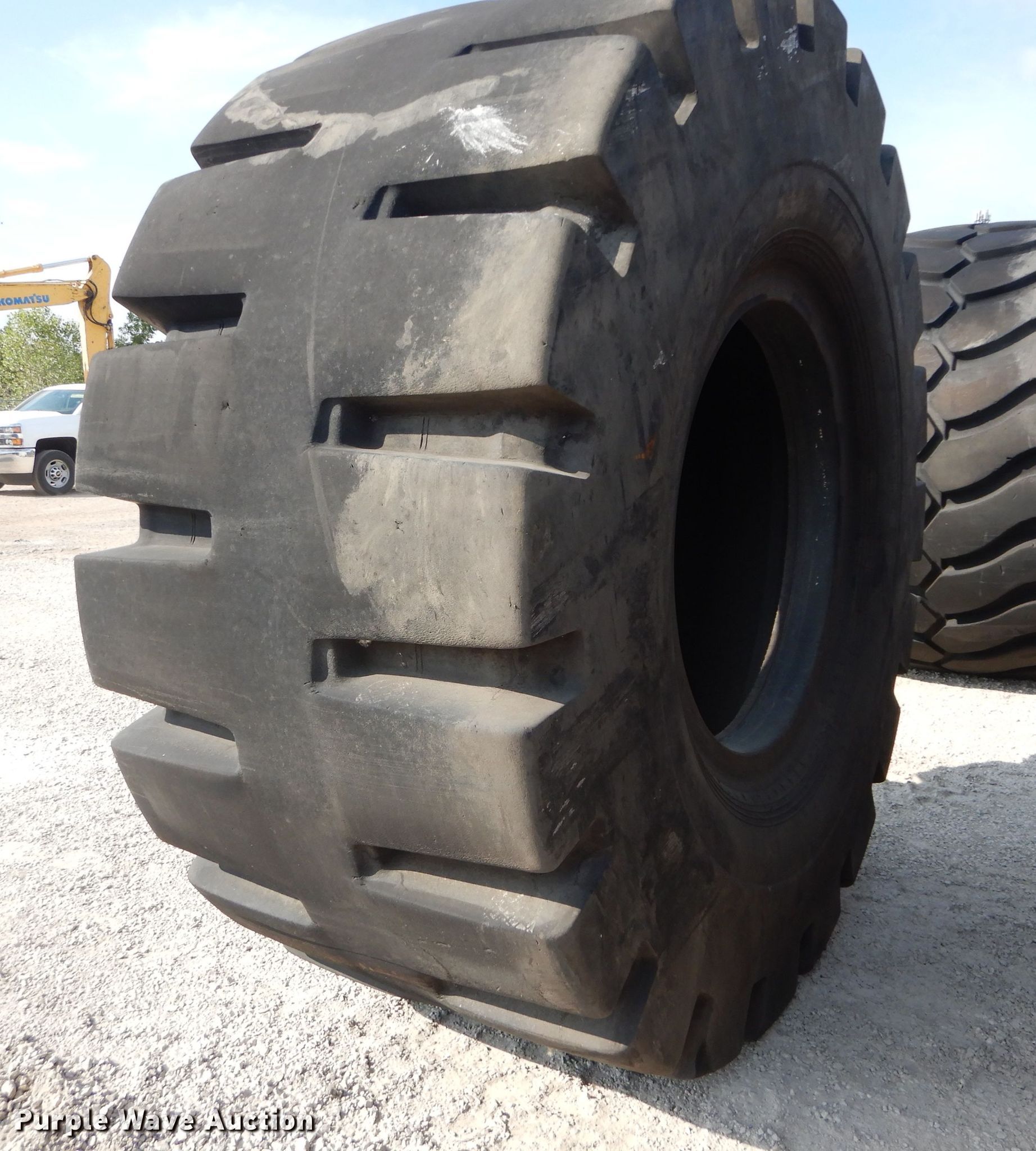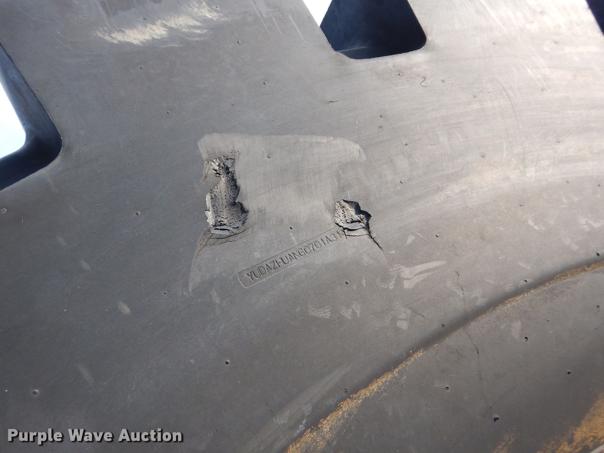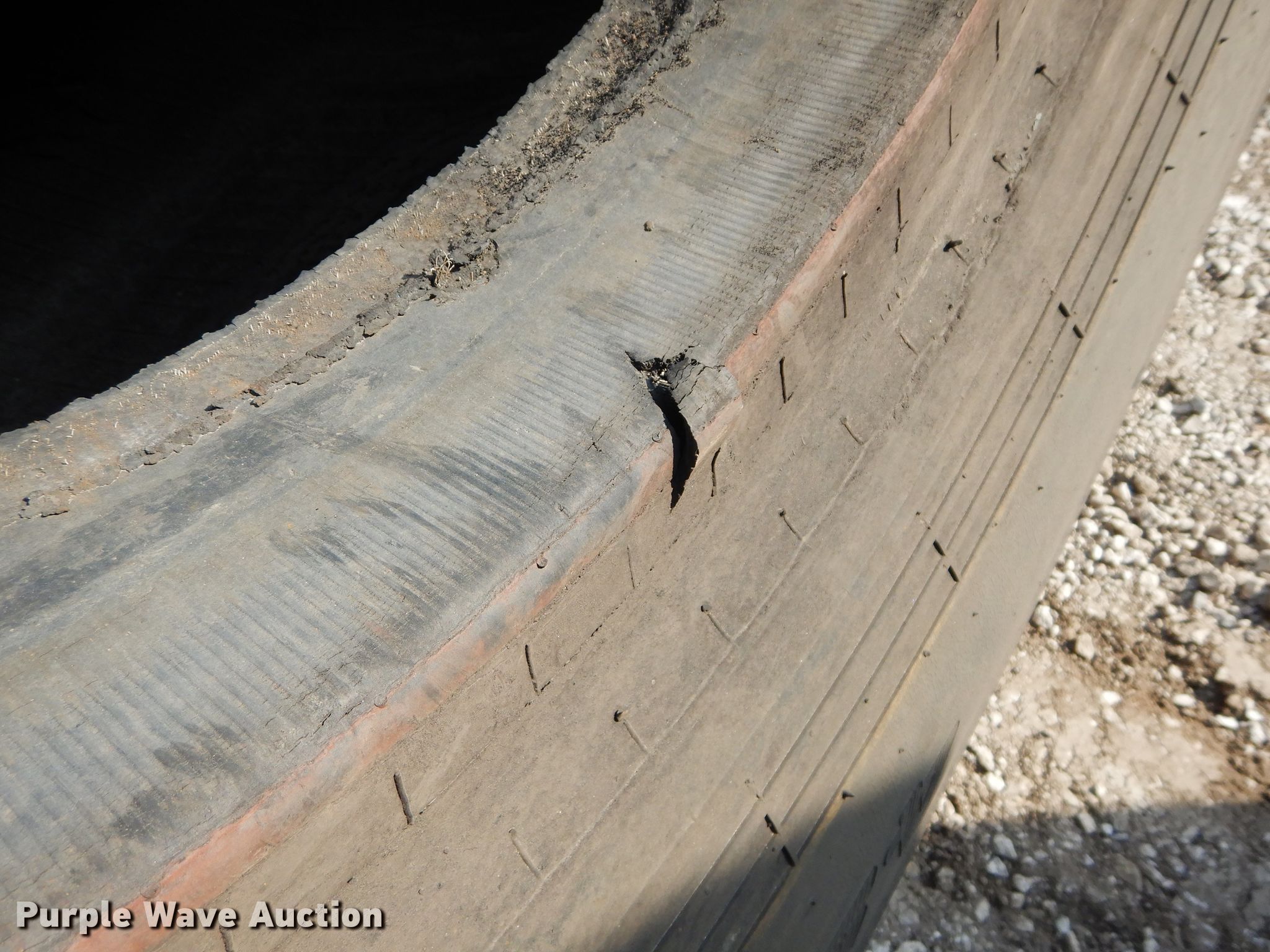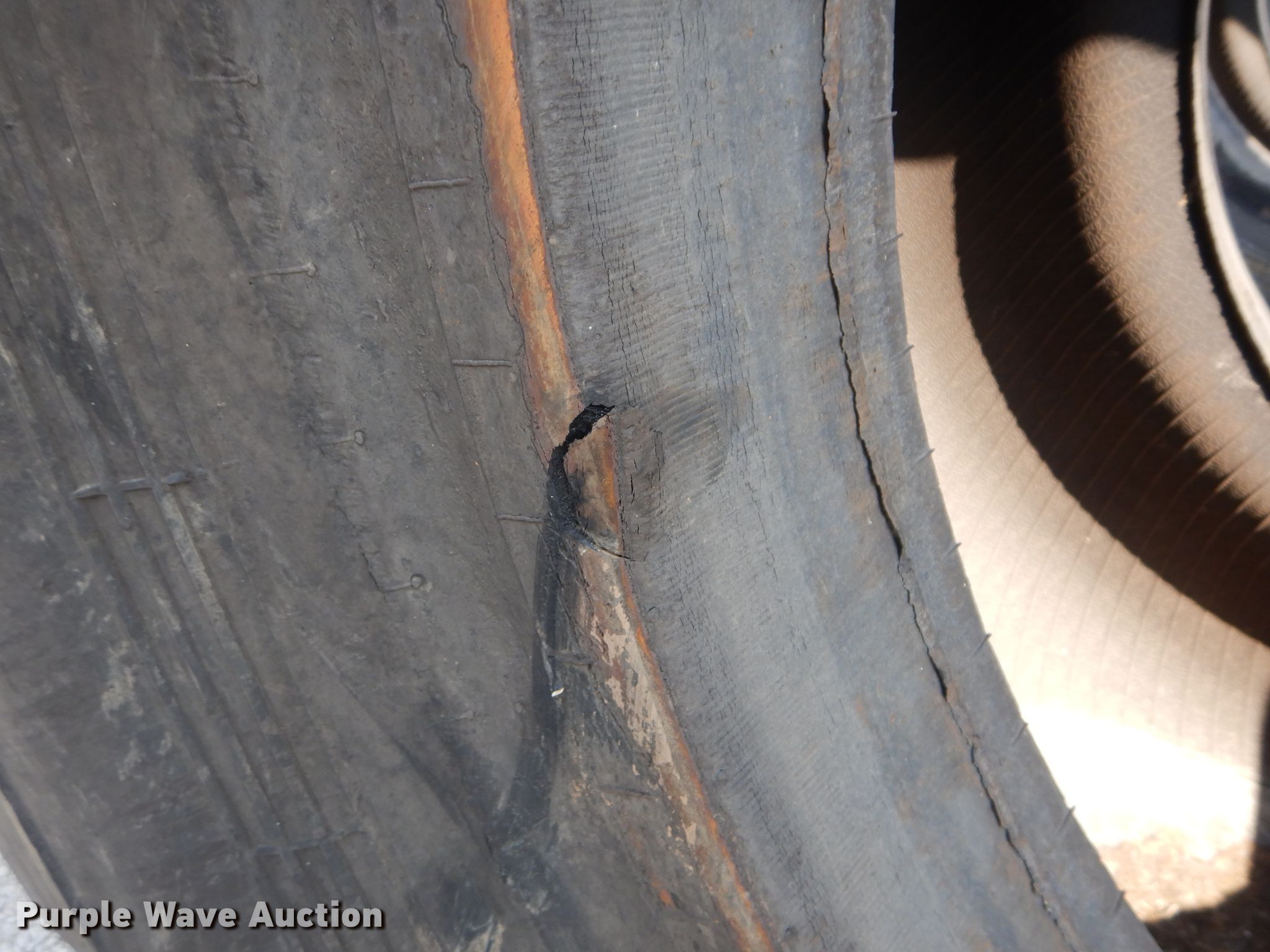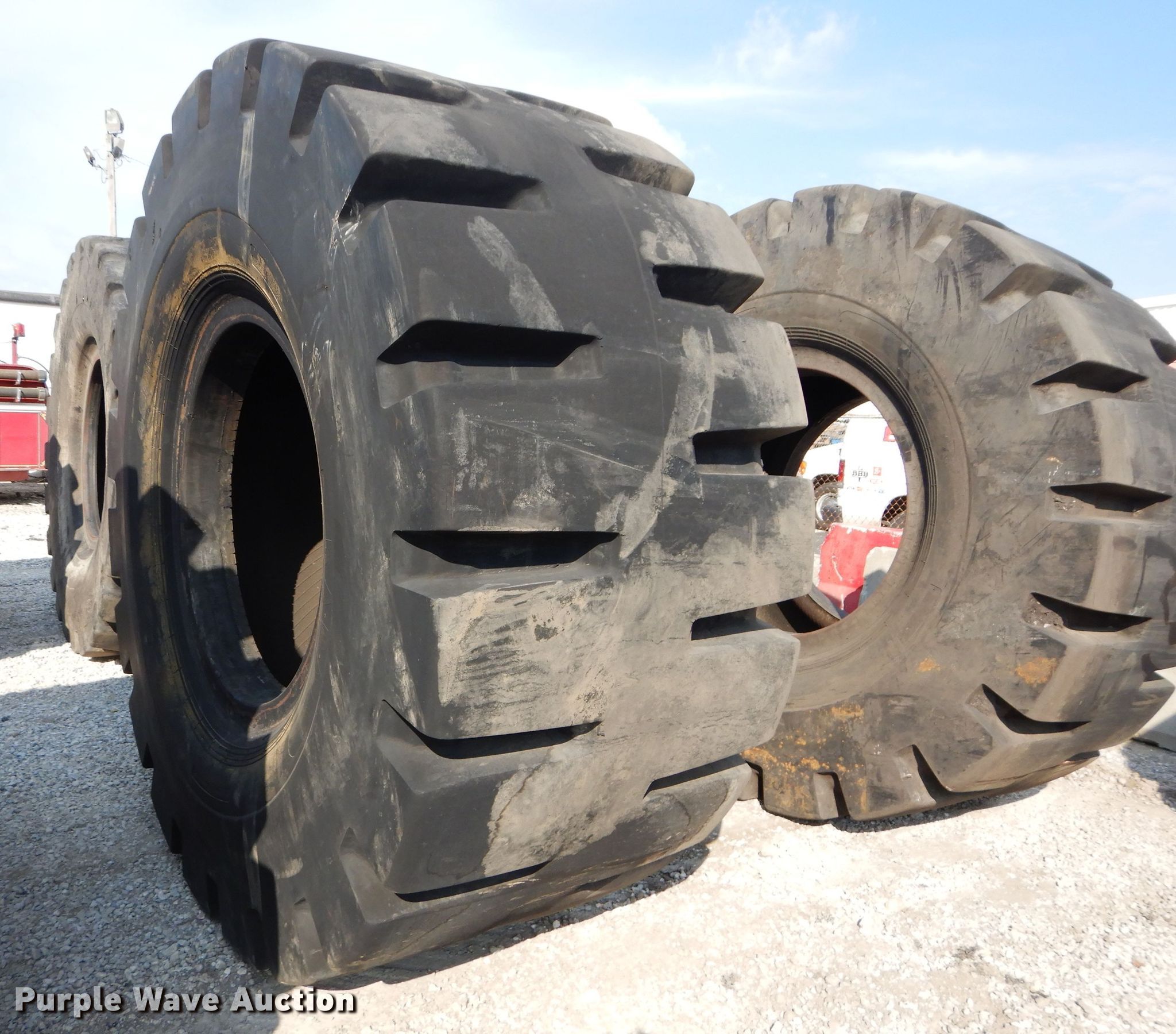 Purple Wave is selling a used Industrial Tires or Tracks in Kansas. This item is a (4) Radar 45/65-45 dozer tires with the following: L5 tread pattern, 58 PR Nylon, 36.00/45 wheel size, Cuts in sidewalls, Unknown operating condition