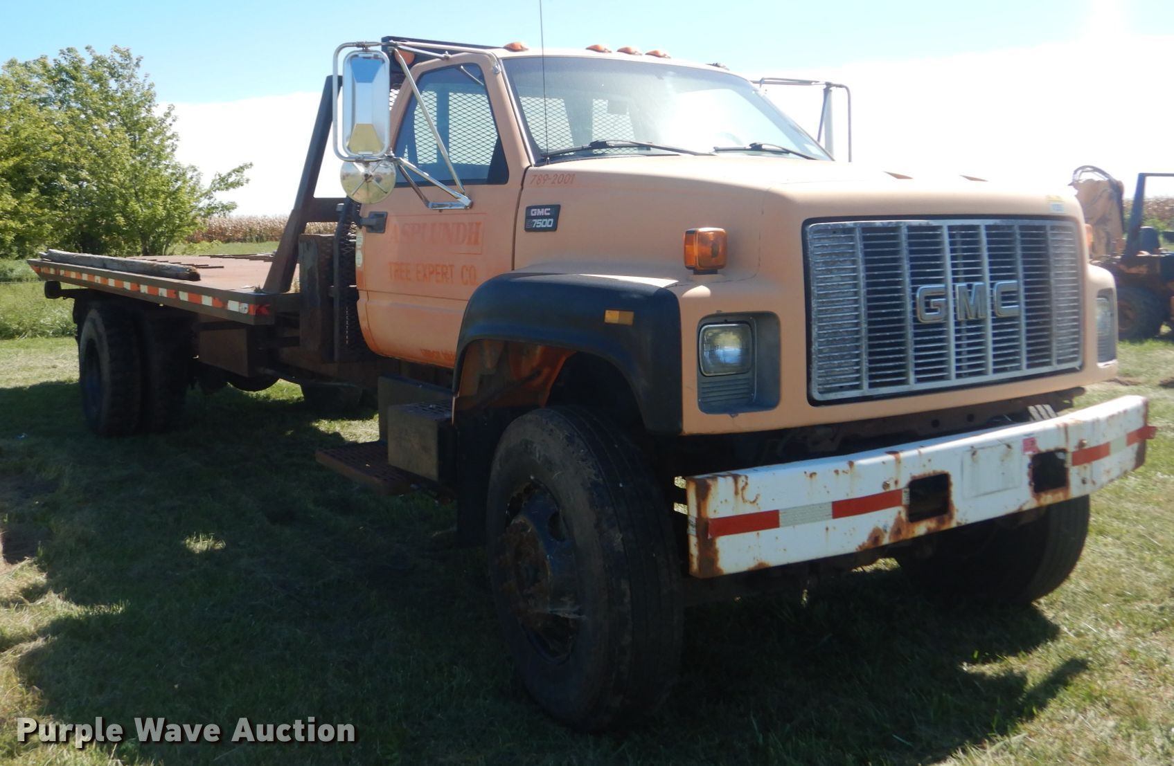 This 2002 GMC 7500 rollback truck will sell to the highest bidder regardless of price.