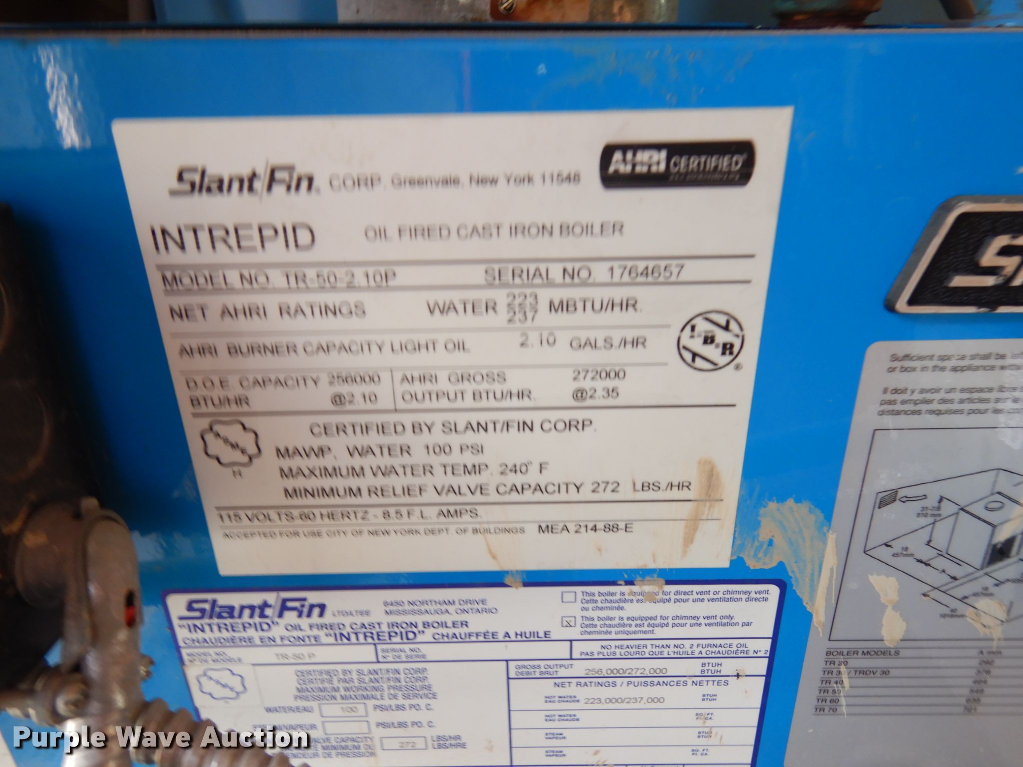 - Intrepid TR-50-2.10P oil fired boiler