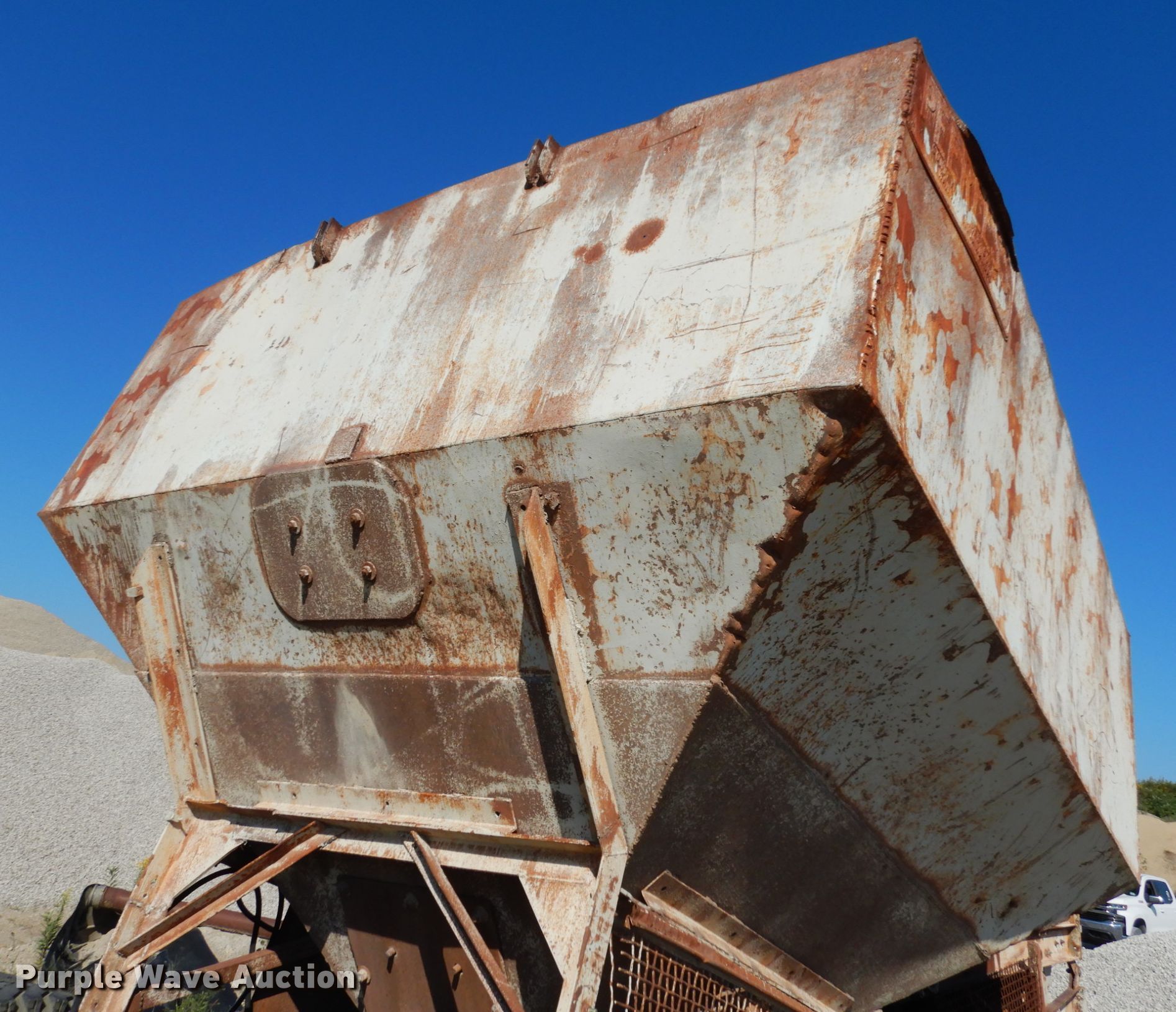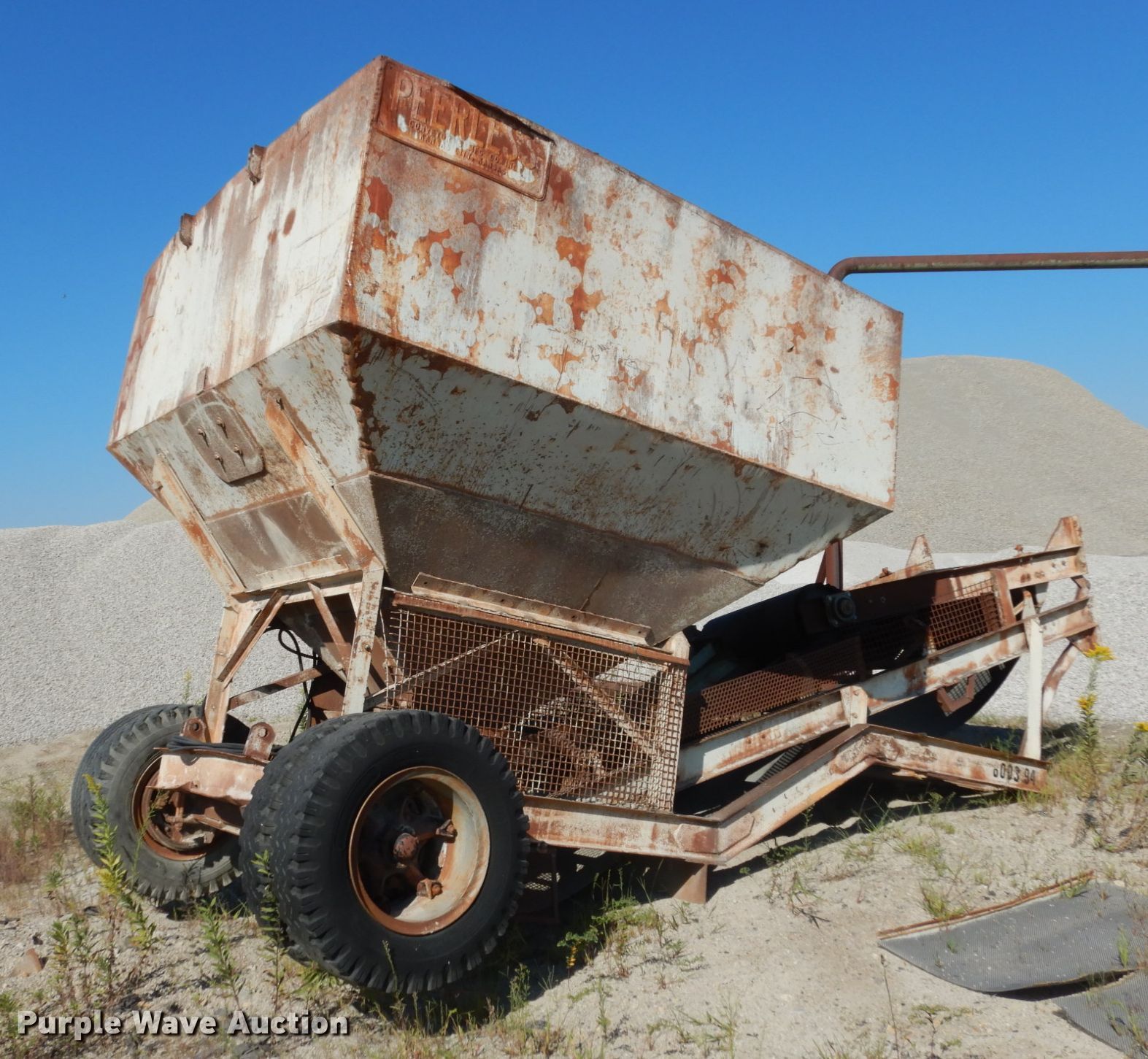 Purple Wave is selling a used Quarry or Aggregate Attach. in Missouri. This item is a Peerless rock bin and conveyor with the following: 40" belt, 10' x 10' bin, 9.00-20 tires