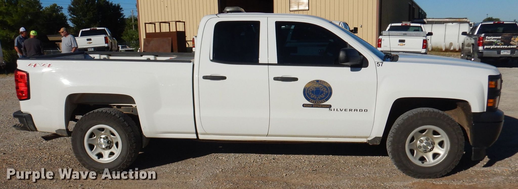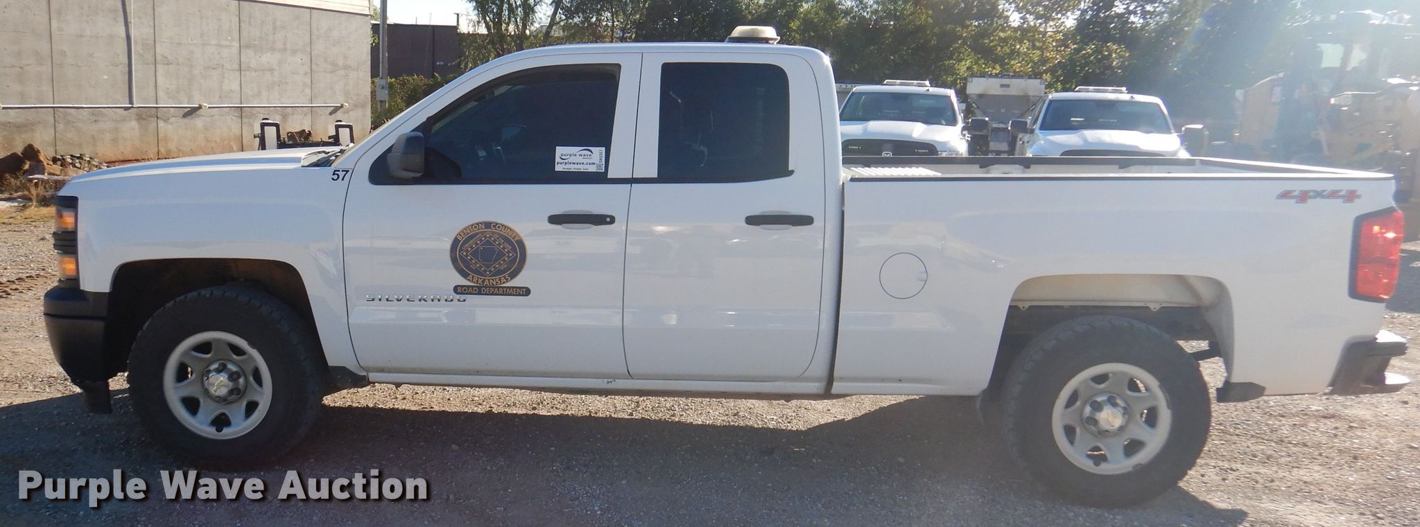 2015 Chevrolet Silverado 1500 Double Cab pickup truck. Miles: 82,420 on odometer, VIN: 1GCVKPEC4FZ313746, Unit #: 57. Engine Displacement: 5.3L V8 OHV 16V, Cylinders: 8, Fuel type: Gas. Transmission Automatic, Four wheel drive. Interior AC, Heat, Power windows, Power locks, Cruise control. Tires Size: 265/70R17. Notes Truck box not included, Radio not included. Arkansas title. Benton County Road Dept. 1208 SW 14th St. Bentonville, AR 72712