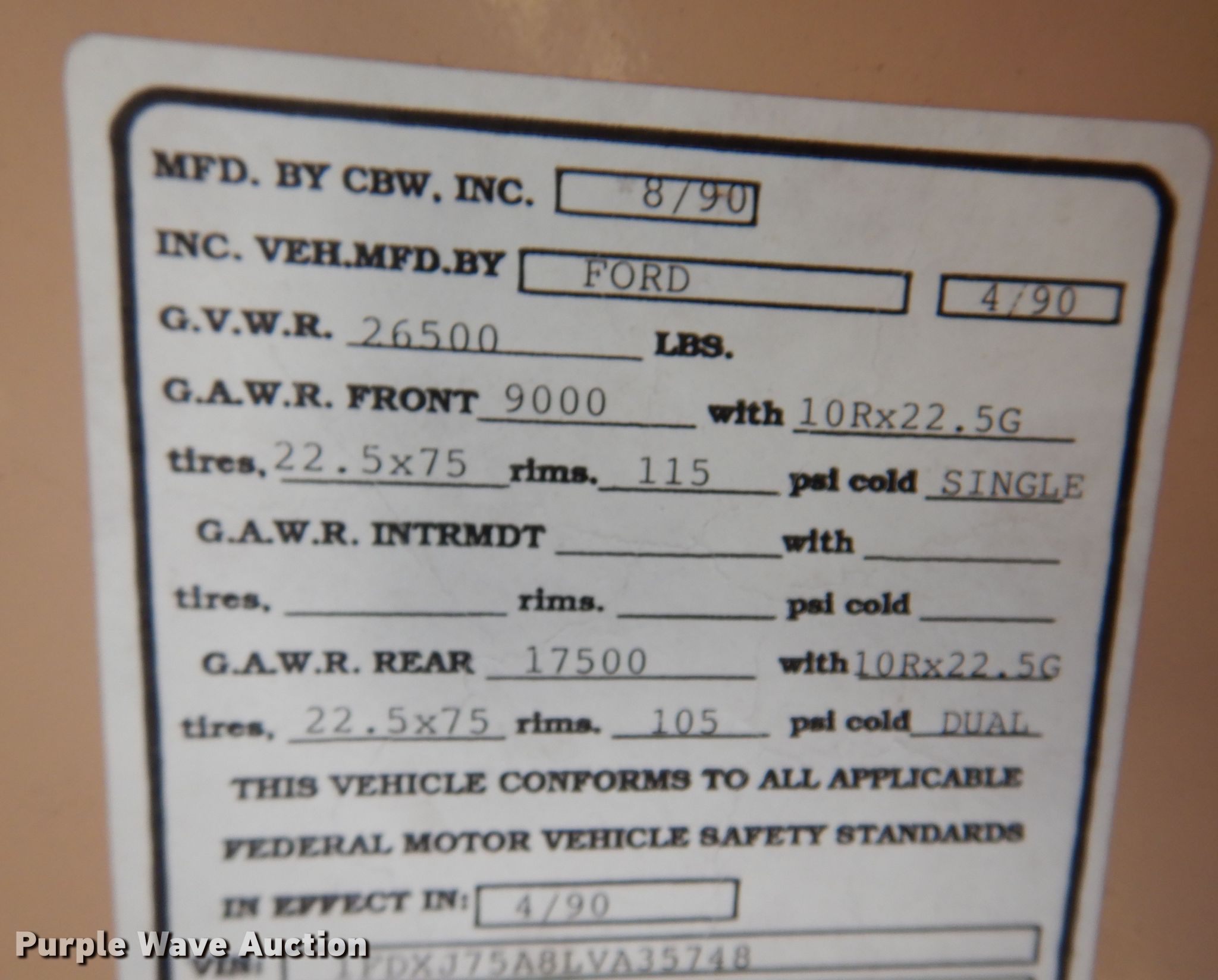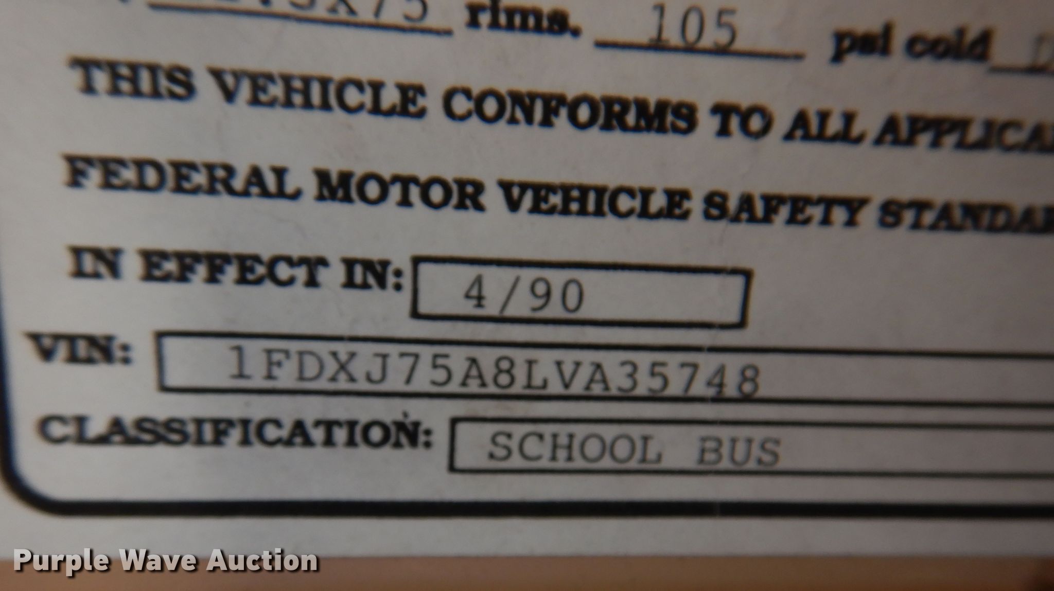 • VIN: 1FDXJ75A8LVA35748
