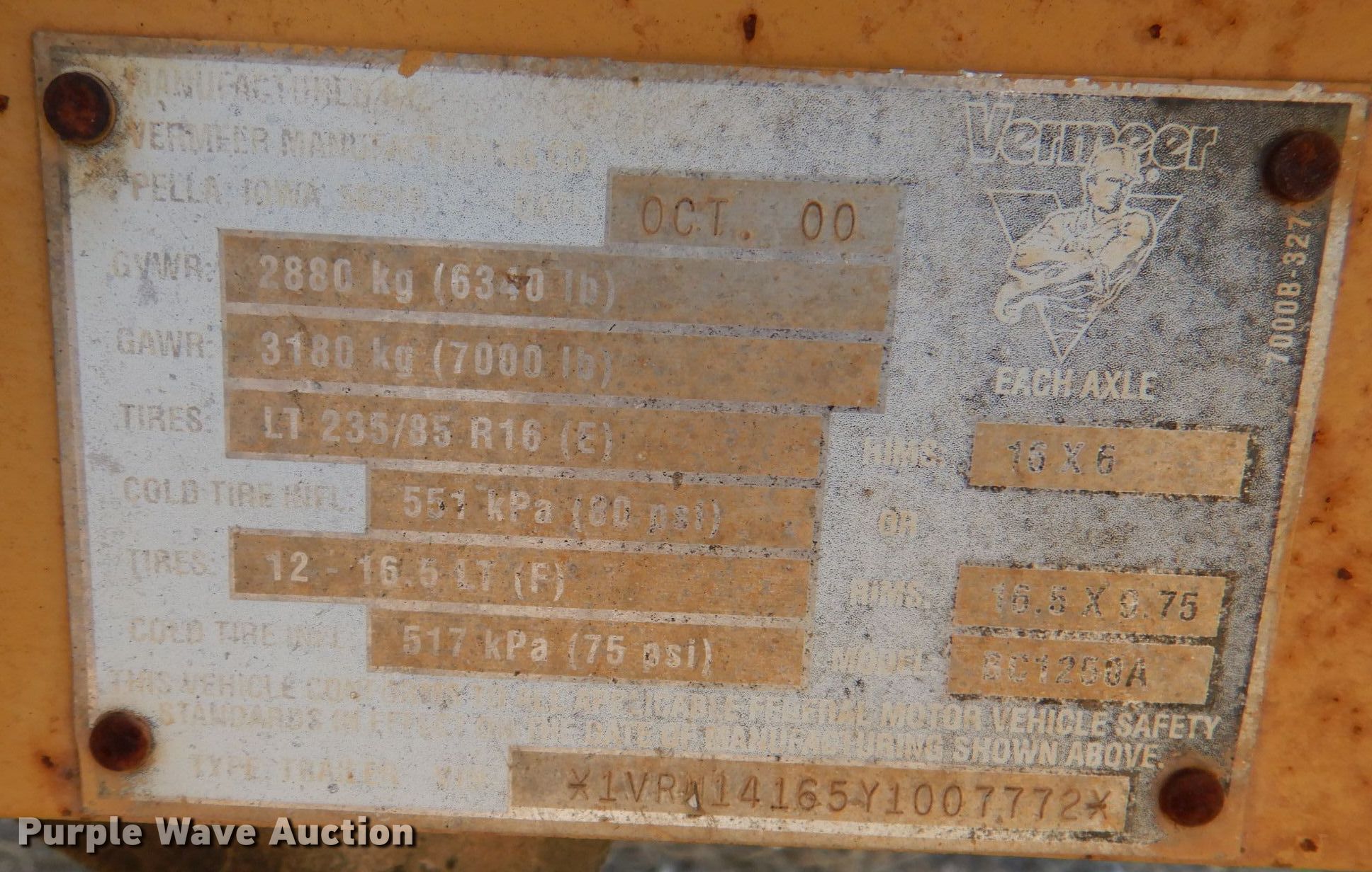 Purple Wave is selling a used Wood Chipper or Stump Grinder in Oklahoma. This item is a 2001 Vermeer BC1250A wood chipper with the following: Hours: 1,307 on meter, VIN: 1VRN14165Y1007772