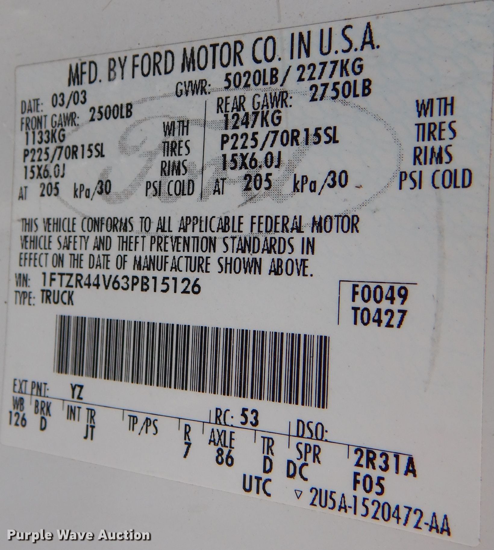 - VIN: 1FTZR44V63PB15126