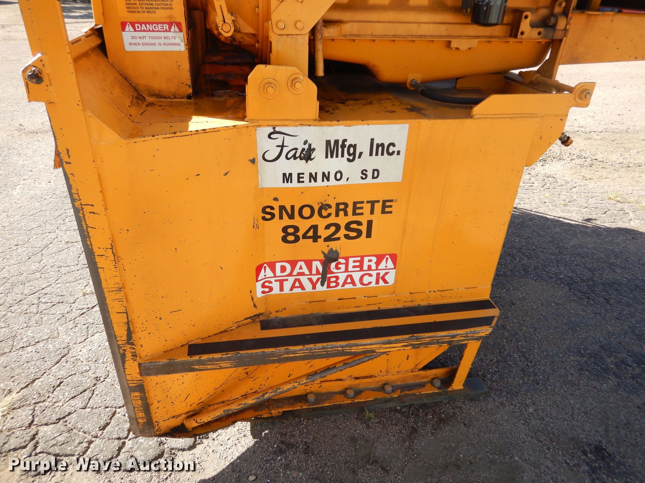 Purple Wave is selling a used Wheel Loader Attach. in South Dakota. This item is a Fair Snocrete 842SI snow blower with the following: 330 hours on meter, John Deere six cylinder diesel engine, 8'W x 4'H opening, 12" discharge chute, JBL quick coupler, Serial C8825910