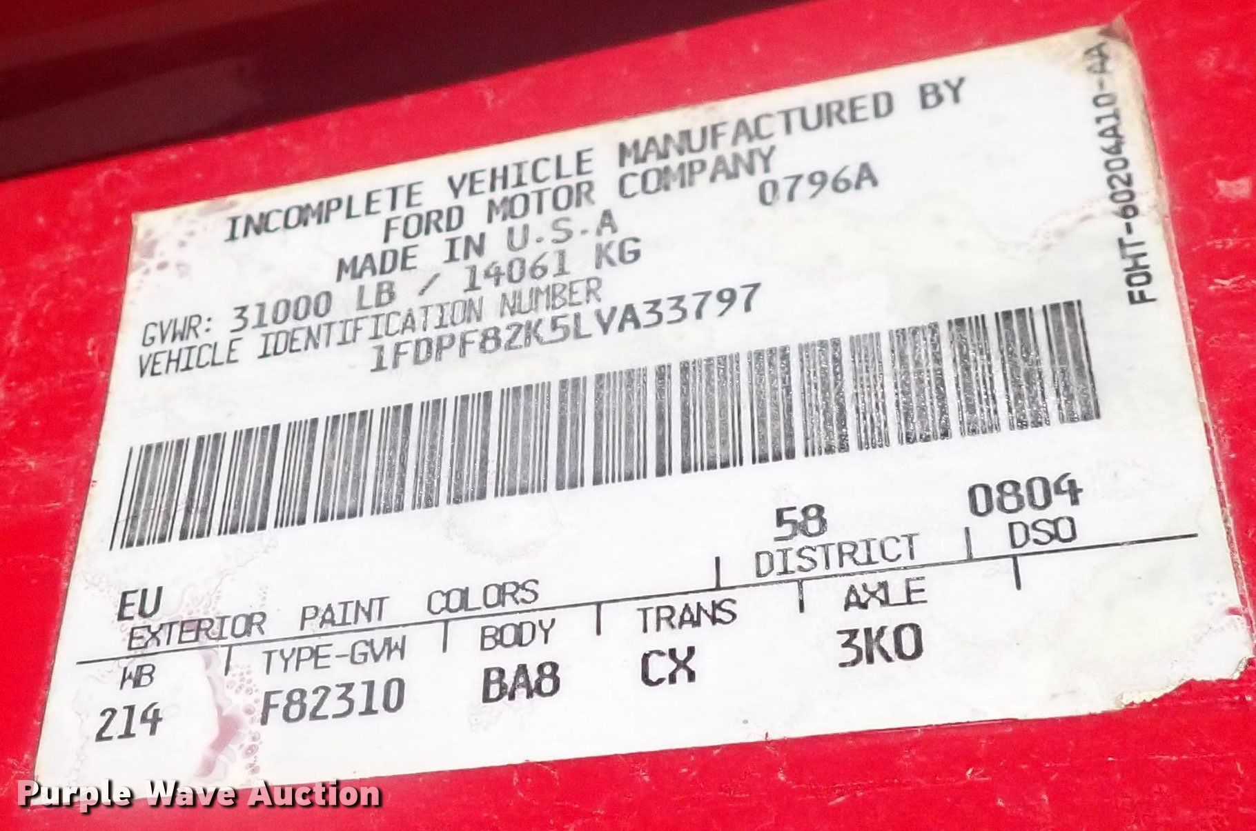 • VIN: 1FDPF82K5LVA33797