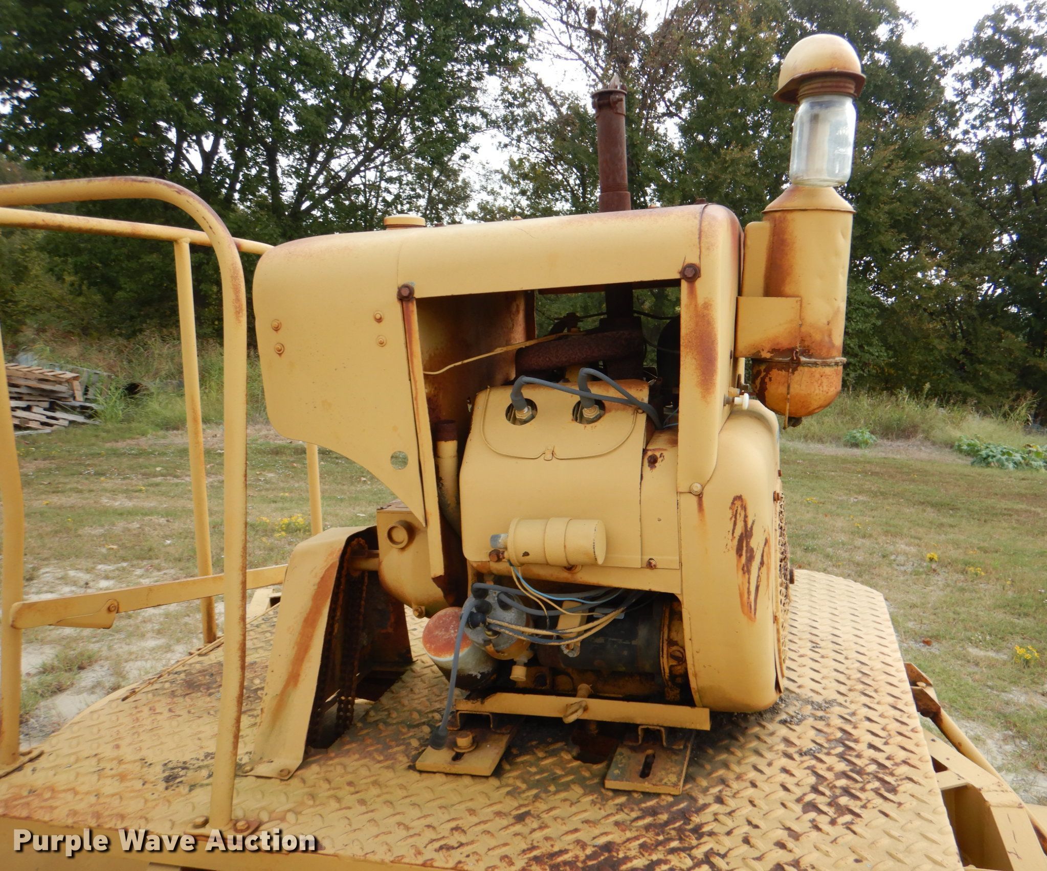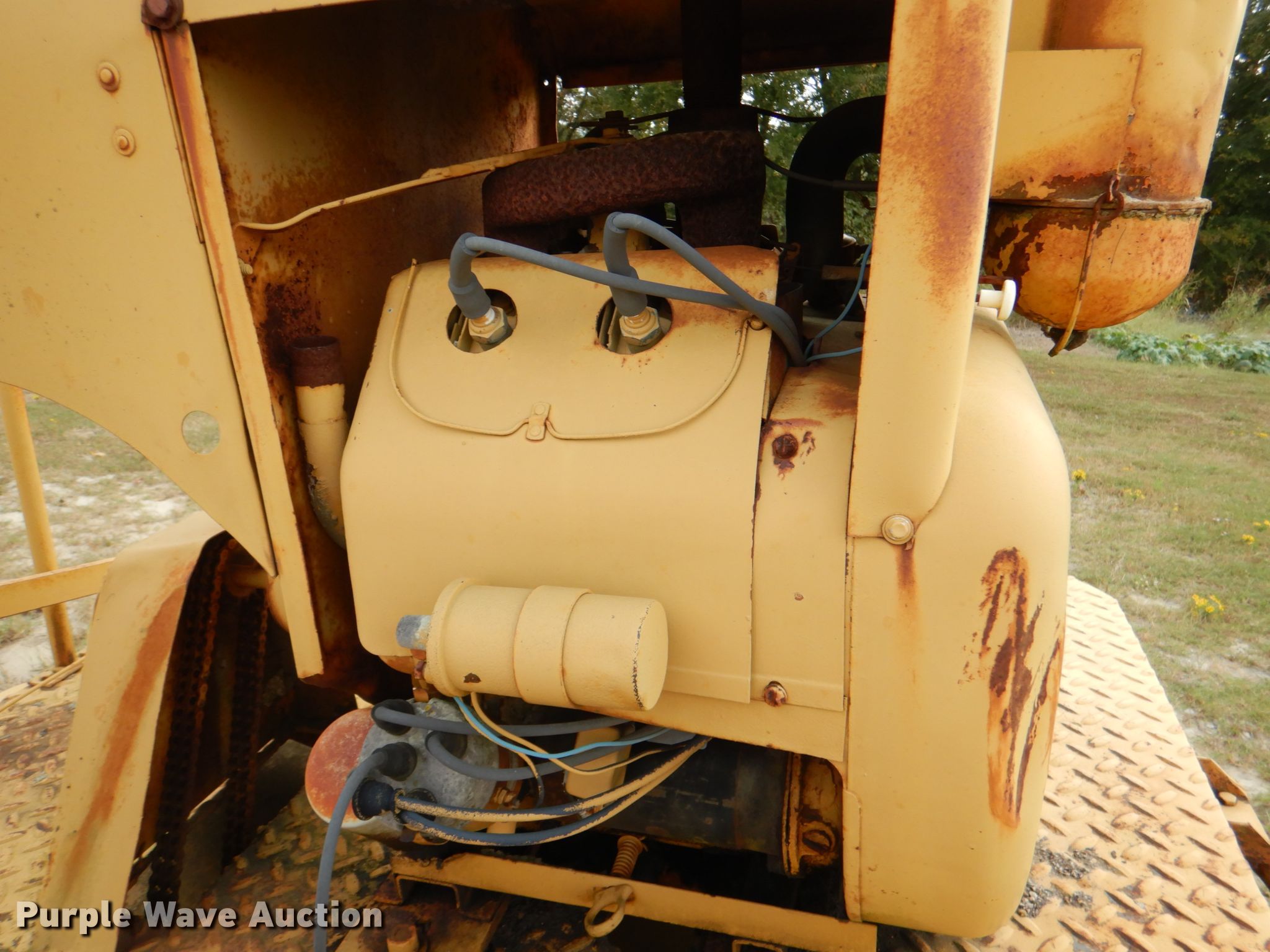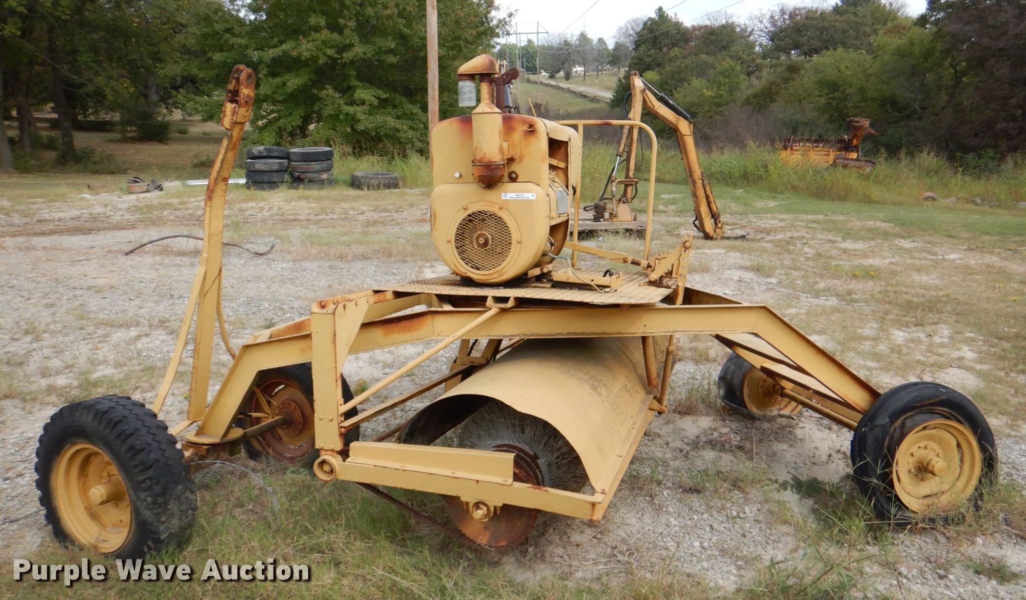 Rosco B7 broom. Serial: 402. Engine Wisconsin, Cylinders: 4, Fuel type: Gas. Operational Broom width: 86". Tires Size: 7.50-16LT. Notes Unknown operating condition. Okfuskee County. 704 E 7th St. Weleetka, OK 74880