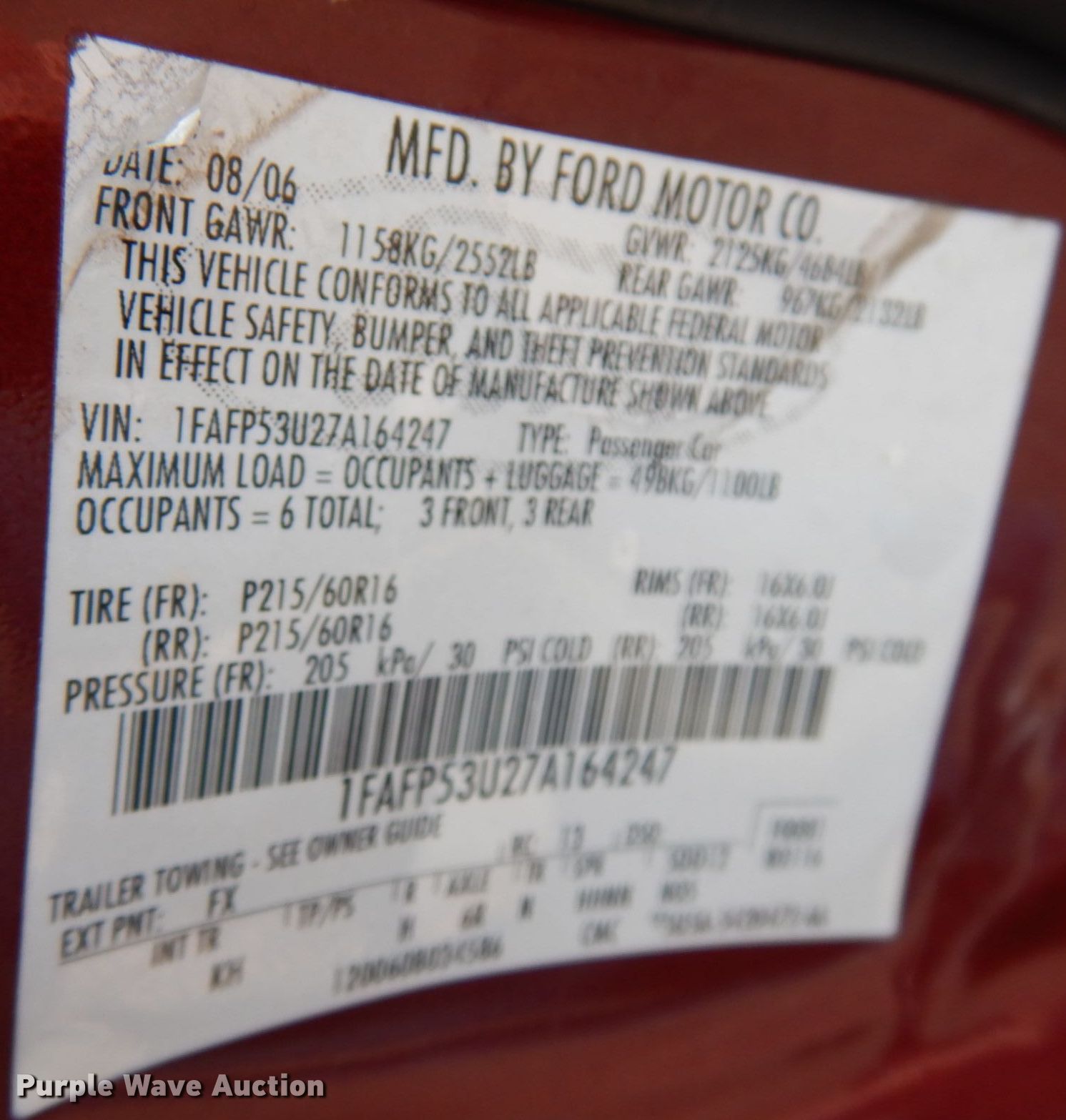 Purple Wave is selling a used Passenger Vehicle in Illinois. This item is a 2007 Ford Taurus with the following: Miles: 100,392 on odometer, VIN: 1FAFP53U27A164247