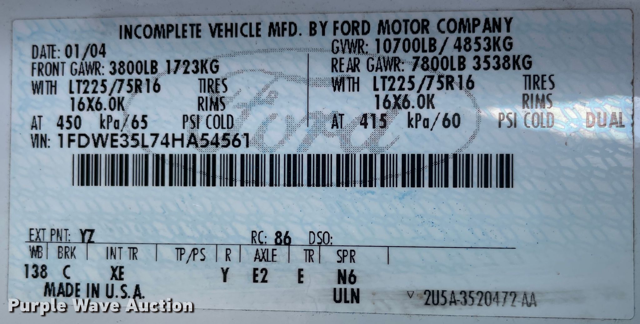 • VIN: 1FDWE35L74HA54561