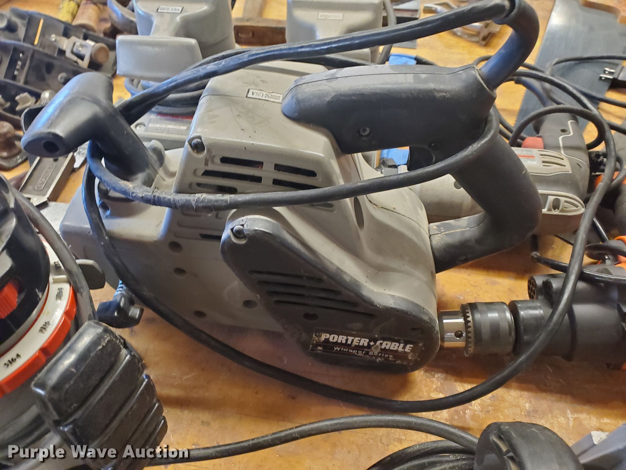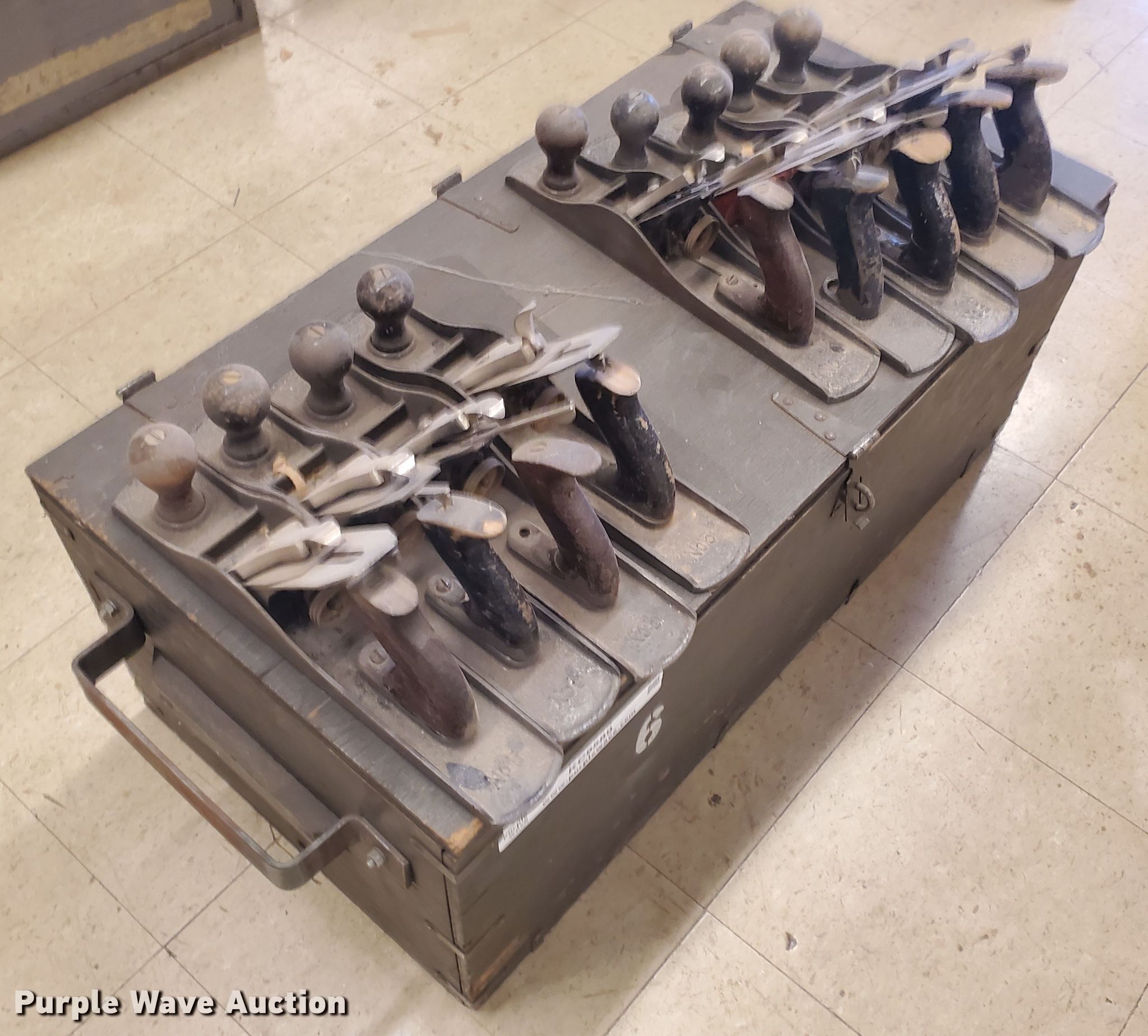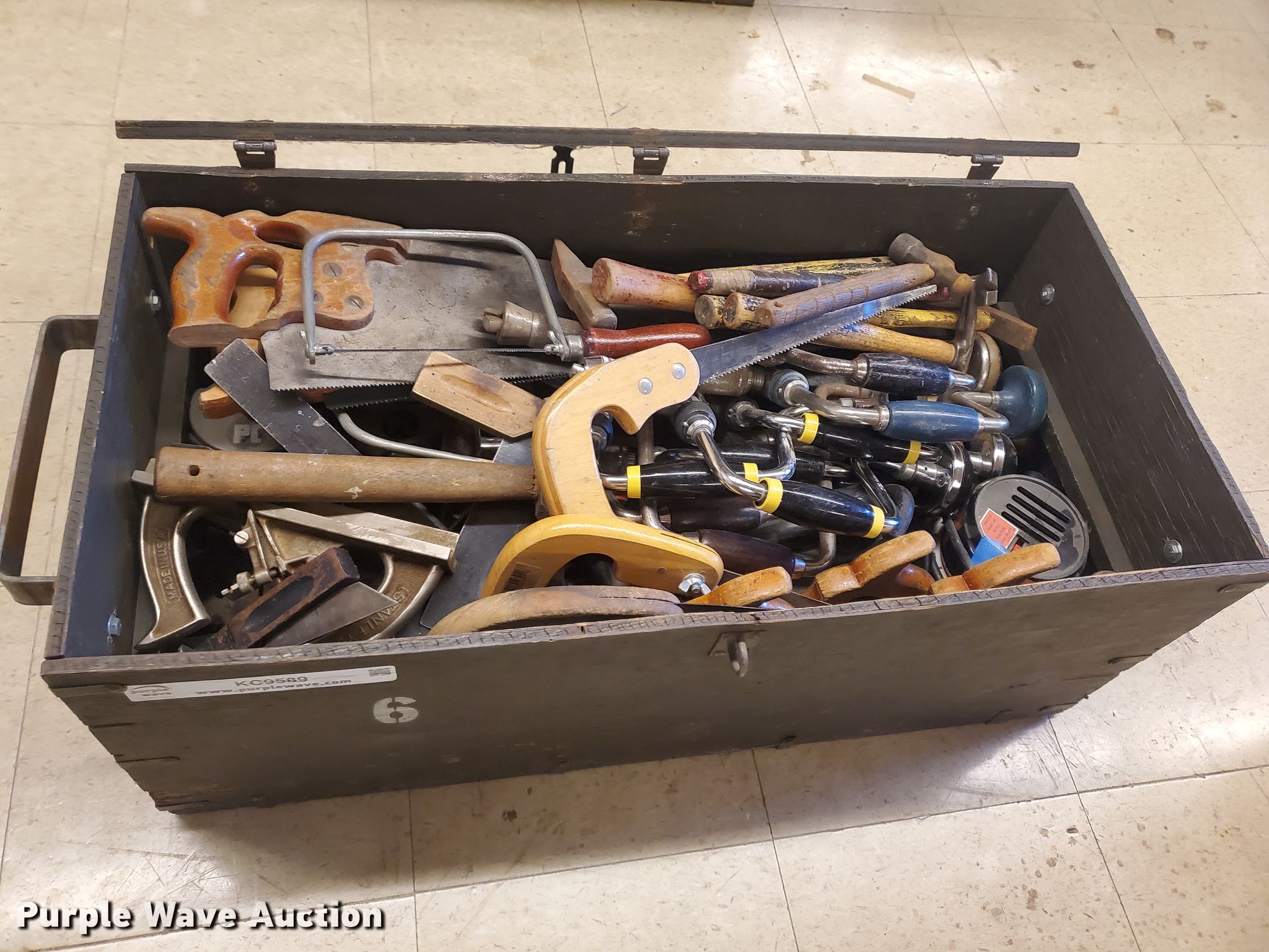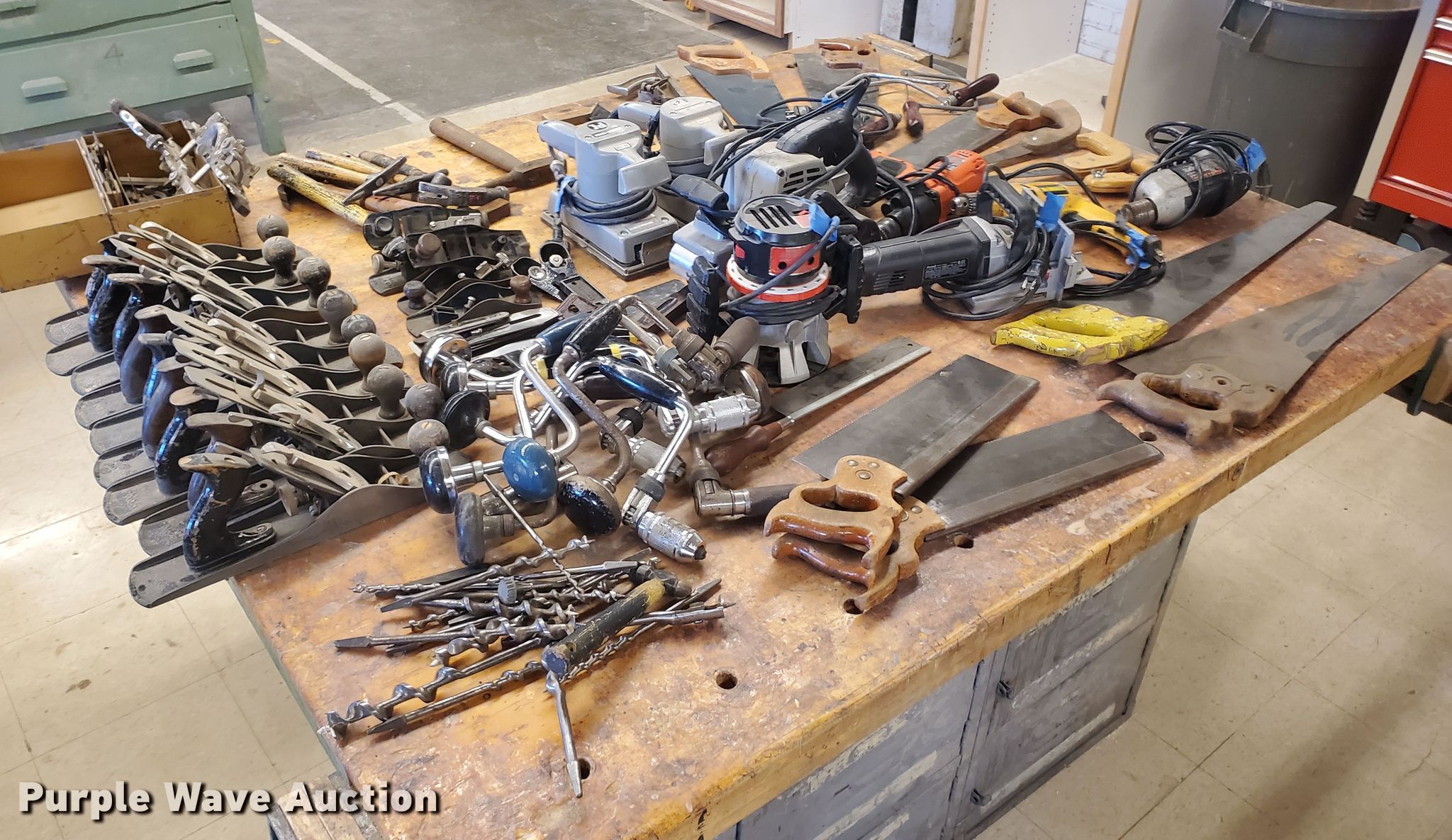 Purple Wave is selling a used Tools in Kansas. This item is a Tools with the following: Planes, Saws, Angles, Hammers, Sanders, Drills, Craftsman router, 4" jointer, Wood box