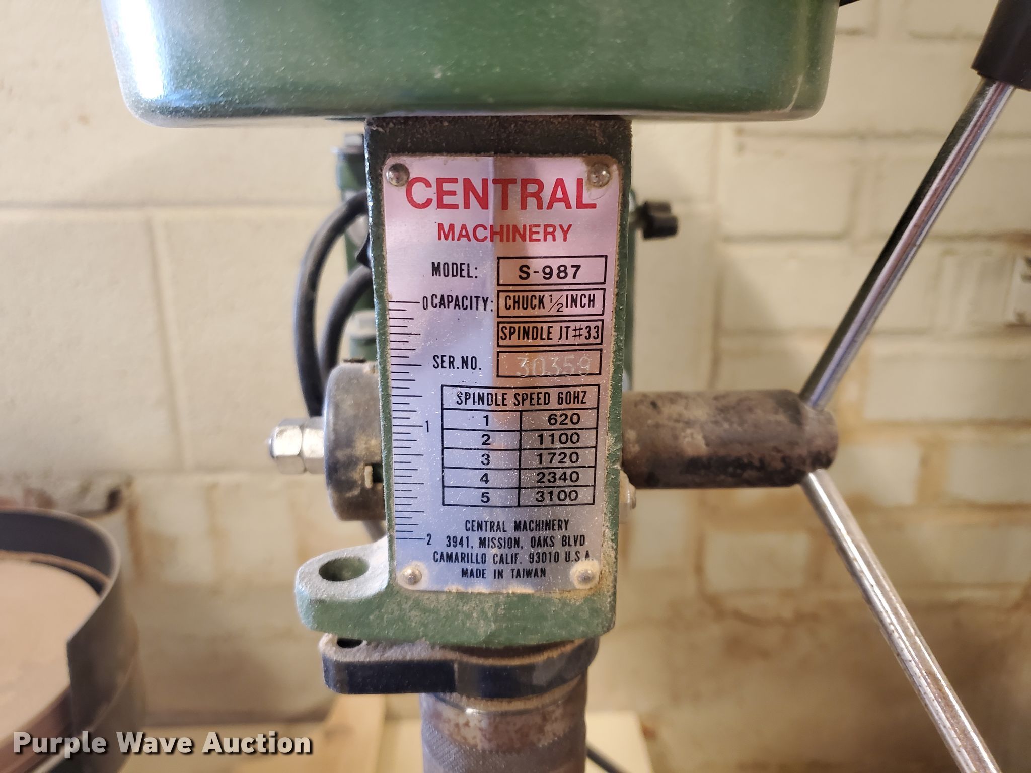 Purple Wave is selling a used Tools in Kansas. This item is a Tools with the following: Central Machinery S-987 drill press, 120V, Serial: 30359, Atlas grinder, 115V