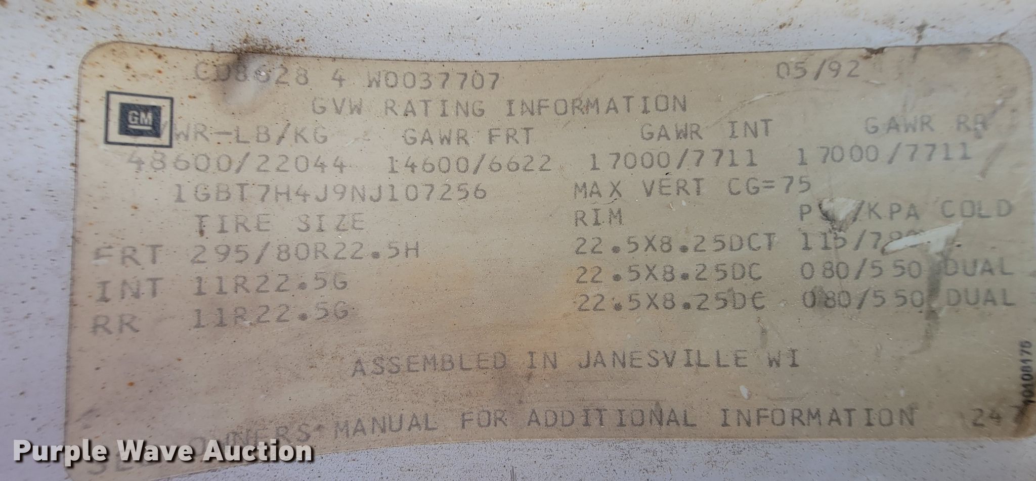 Purple Wave is selling a used Tank Truck or Water Truck in Missouri. This item is a 1992 Chevrolet TopKick C7500 water truck with the following: Miles: 175,853 on odometer, Hours: 22,750 on meter, VIN: 1GBT7H4J9NJ107256