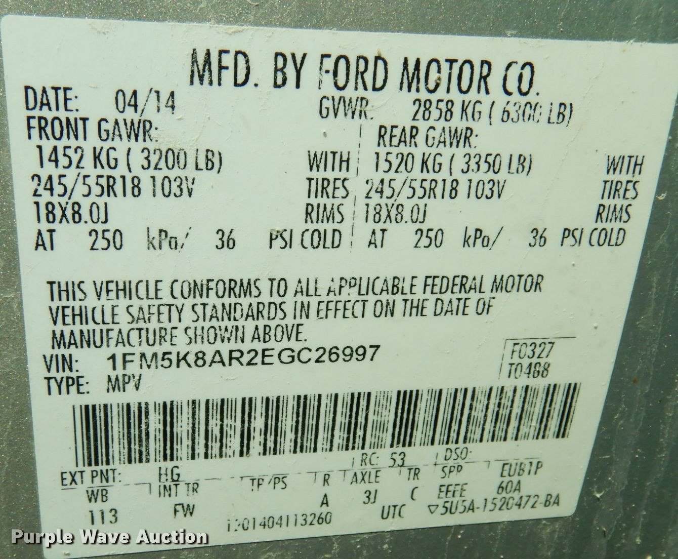 - VIN: 1FM5K8AR2EGC26997