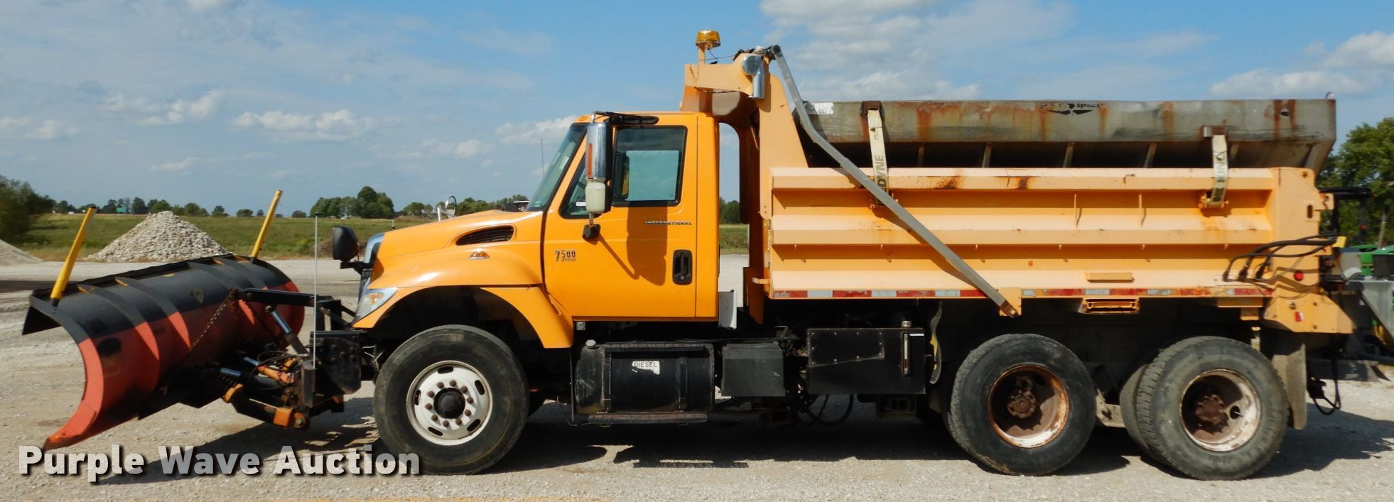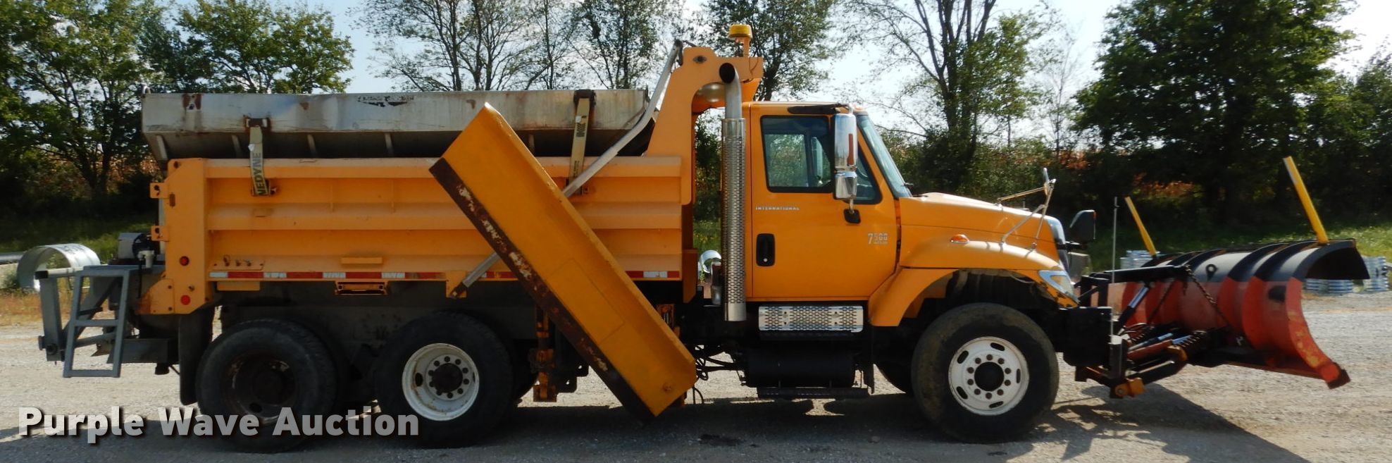 2004 International WorkStar 7500 dump truck. Miles: 210,450 on odometer, Hours: 10,987 on meter, VIN: 1HTWPADT04J023474, MODOT ID#: 7175. Engine Cylinders: 6, Fuel type: Diesel. Transmission Eaton Fuller 8LL, Manual, Speed: 10. Chassis Axles: Tandem, Differential lock: Inter-axle, Suspension: Walking beam, Brakes: Air, Front mount PTO. Interior AC, Heat, Heated mirrors, Power windows, Cruise control. Operational Dump bed Viking-Cives M01336, 13' L x 96" W, Side height: 36", Bed type: Steel, Roll tarp, Ram: Single , End gate: Air operated, Spreader Swenson, Plow Width: 144", Wing plow Width: 8'. Tires Front: 315/80R22.5, Rear: 11R22.5. Missouri title. Title distribution may be delayed up to 14 days from verification of funds. Missouri Department of Transportation (MODOT). 26826 US Hwy 63. Macon, MO 63552