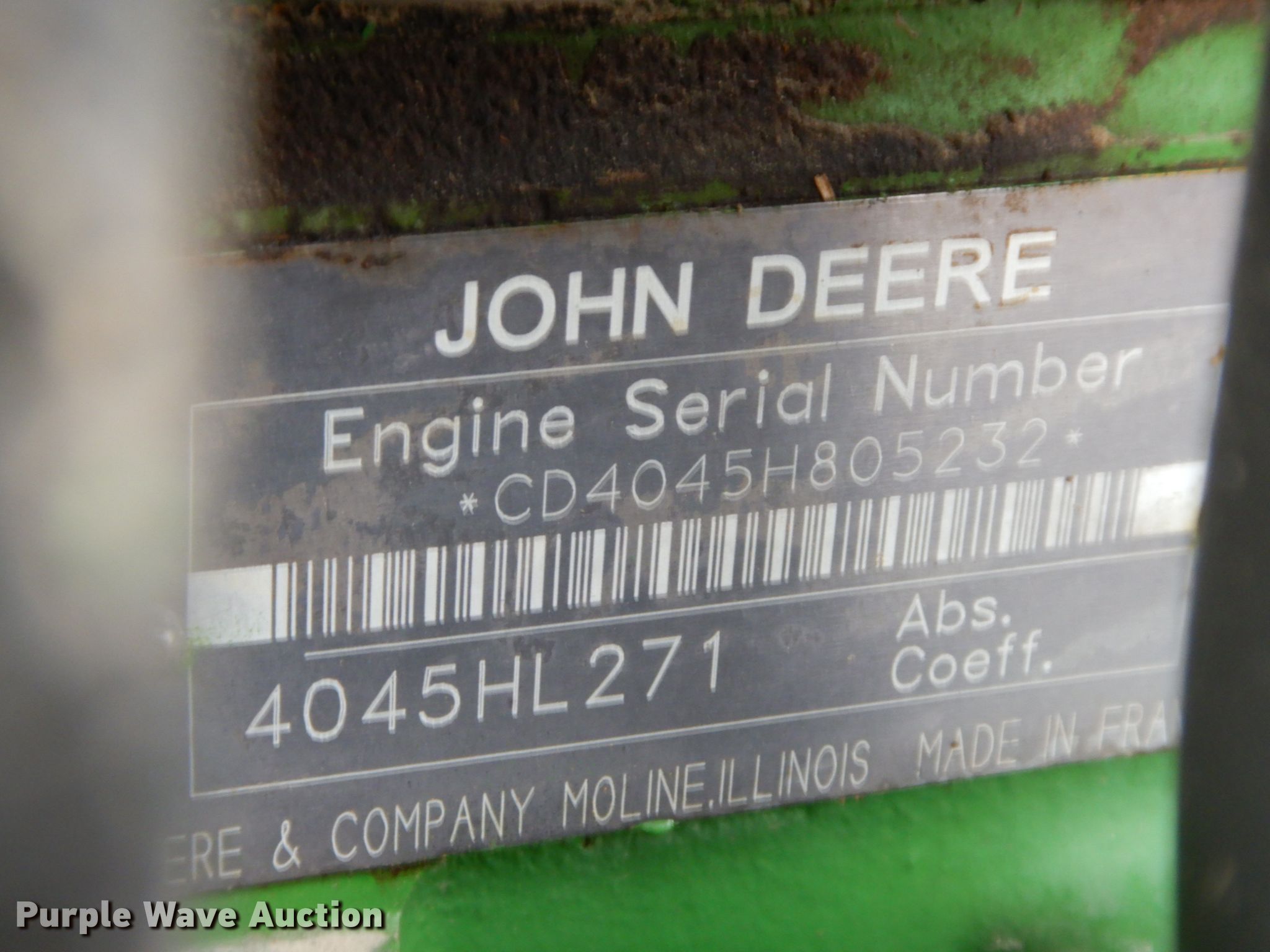 2002 John Deere 6420 MFWD tractor. Hours: 1,142 on meter, Serial: L06420A368837. Engine John Deere 4045, Serial: CD4045H805232, Cylinders: 4, Fuel type: Diesel. Transmission Synchro, 12F - 4R. Operational PTO: 540, Three point Top link, Seven pin outlet, Hydraulic remote sets Rear: 3, Suitcase weights: 6. Tires Front: 13.6-24, Rear: 18.4-34, Wheel weights: 2. Notes Possible transmission issues, intermittent reverse issues, Non-operational three point hitch, Hour meter replaced at 3,340 hours. Missouri Department of Transportation (MODOT). 26826 US Hwy 63. Macon, MO 63552