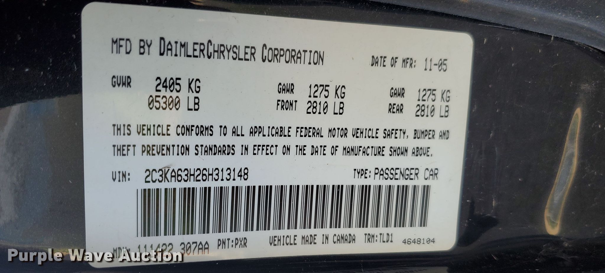 - VIN: 2C3KA63H26H313148