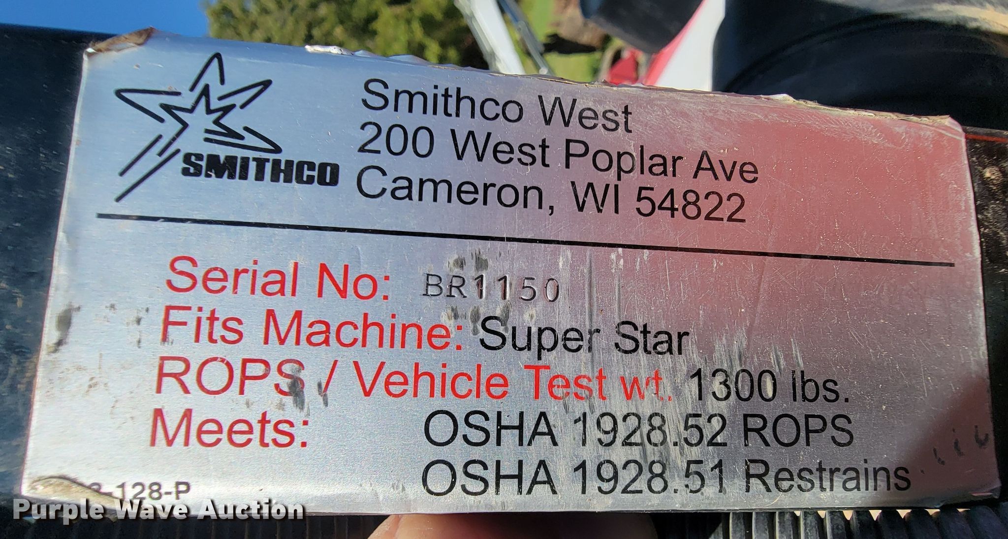 Purple Wave is selling a used Lawn and Garden in Missouri. This item is a Smithco bunker rake with the following: Briggs & Stratton Vanguard gas engine, 16 HP, Smithco 42-011 blade, 40"W, 54"W undercarriage rake, Smithco 26-0080 sweeper, 74"W, Tire size: 22x11.00-10, Serial: BR1150