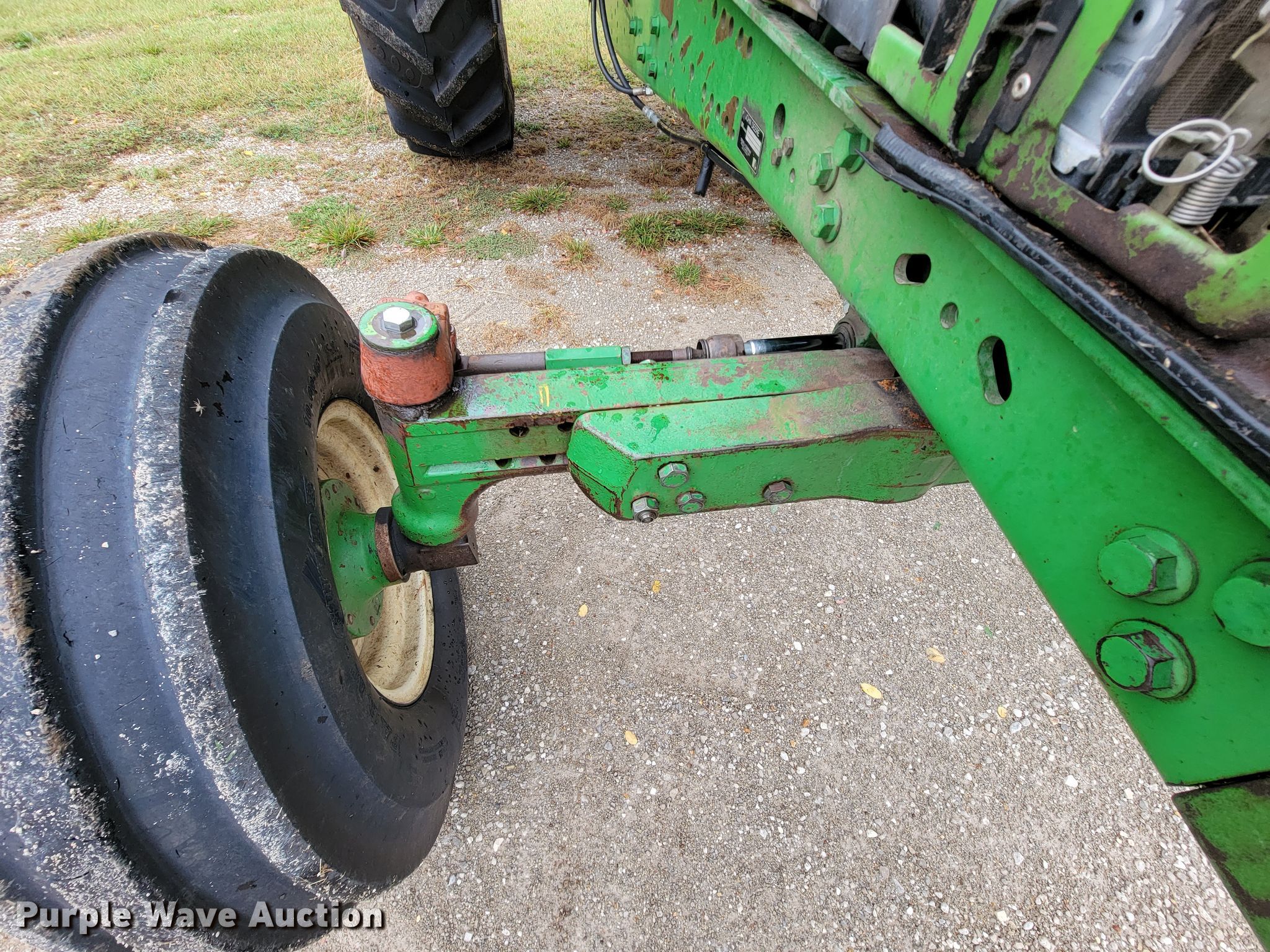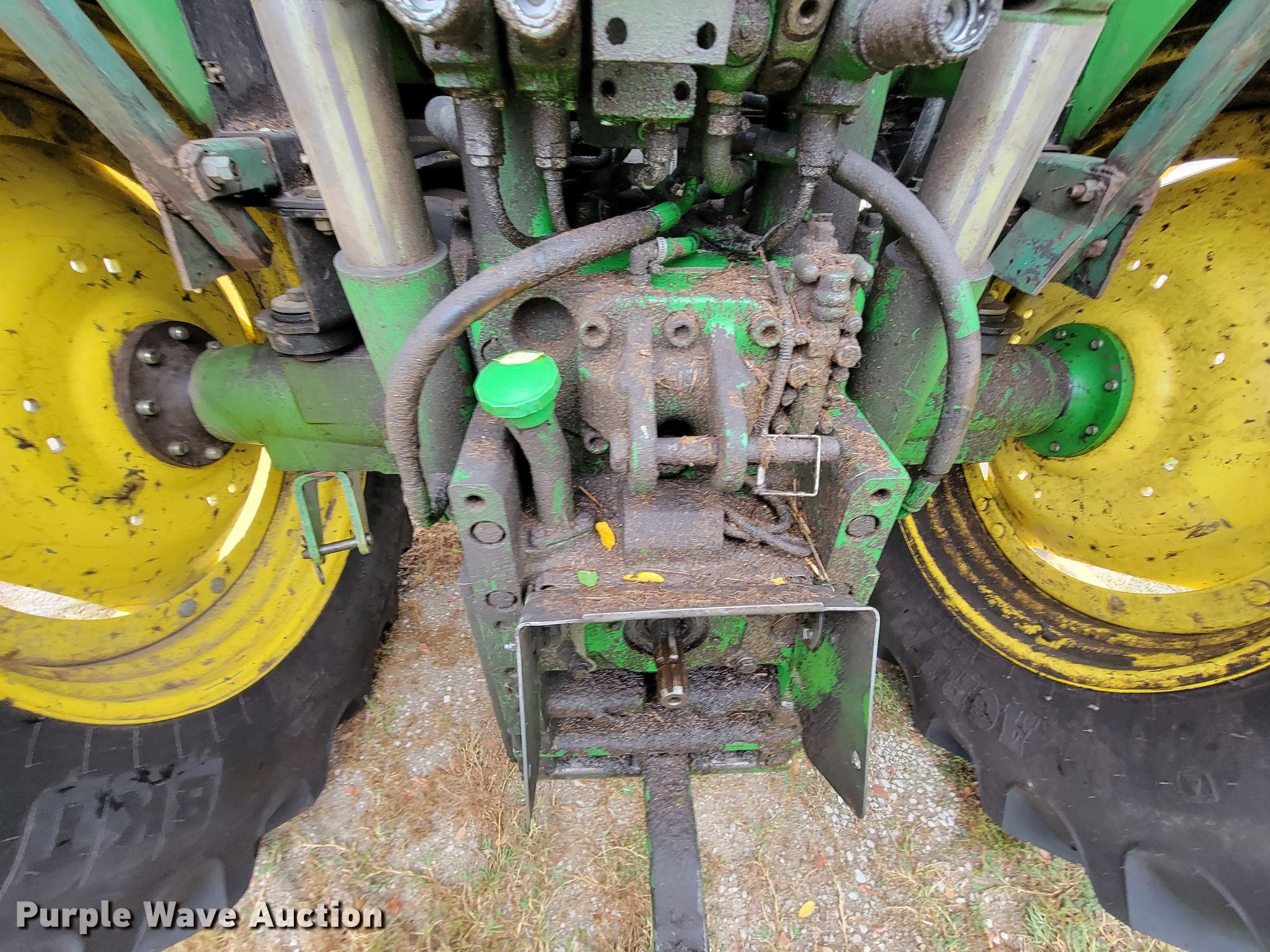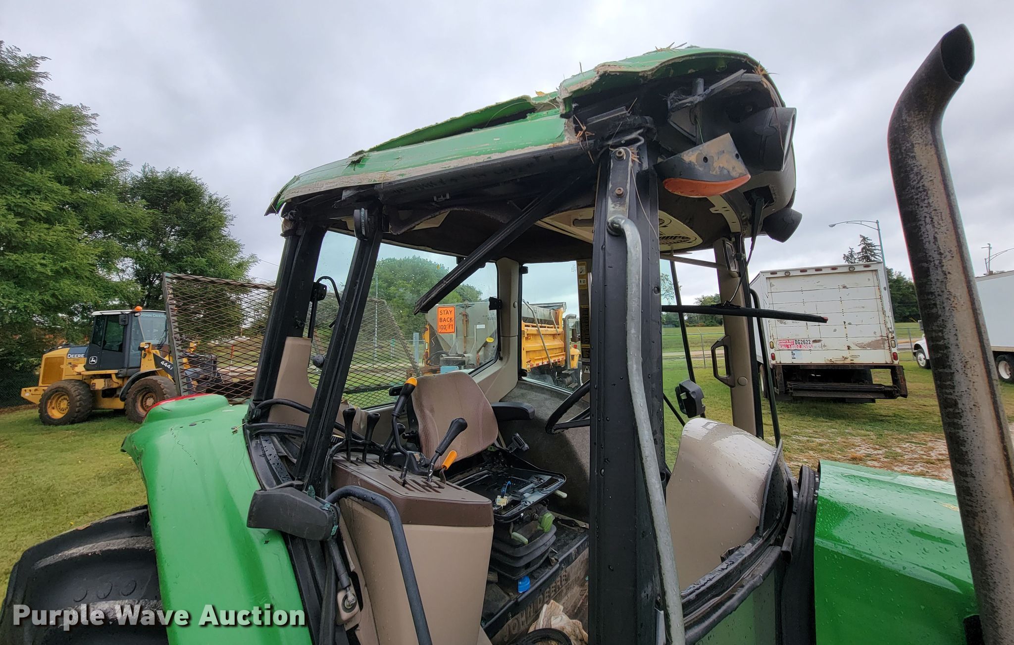 John Deere 6615 tractor. Hours: Unknown, Serial: L06615A447054. Engine Cylinders: 6, Fuel type: Diesel. Transmission Synchro, 12F - 4R. Operators station AC, Heat. Operational PTO: 540, Hydraulic remote sets Rear: 3, Suitcase weights: 4. Tires Front: 10.00-16, Rear: 460/85R38, Wheelbase: 111". Notes Foam filled front tires, Glass cracked/missing, PTO leaks, Rollover damage. 615 N West Bypass. Springfield, MO 65802
