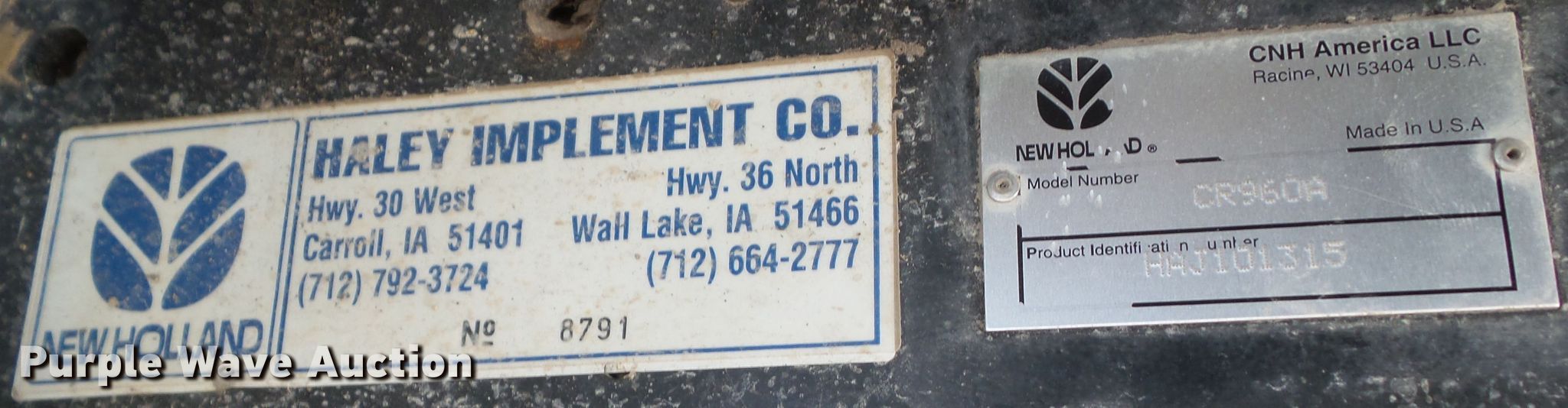 Purple Wave is selling a used Combine in Iowa. This item is a 2004 New Holland CR960 combine with the following: Engine hours: 7,625 on meter, Separator hours: 4,805 on meter, Serial: HAJ101315