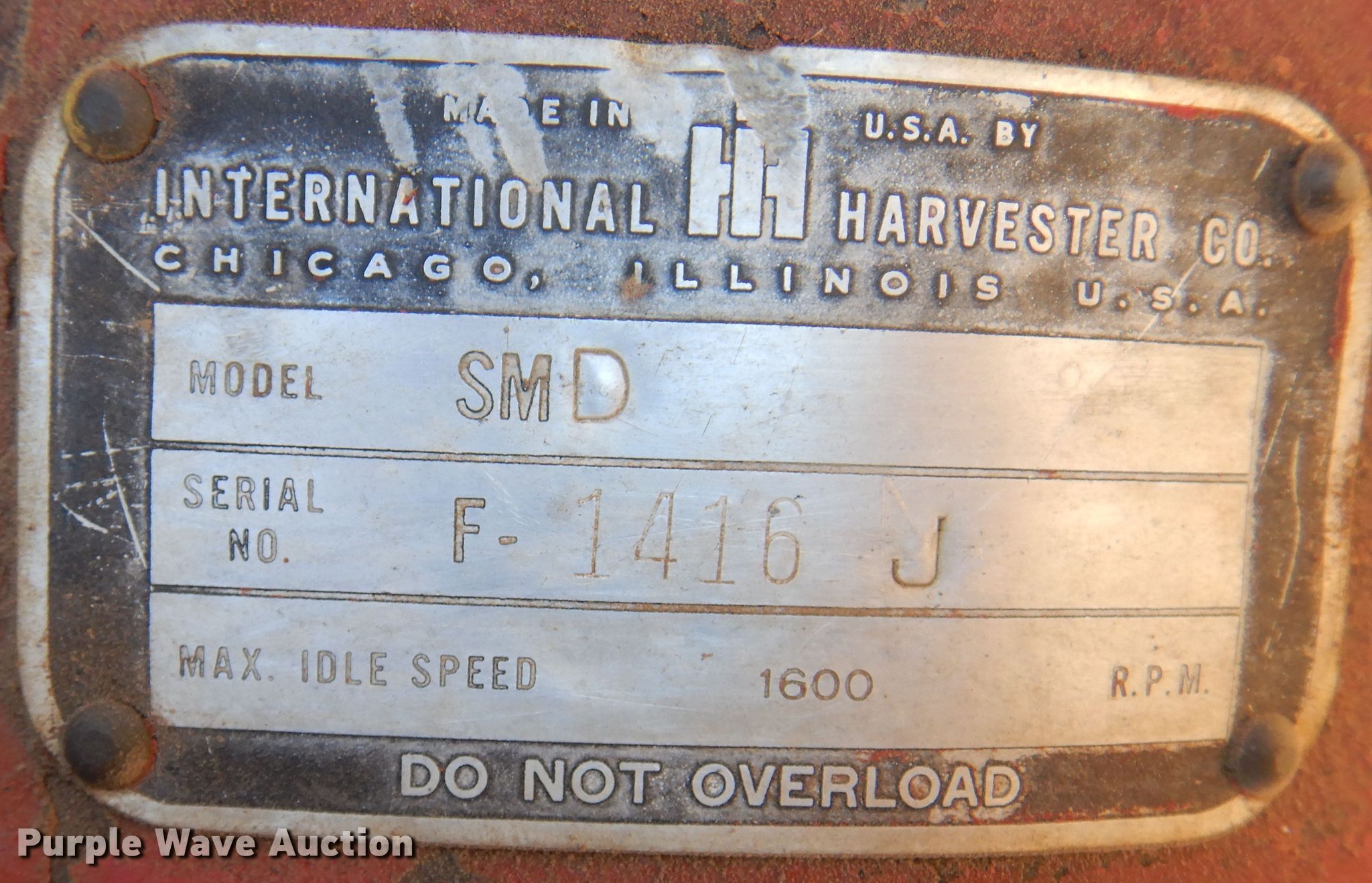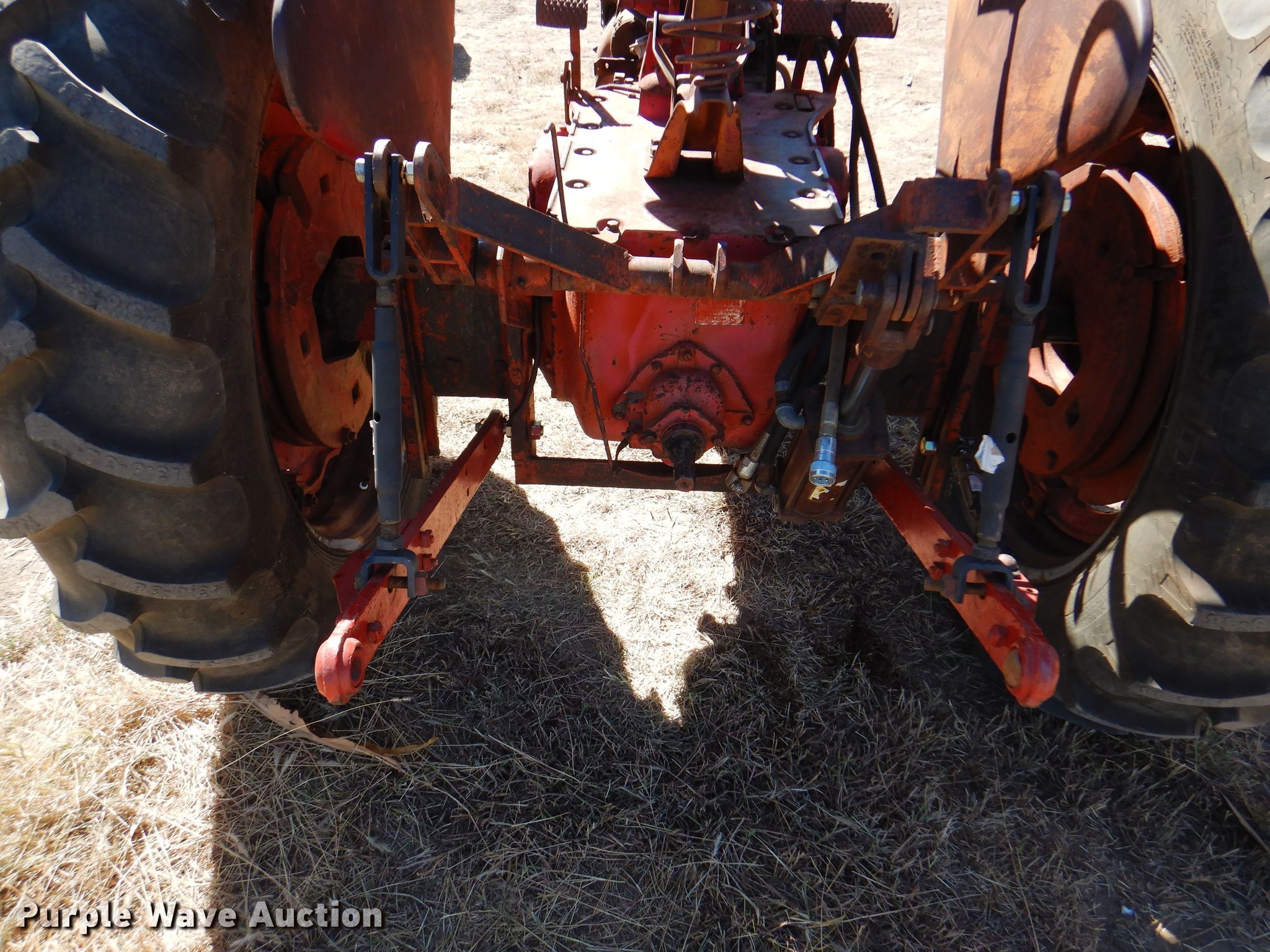 1952 Farmall Super MD tractor. Serial: F-1416J. Engine Cylinders: 4, Fuel type: Diesel. Transmission Manual, 4F - 1R. Operational PTO: 540, Three point, Hydraulic remote sets Rear: 1. Tires Front: 6.50-16, Rear: 13.6-38. Notes Gasoline fired start. 1587 Cottonwood. Sublette, KS 67877