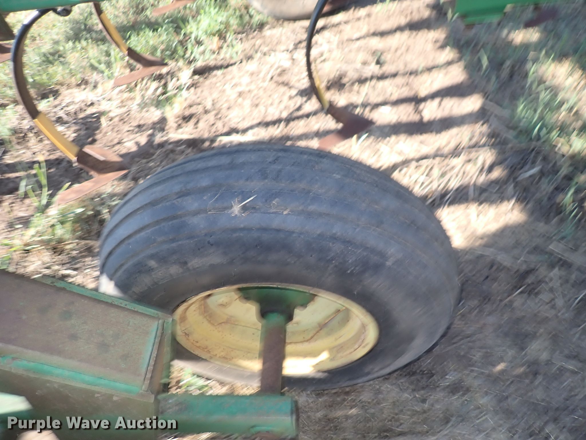 John Deere 980 field cultivator. Overall width: 30'. Operational Shanks: 50, Operation Hydraulic lift, Hydraulic fold, Attachments Tine harrow Harrow bars: 3.. Tires Tire size: 9.5L-15. Notes Hydraulic leak. Tom Baalmann Estate. Viola, KS 67149