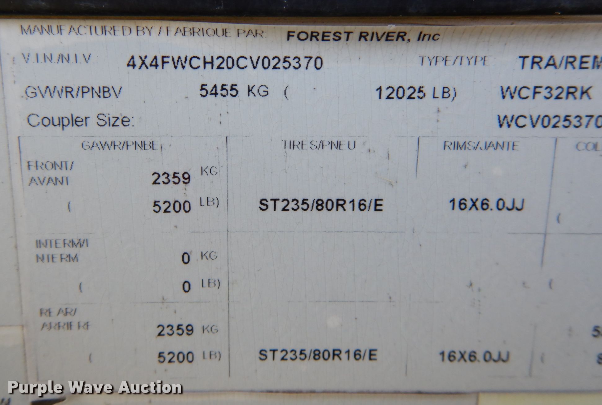 Purple Wave is selling a used RV in Minnesota. This item is a 2012 Forest River Wildcat Sterling camper with the following: Camper length: 34', VIN: 4X4FWCH20CV025370
