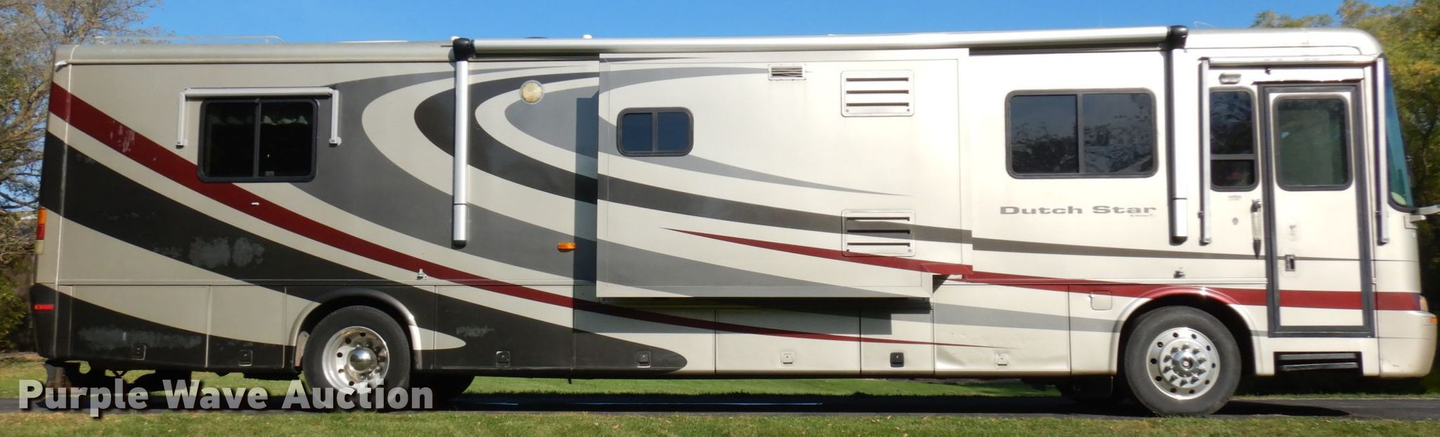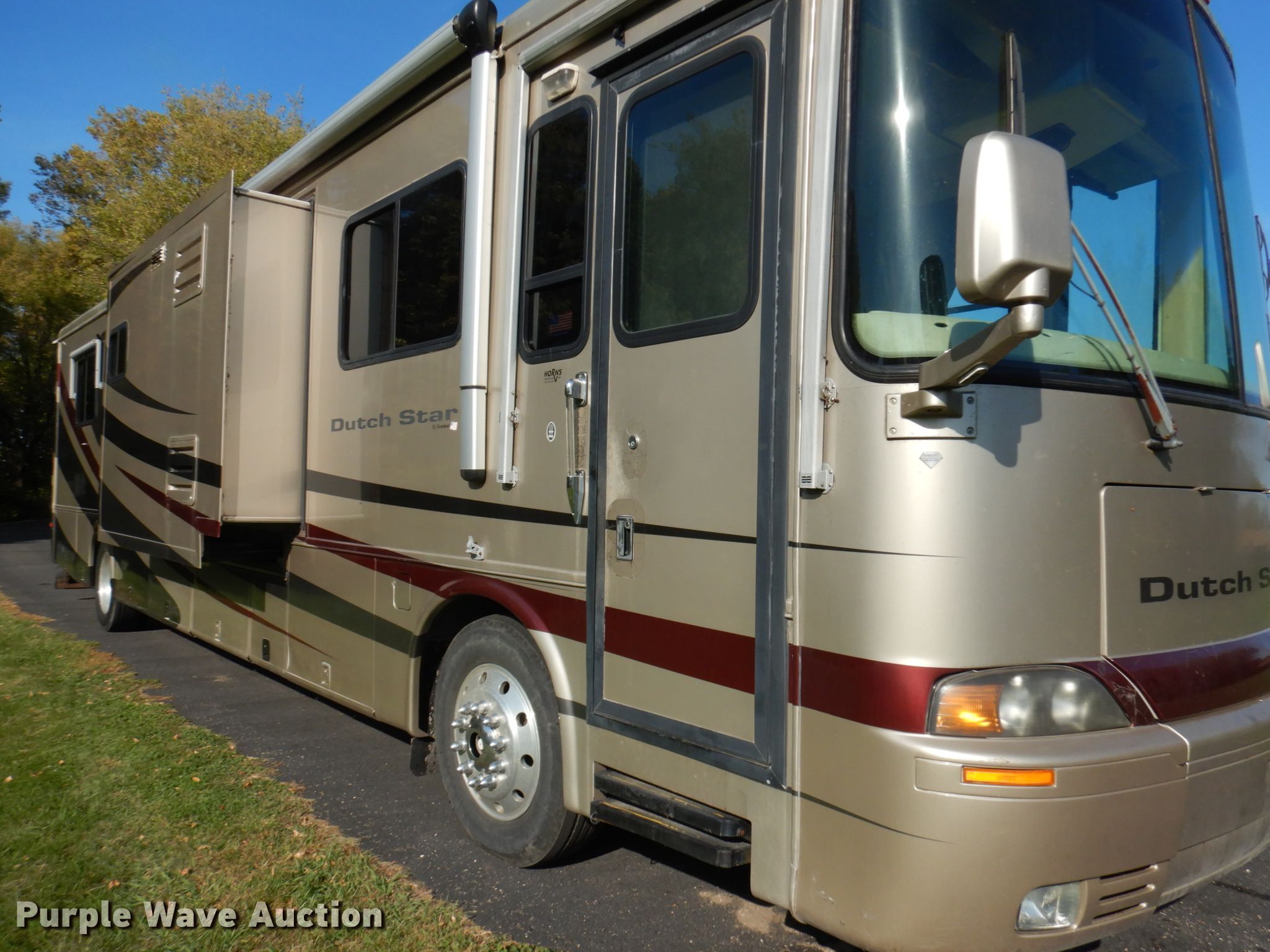 2002 Newmar Dutch Star RV. Miles: 155,228 on odometer, Camper length: 38', VIN: 4VZBN249620041294. Engine Cummins, Cylinders: 6, Fuel type: Diesel, HP: 325. Transmission Automatic. Chassis Axles: Single, Suspension: Air, Brakes: Air. Interior Kitchen: Sink, Refrigerator, Freezer, Microwave, Stove: Propane, Living room: Table, Pull Out Couch, Bathroom, Beds: 1 Bed type: Queen. Operational Slide outs: 3, Awnings: 3 Awning type: Electric, Generator. Tires Size: 275/70R22.5. Minnesota title. Seller is a Minnesota licensed motor vehicle dealer. The buyer may be required to pay sales tax and/or registration fees to the dealer prior to taking possession. Title will be assigned and distributed by the dealer. Please contact the seller for distribution questions. 14203 230th St. Hutchinson, MN 55350