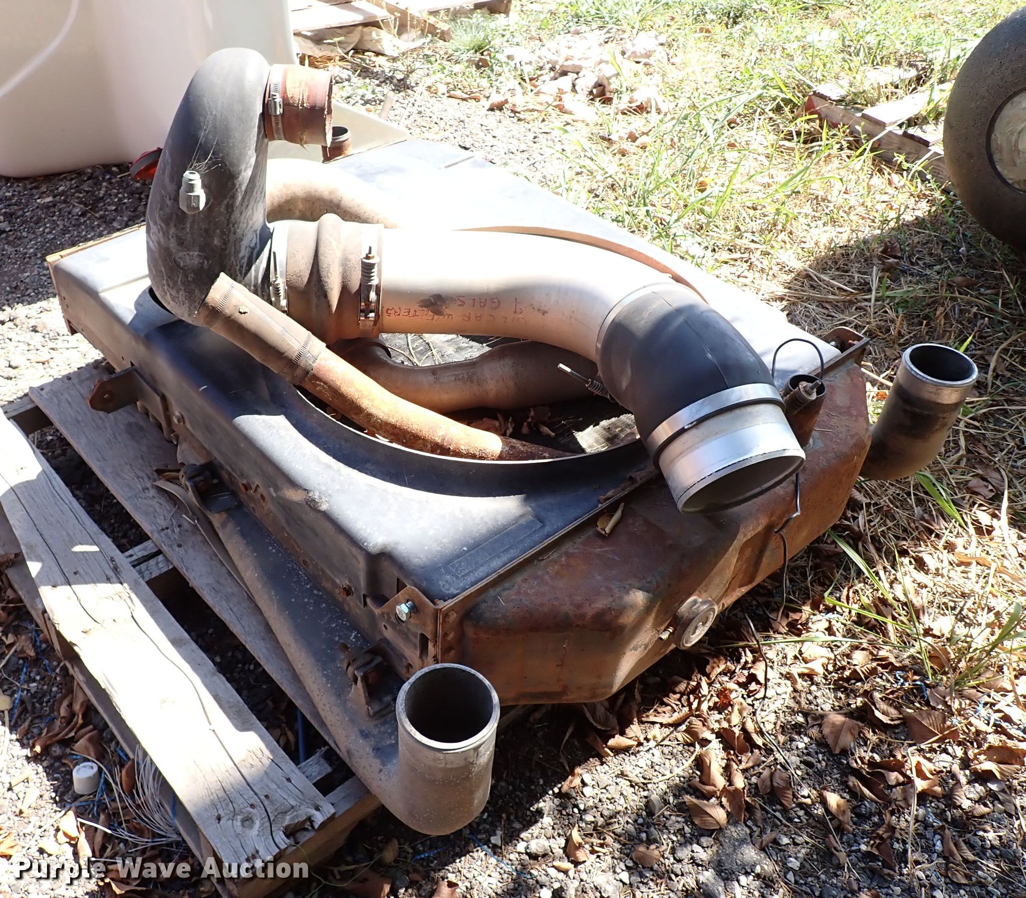 Purple Wave is selling a used Truck Part and Attach. in Oklahoma. This item is a Mack radiator with the following: CAC hose, Fits Mack R model trucks
