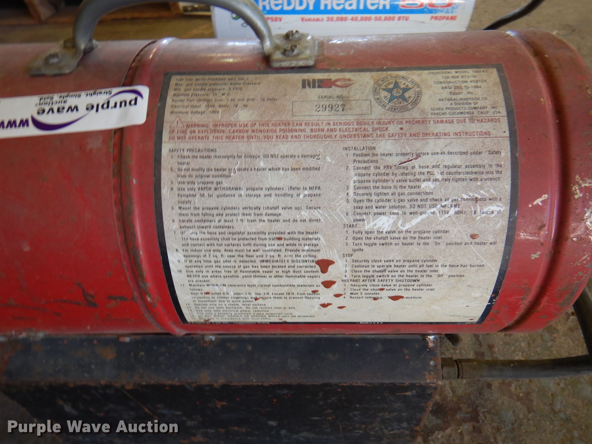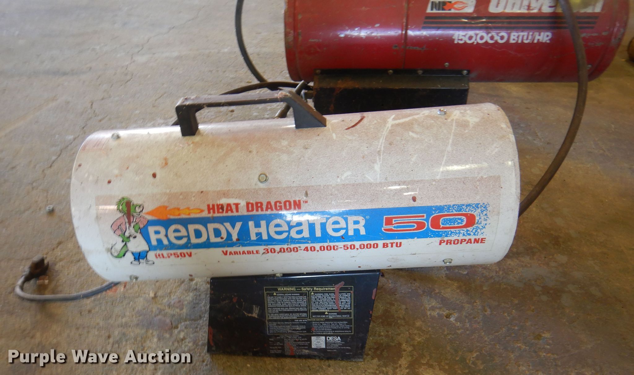 (2) portable heaters. Reddy Heater 50 propane heater 50,000 BTU, Universal propane heater 45,000 BTU. Higby Millwright & Crane Service. Helen St & Hwy 83. Turpin, OK 73950