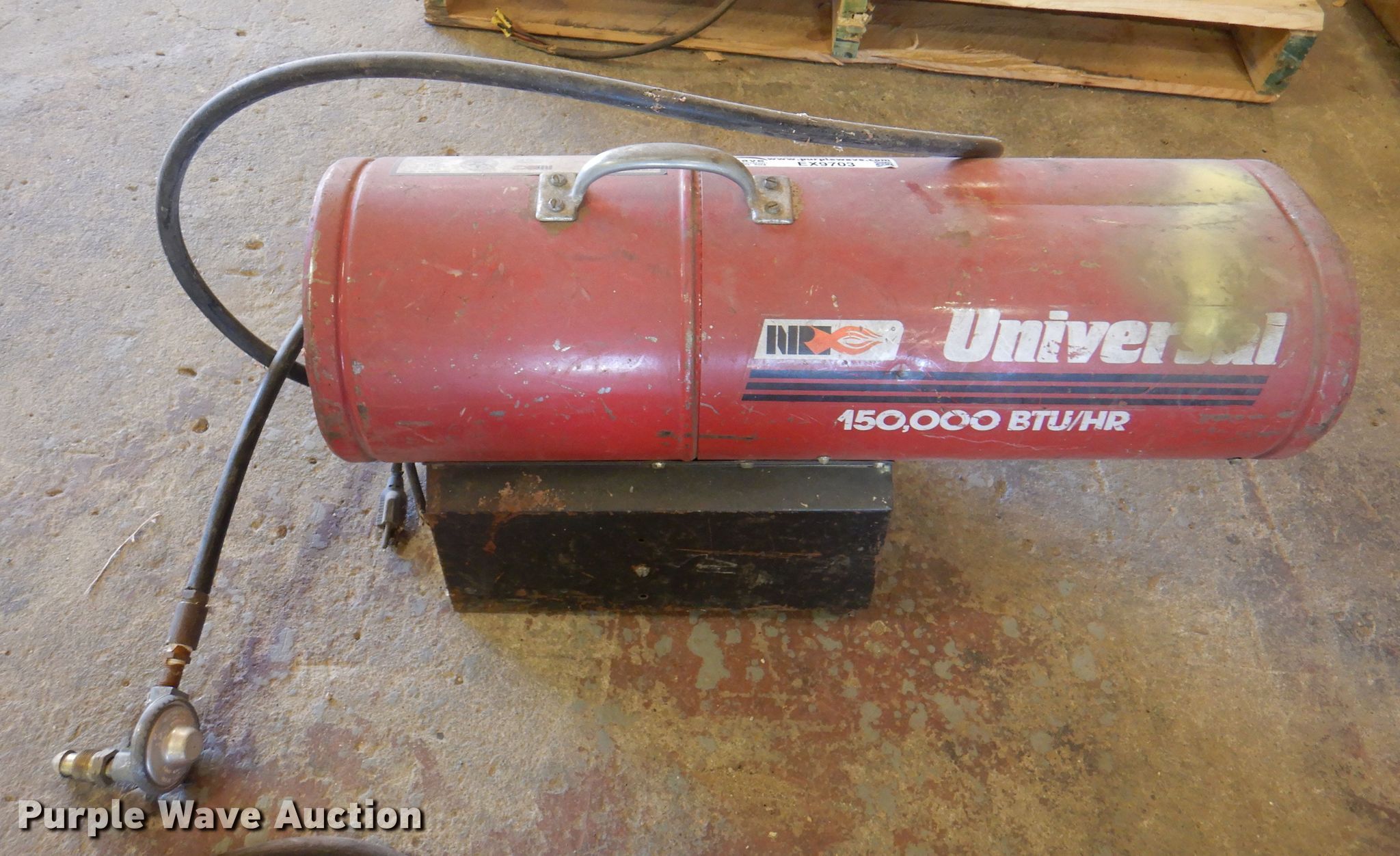 Purple Wave is selling a used Portable Heater or Fan in Oklahoma. This item is a (2) portable heaters with the following: Reddy Heater 50 propane heater, 50,000 BTU, Universal propane heater, 45,000 BTU