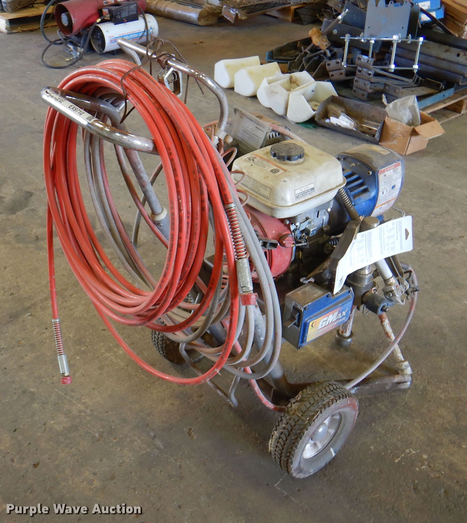 Purple Wave is selling a used Tools in Oklahoma. This item is a Graco GMax 3900 paint sprayer with the following: Honda GX120 single cylinder gas engine, Replacement filters included
