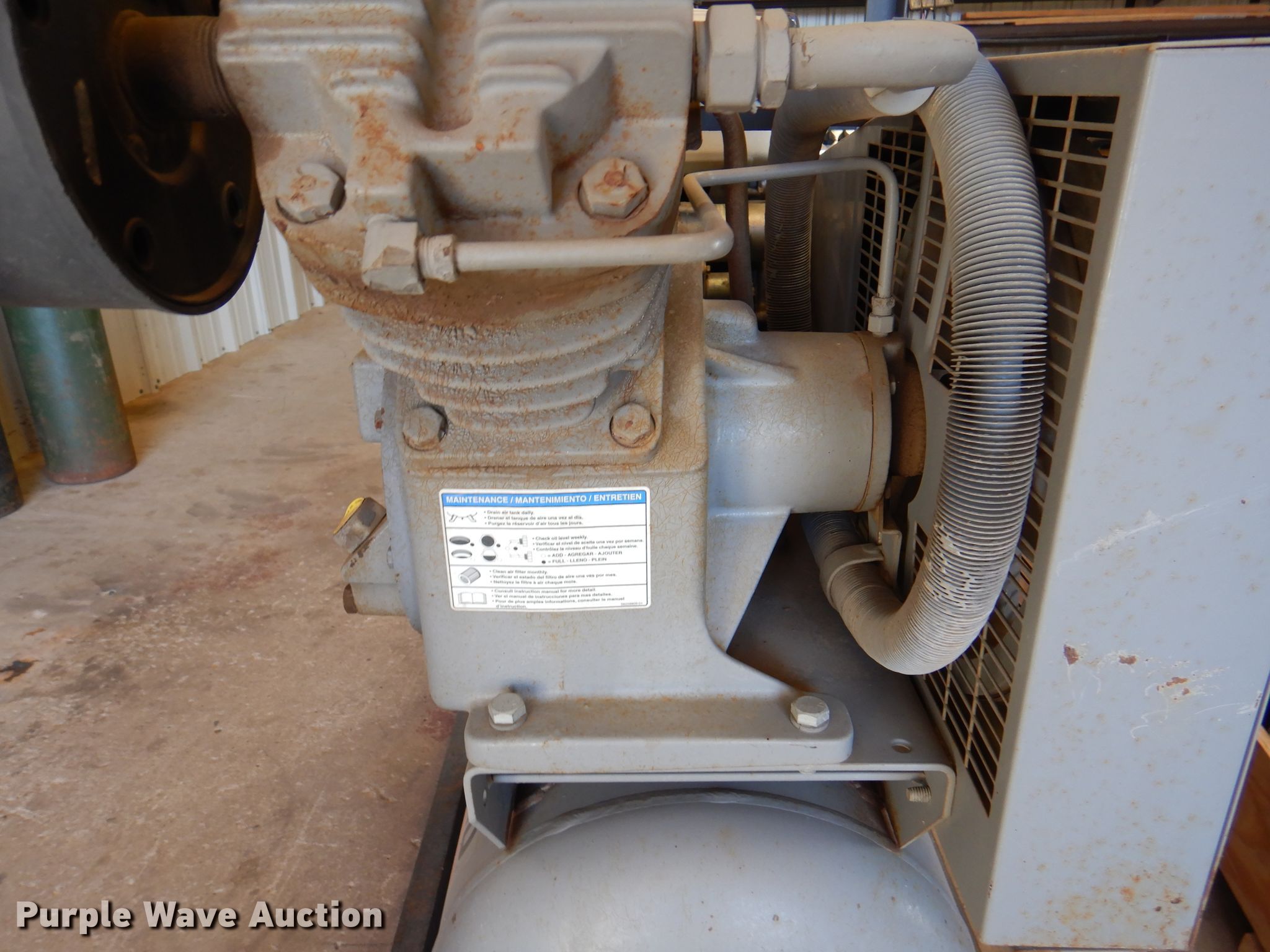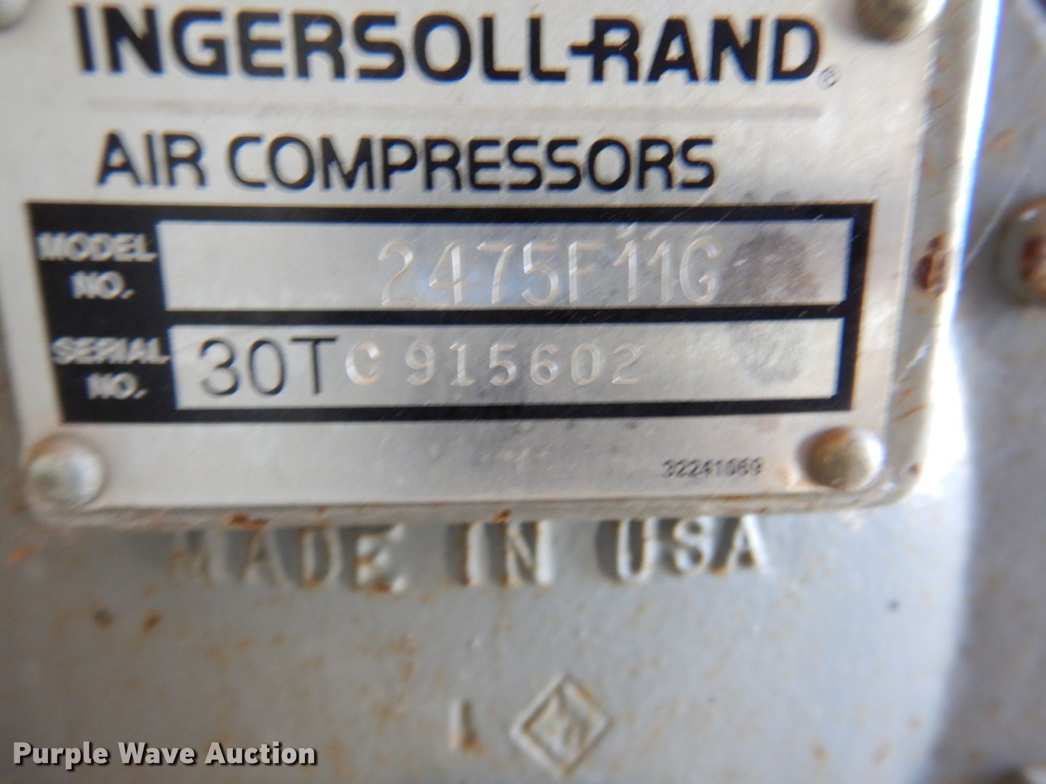 Purple Wave is selling a used Air Compressor in Oklahoma. This item is a Ingersoll Rand T30 air compressor with the following: Serial: 3OTC915602