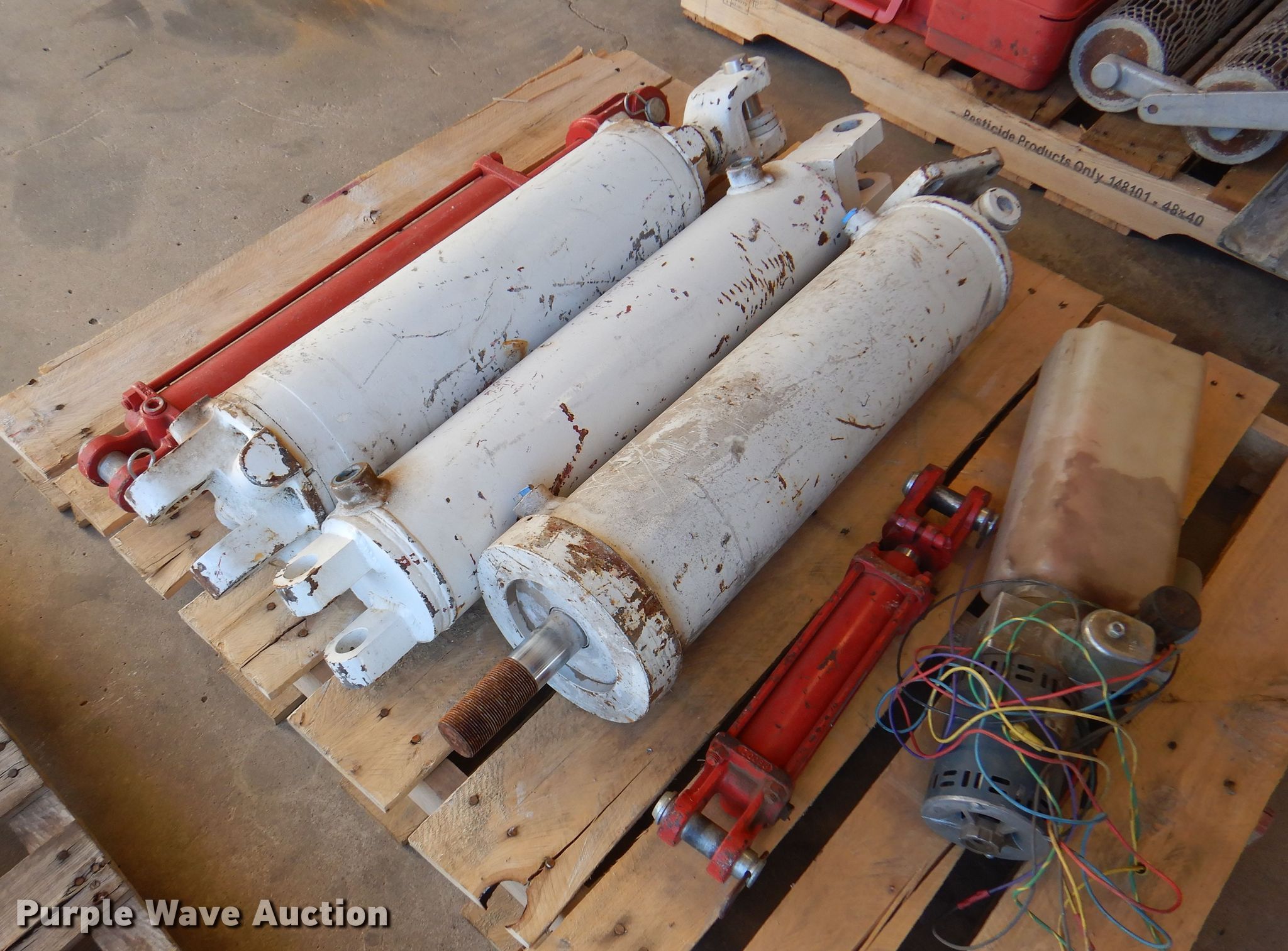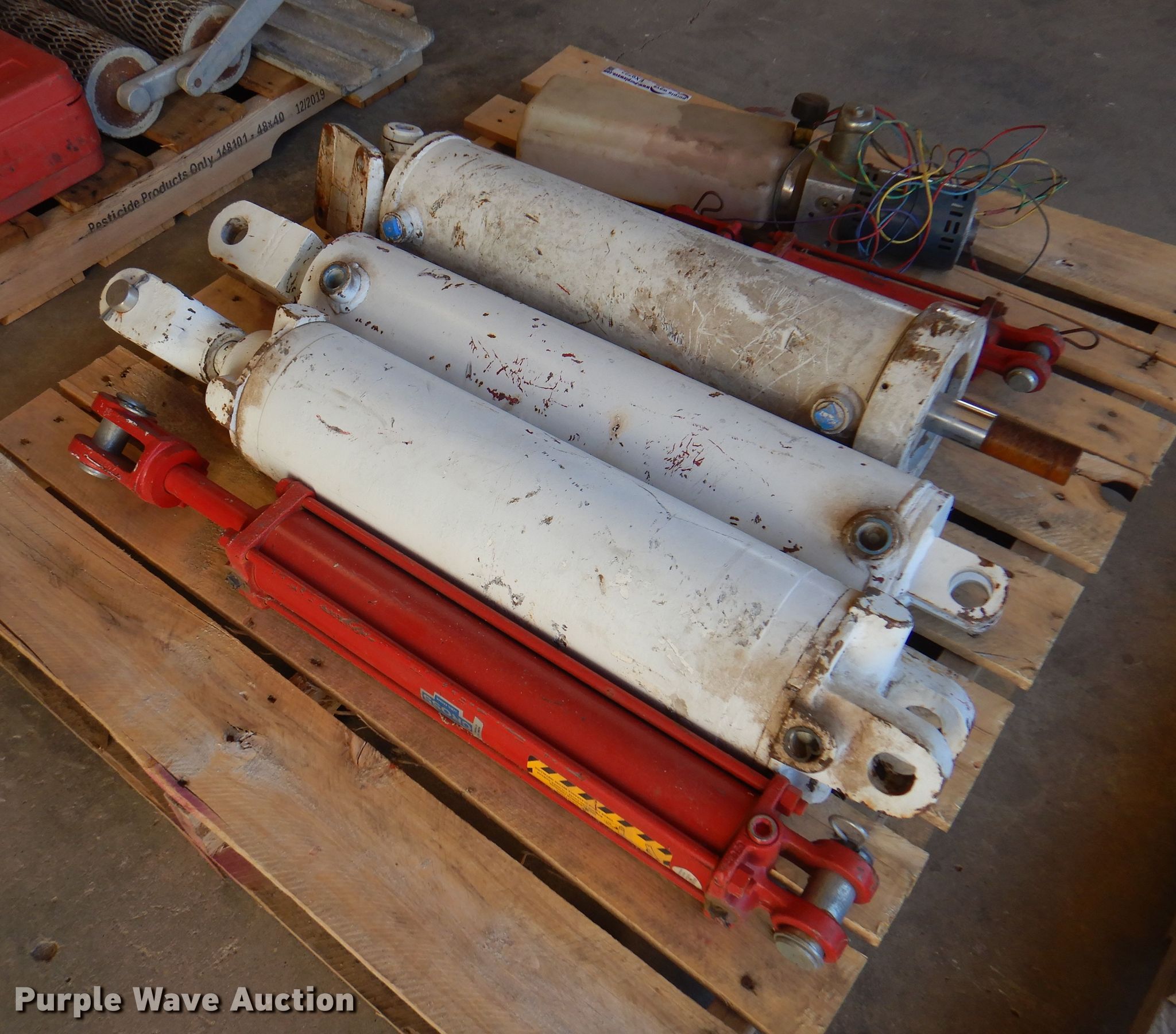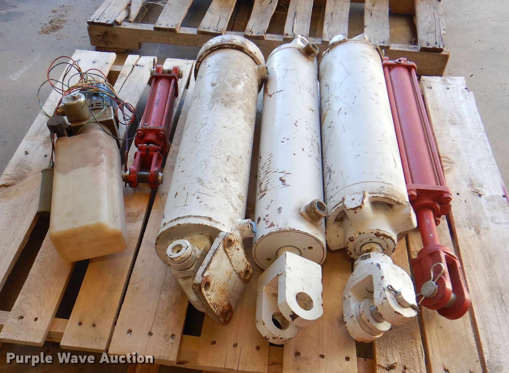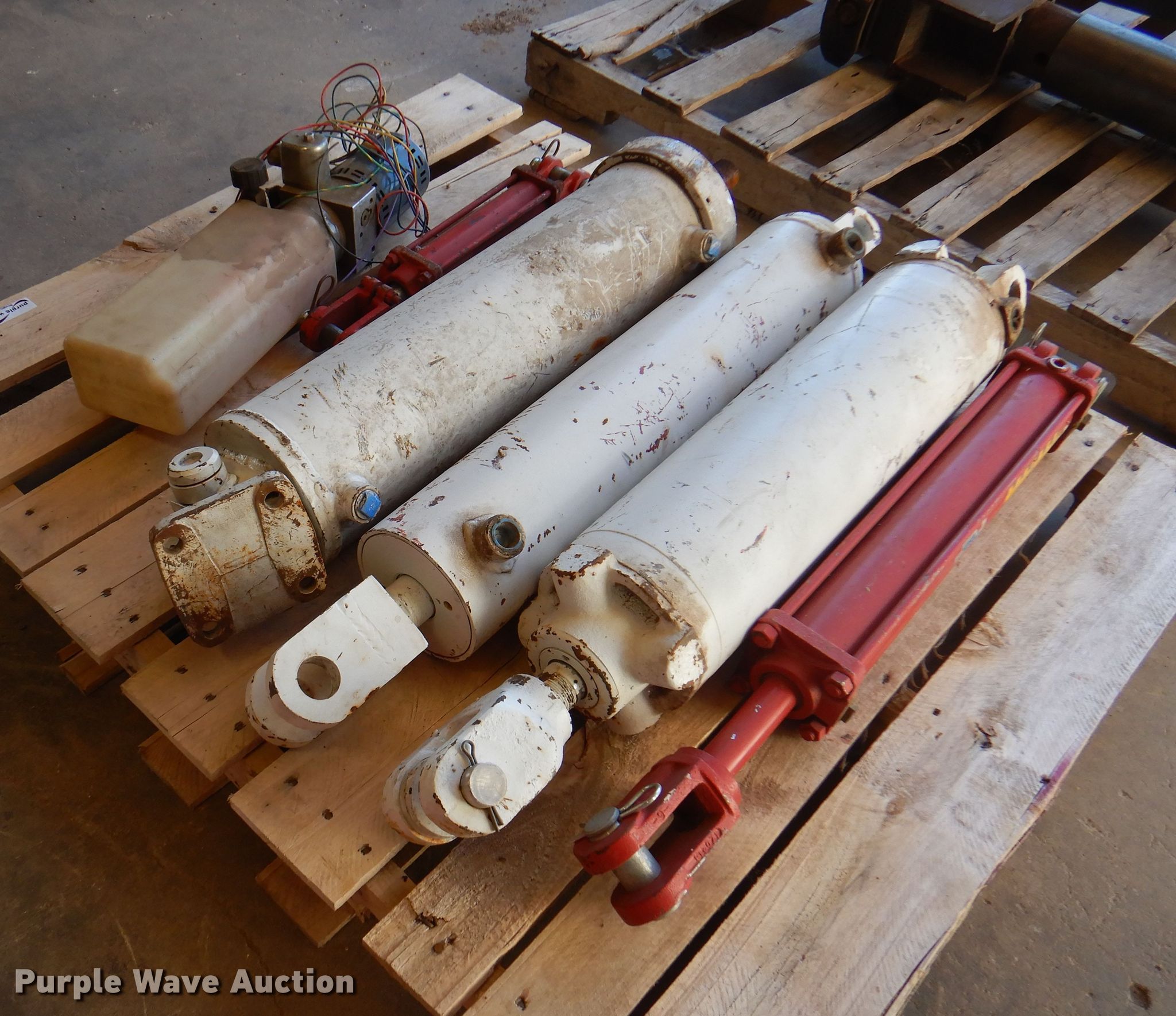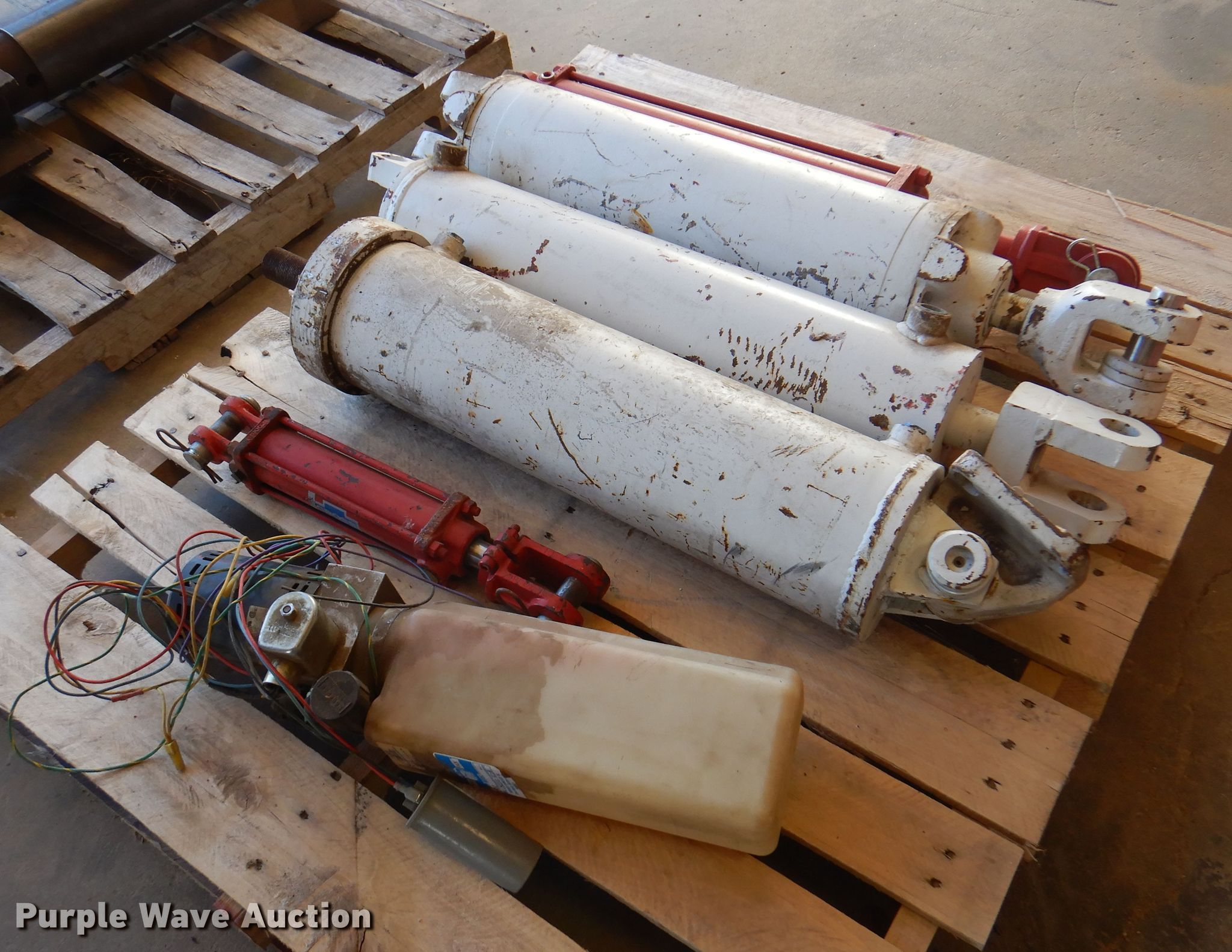 Purple Wave is selling a used Tools in Oklahoma. This item is a Tools with the following: (3) pneumatic cylinders, (2) hydraulic cylinders