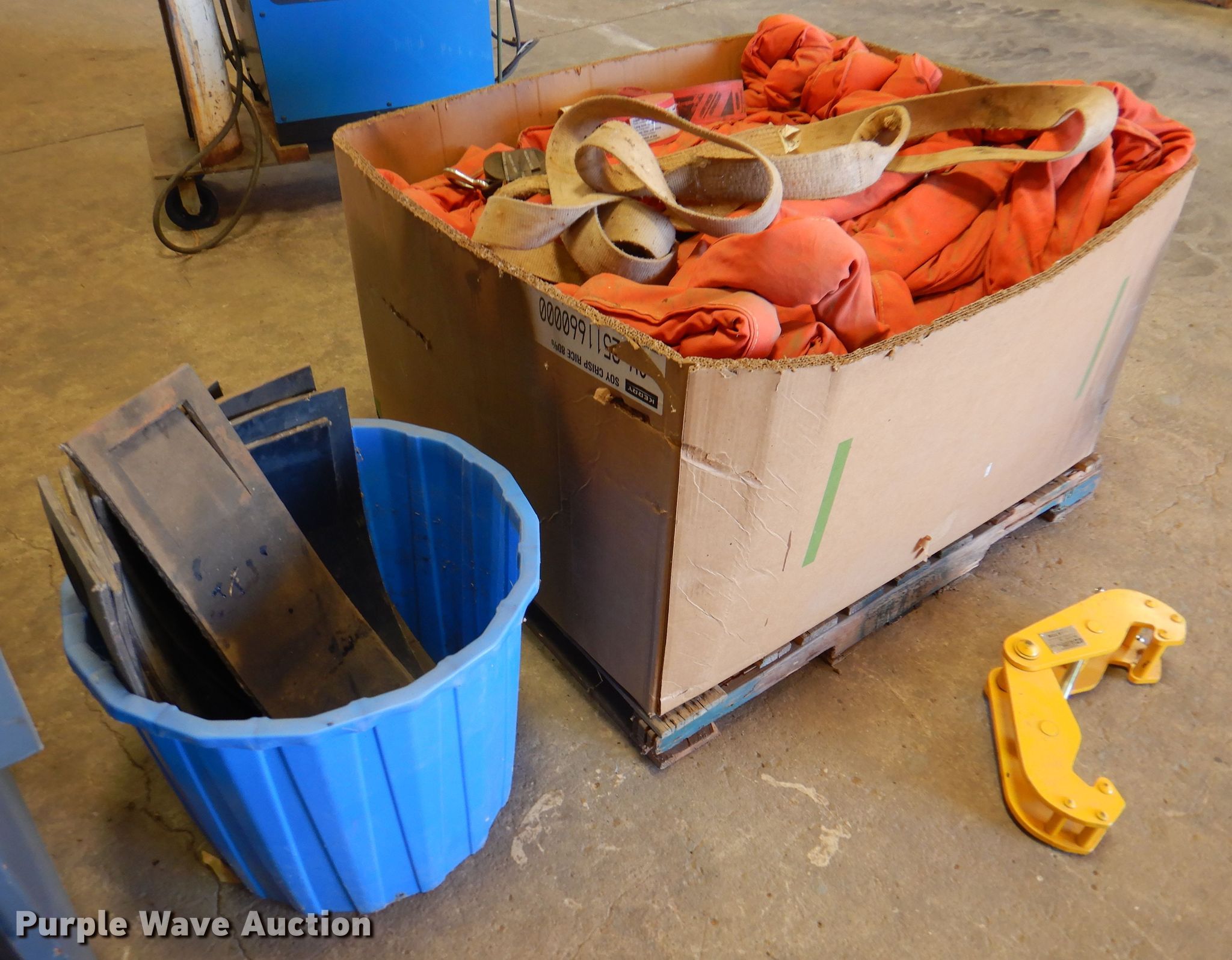 Purple Wave is selling a used Lifting and Rigging in Oklahoma. This item is a Lifting equipment with the following: OZ lifting OZ10BC I-beam grapple, Capacity: 10 tons, (4) 20' slings, Capacity: 40,000 lbs, (6) 15' slings, Capacity: 25,000 lbs, (5) 15' slings, Capacity: 25,000 lbs, (7) 10' slings, Capacity: 13,200 lbs