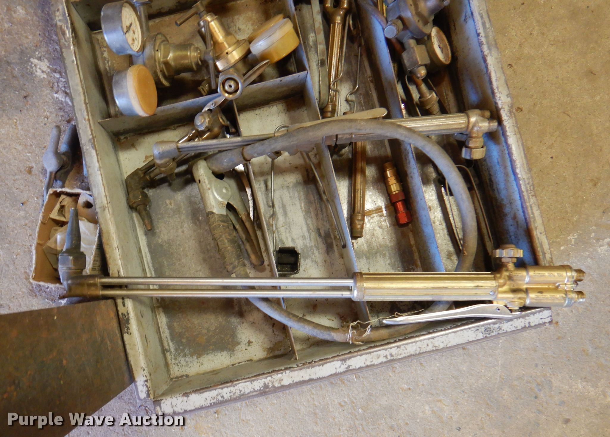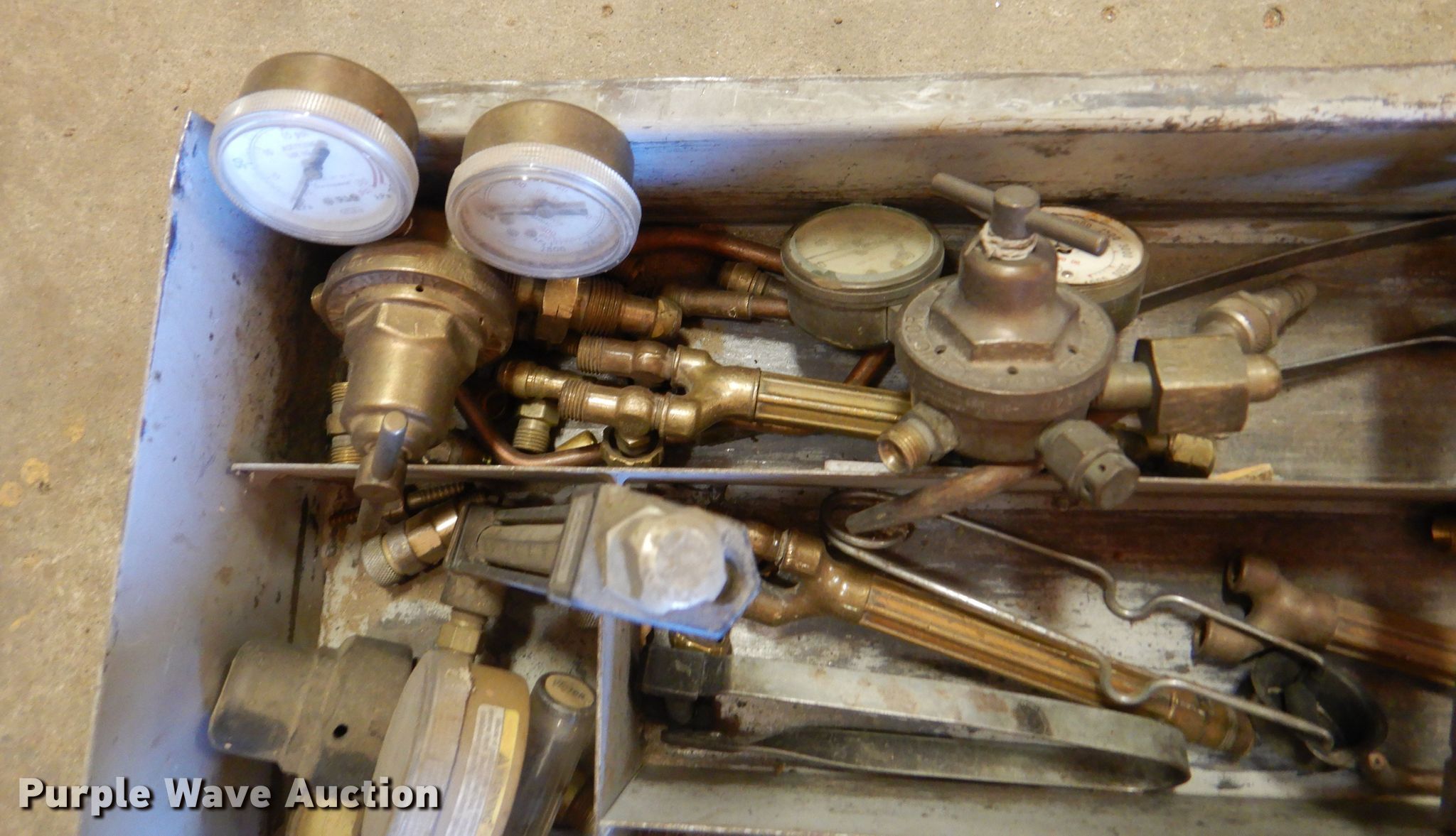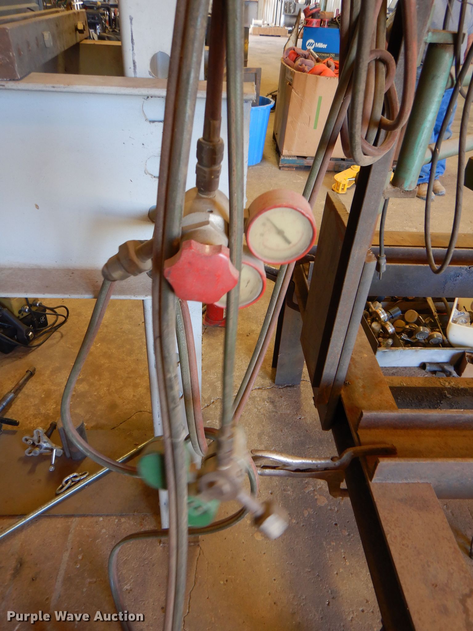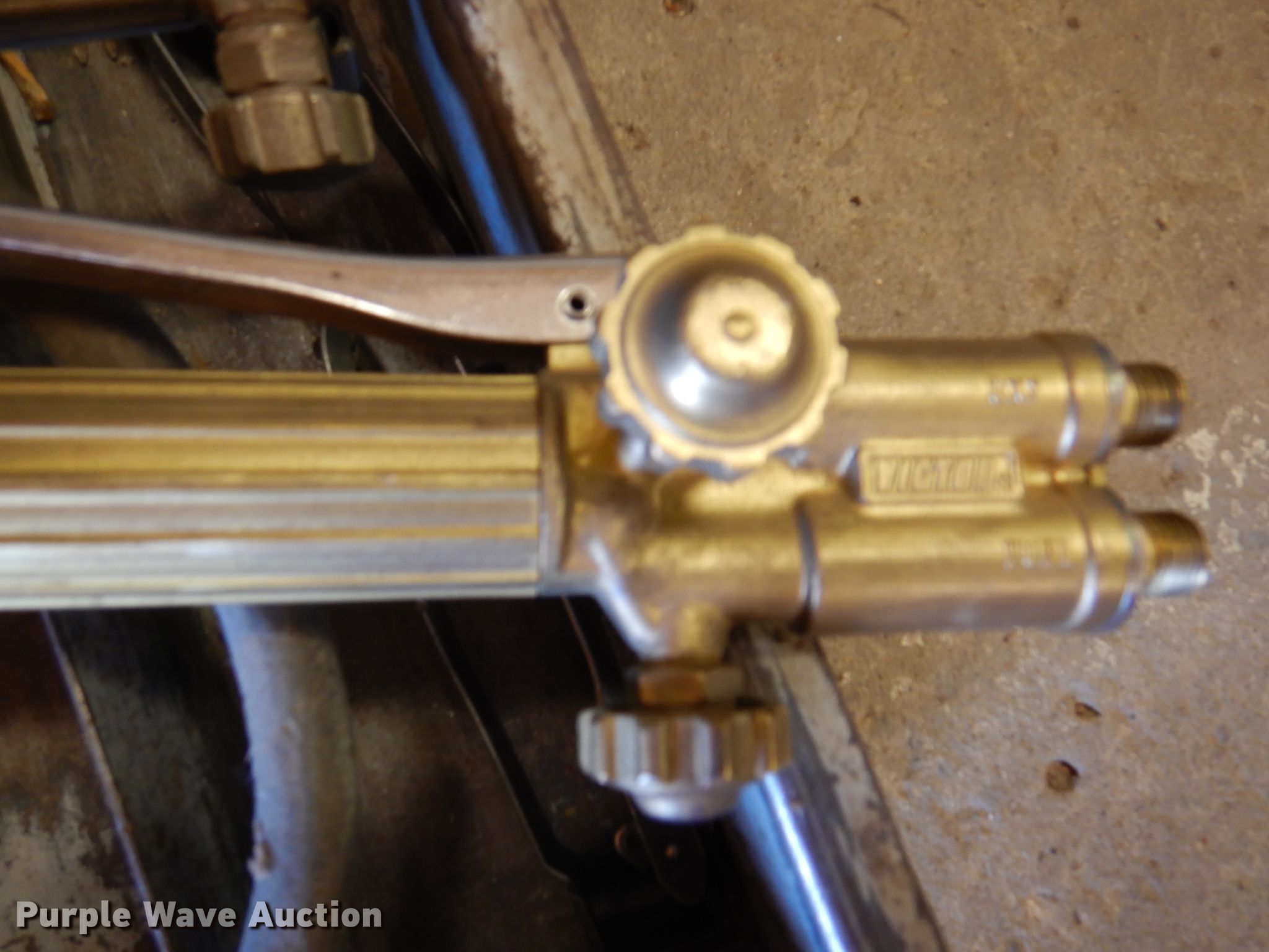 Purple Wave is selling a used Torch in Oklahoma. This item is a Victor DC2400 pattern cutter with the following: Regulators, Hoses, Torches, Additional tips