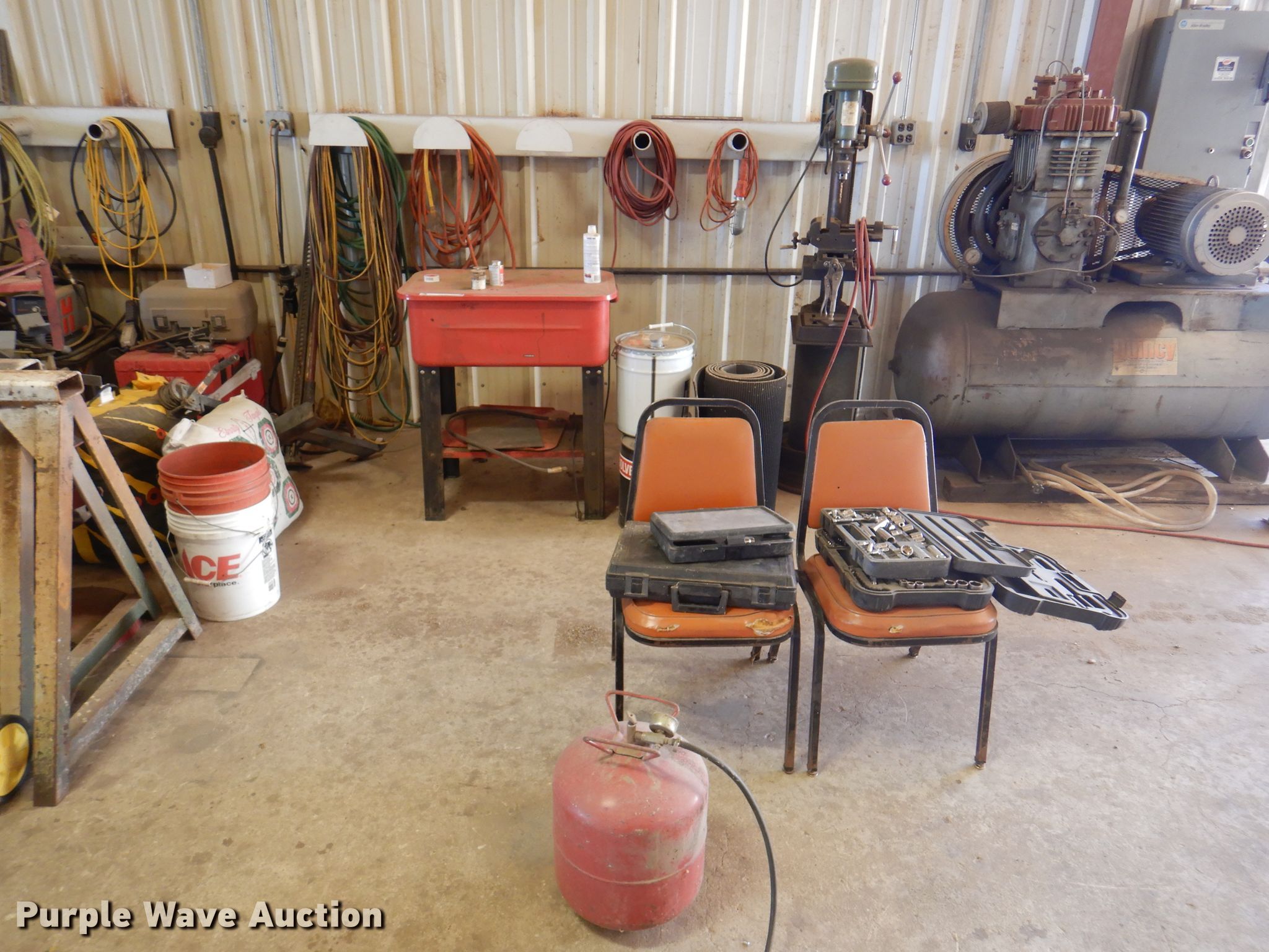 Purple Wave is selling a used Tools in Oklahoma. This item is a Tools with the following: Socket sets, Extension cords, John Deere propane grill, Parts washer, Jet 13R drill press and more