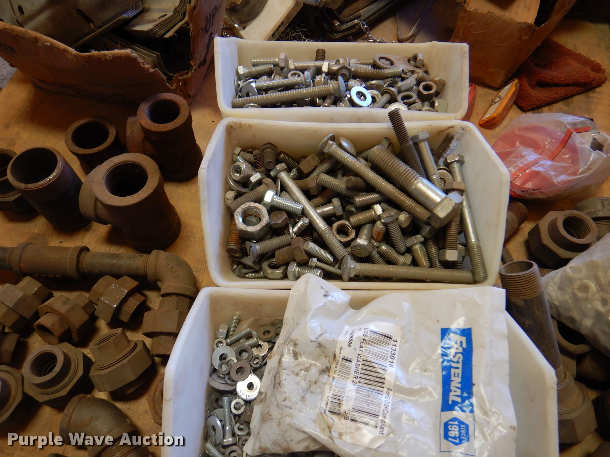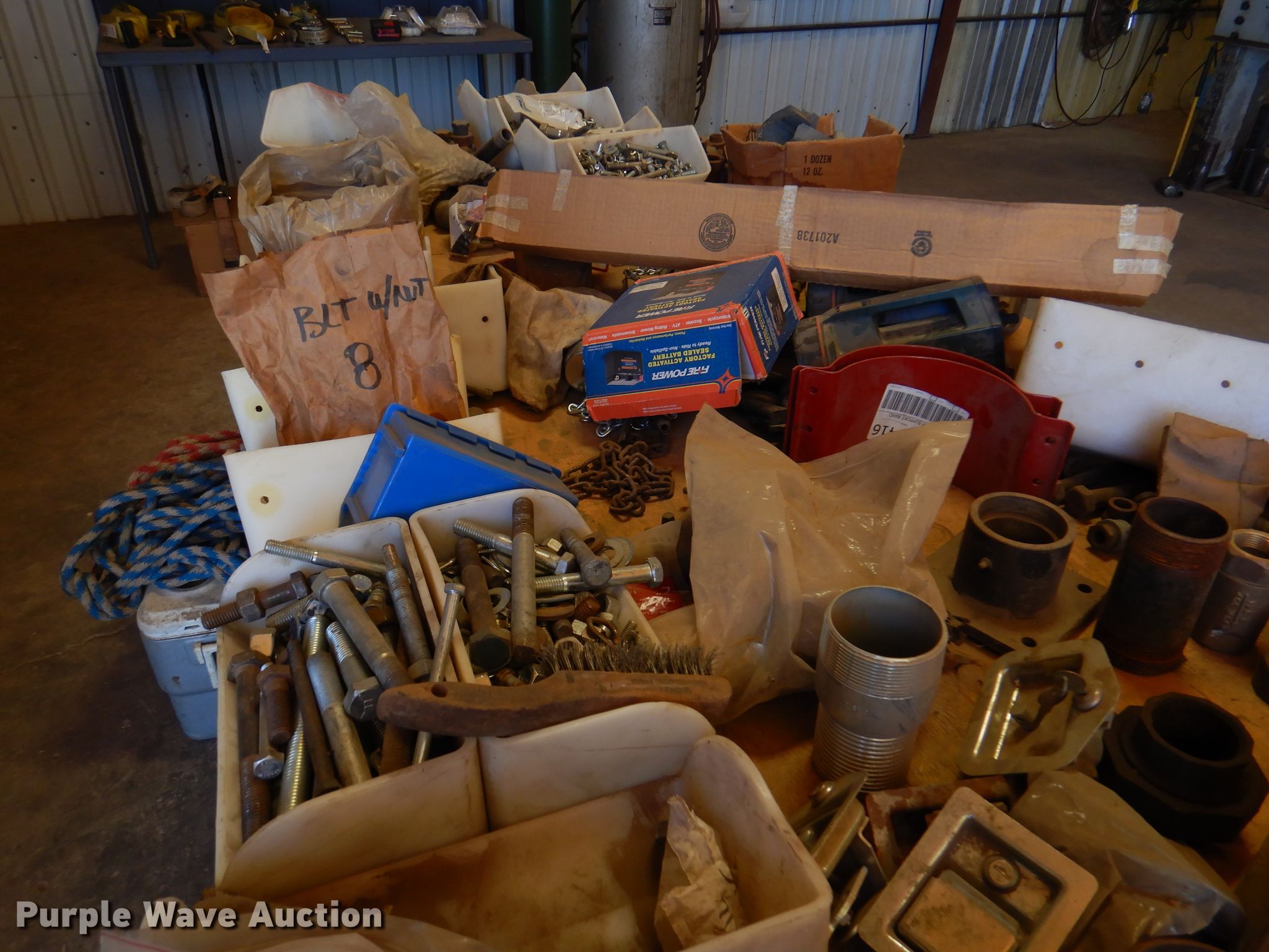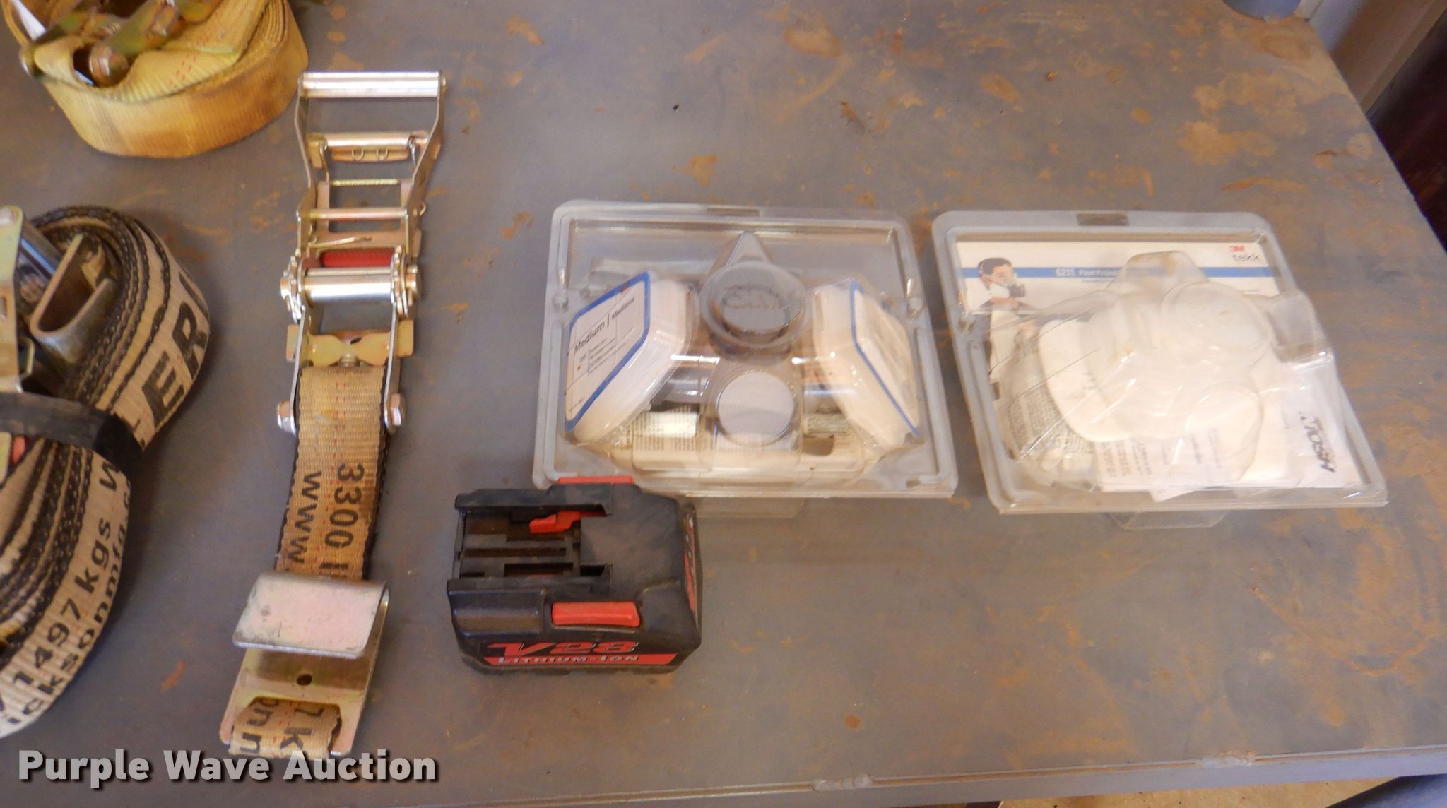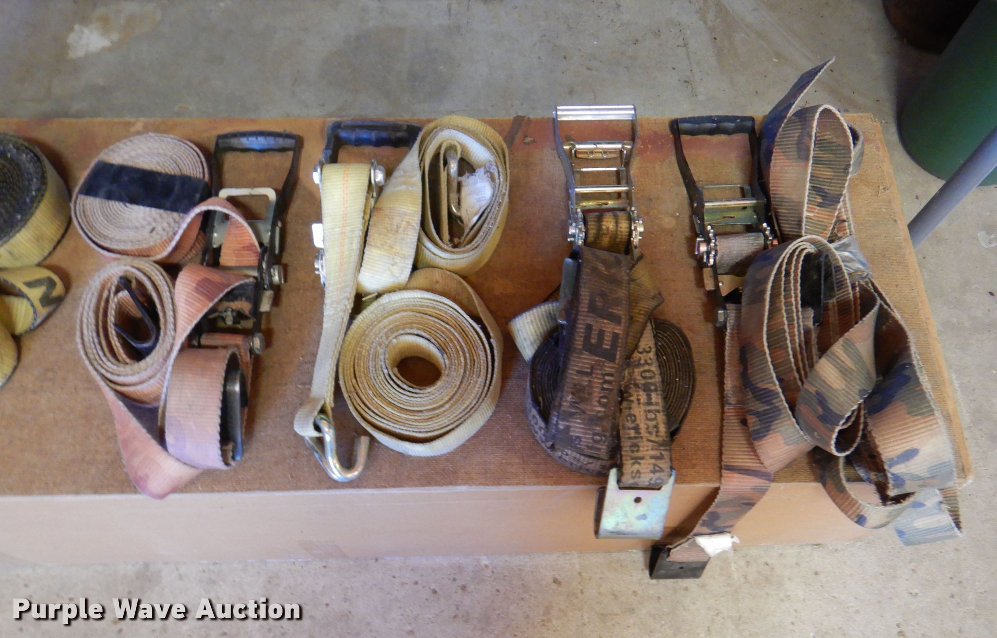 Purple Wave is selling a used Tools in Oklahoma. This item is a Tools with the following: Hardware, Pipe fittings, Approx. 8 ratchet straps
