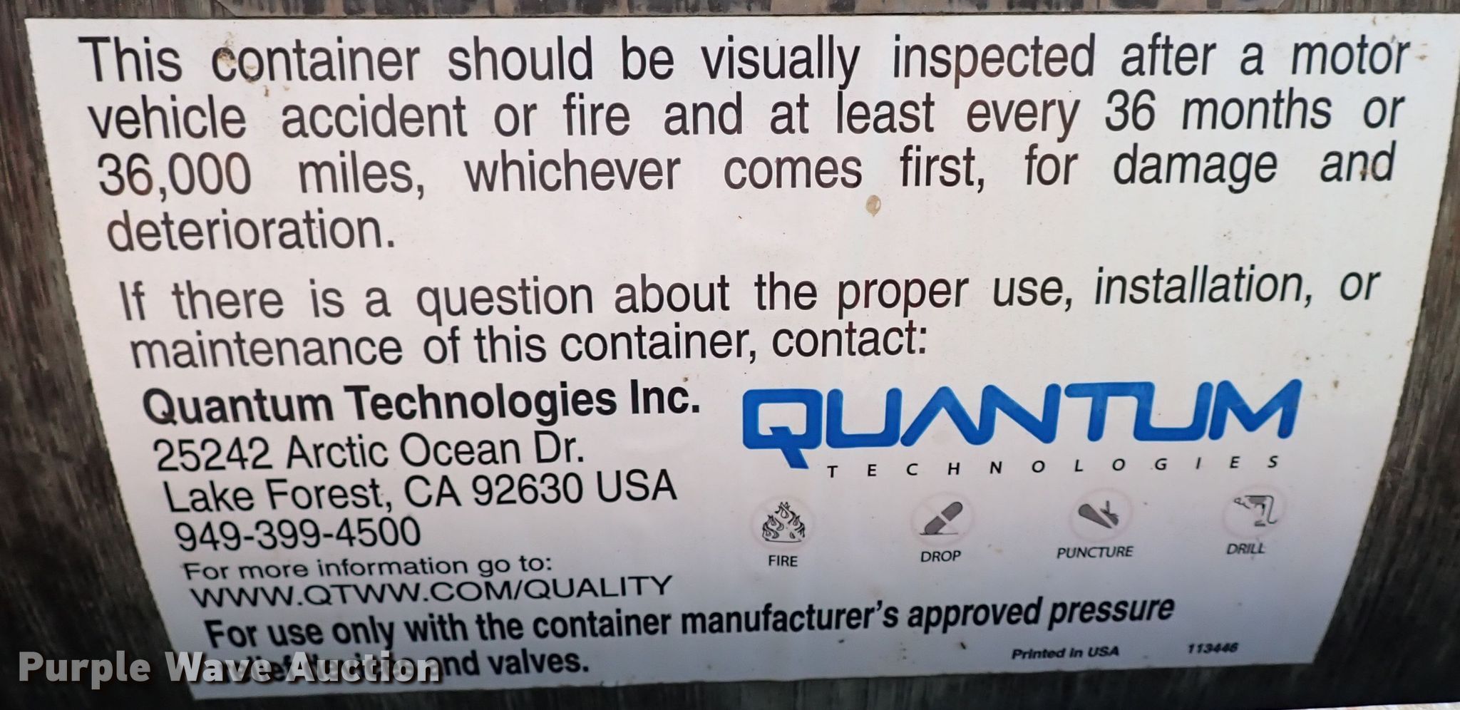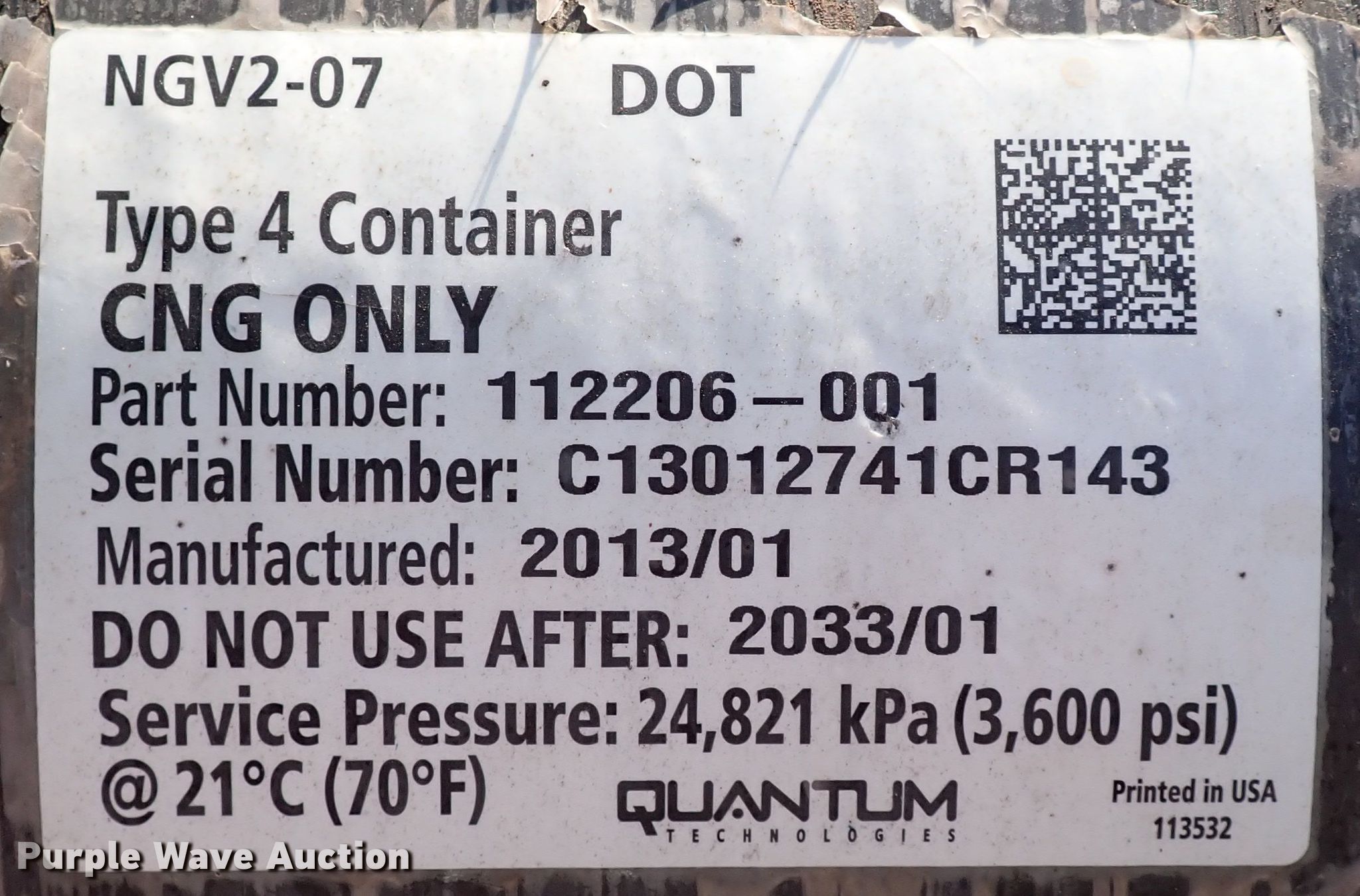 Purple Wave is selling a used Fuel and Lube in Oklahoma. This item is a (3) CNG tanks with the following: Type 4 container, PSI: 36,000, Certified until 2033
