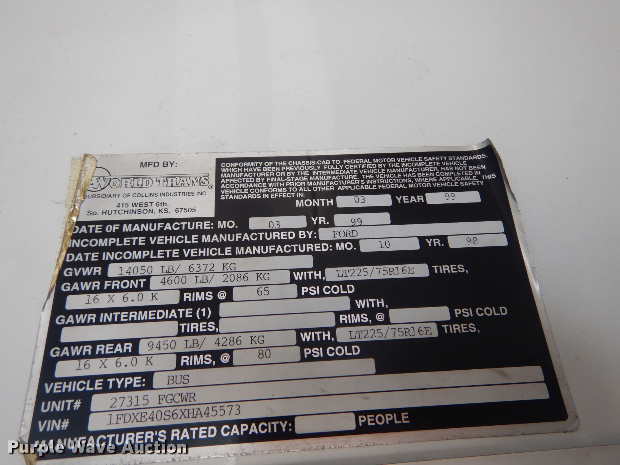 Purple Wave is selling a used Bus in Missouri. This item is a 1999 Ford E450 Econoline shuttle bus with the following: 173,815 miles on odometer