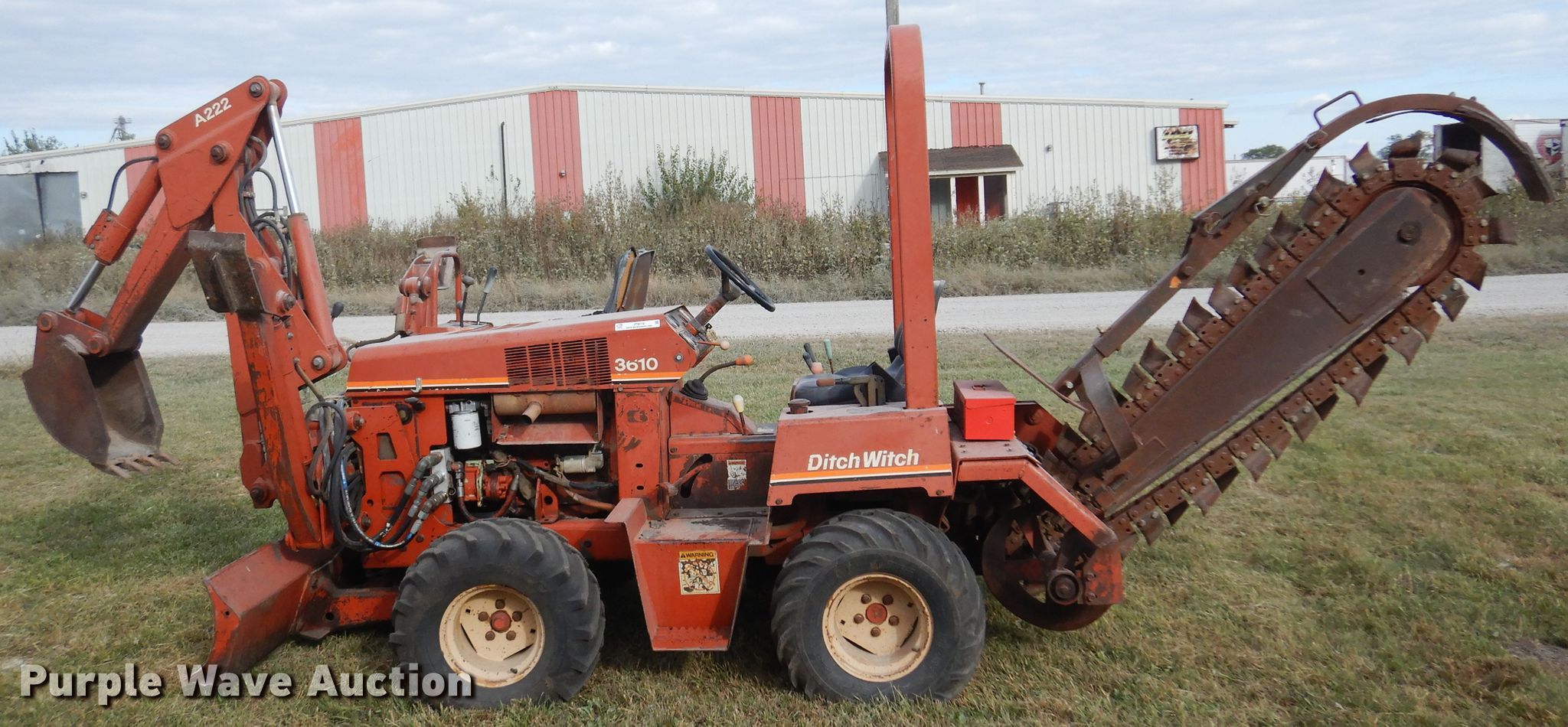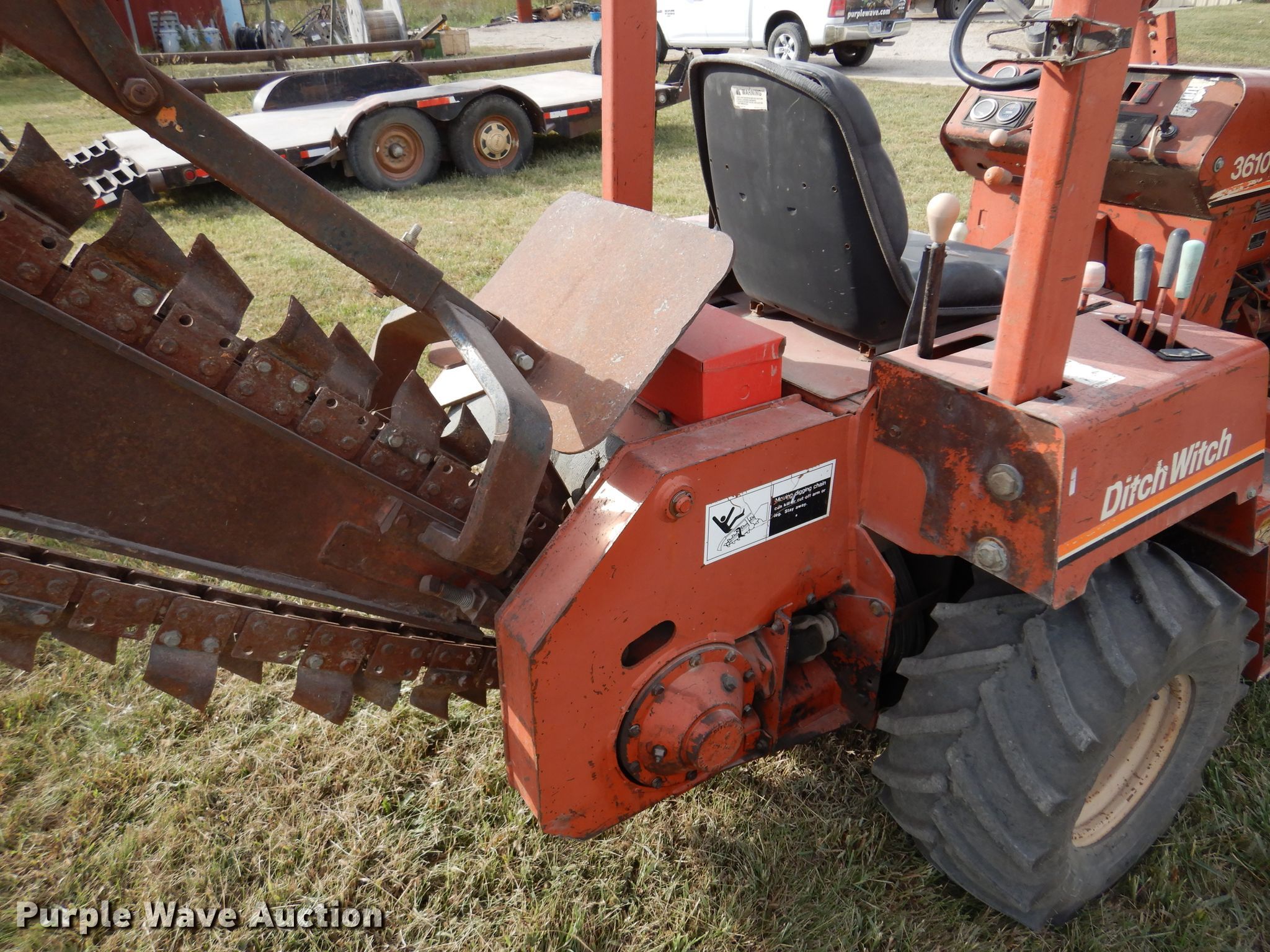 Purple Wave is selling a used Trencher or Rock Saw in Kansas. This item is a Ditch Witch 3610 trencher with the following: Hours: 3,765 on meter