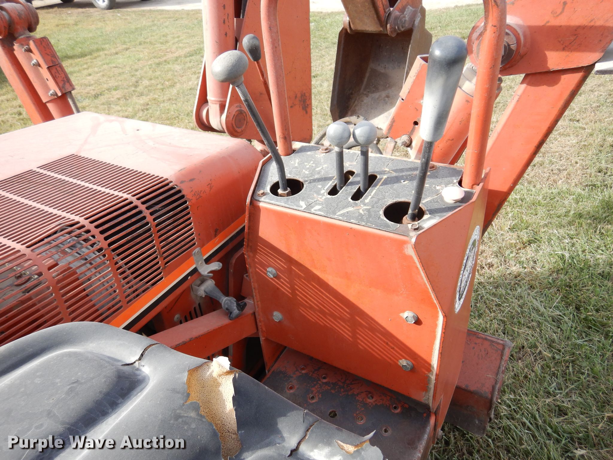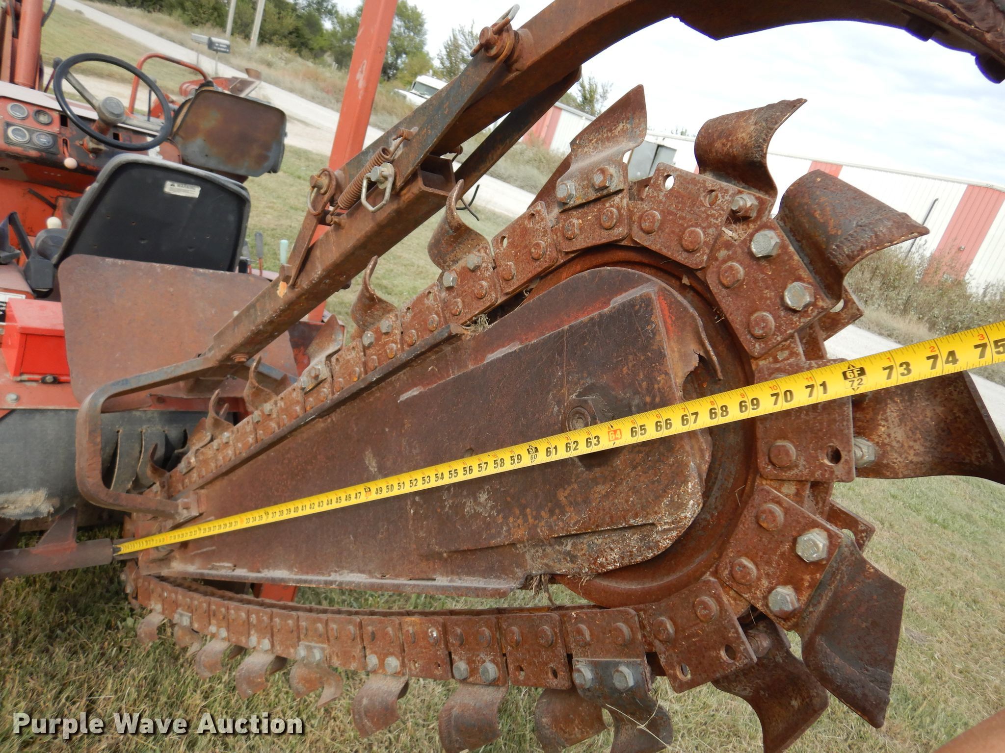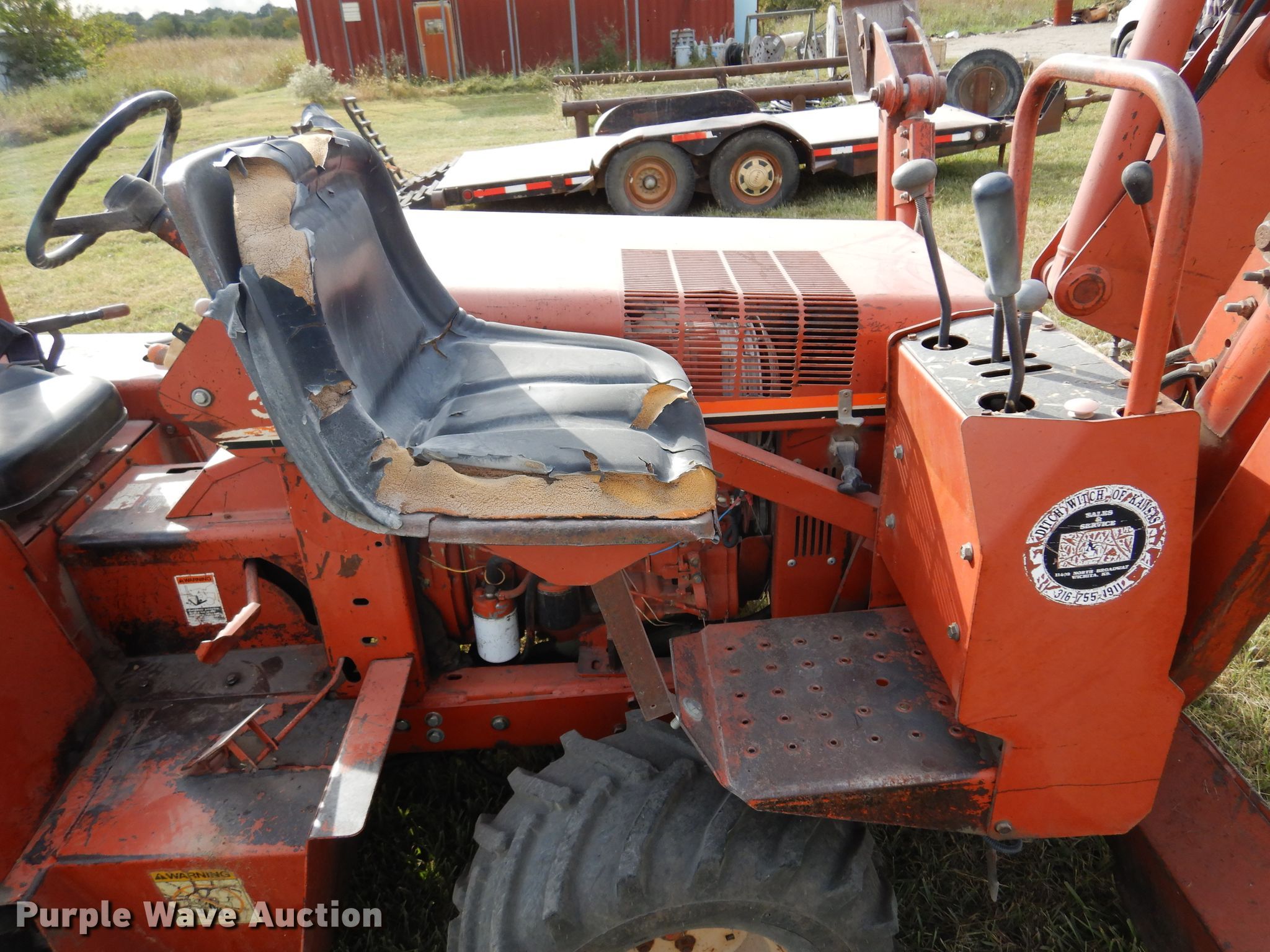 Ditch Witch 3610 trencher. Hours: 3,765 on meter. Engine Deutz, Cylinders: 3, Fuel type: Diesel. Transmission Manual, 3F - 1R, Four wheel drive. Operational Trencher Estimated dig depth: 72", Cutting width: 4", Teeth: Rock, Dirt, Crumber, Backhoe Bucket width: 12", Backfill blade Width: 64". Tires Size: 26x12.00-12. R and D Electric Co Retirement Sale. 419 N Industrial Road. El Dorado, KS 67042