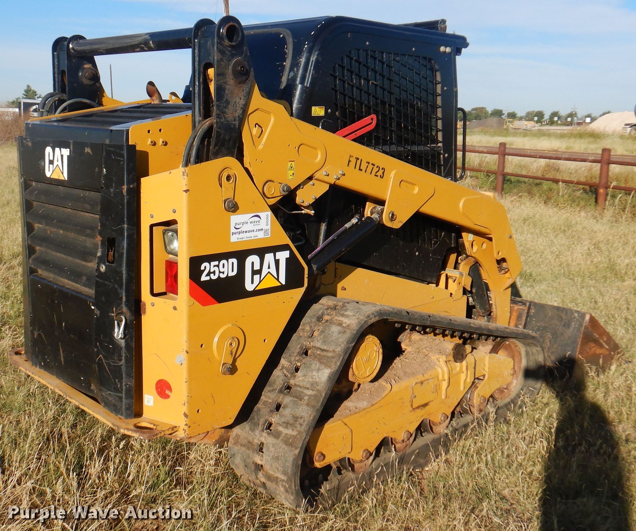 Purple Wave is selling a used Tracked Skid Steer Loader in Texas. This item is a 2016 Caterpillar 259D tracked skid steer loader with the following: Hours: 3,756 on meter, Serial: CAT0259DKFTL07723